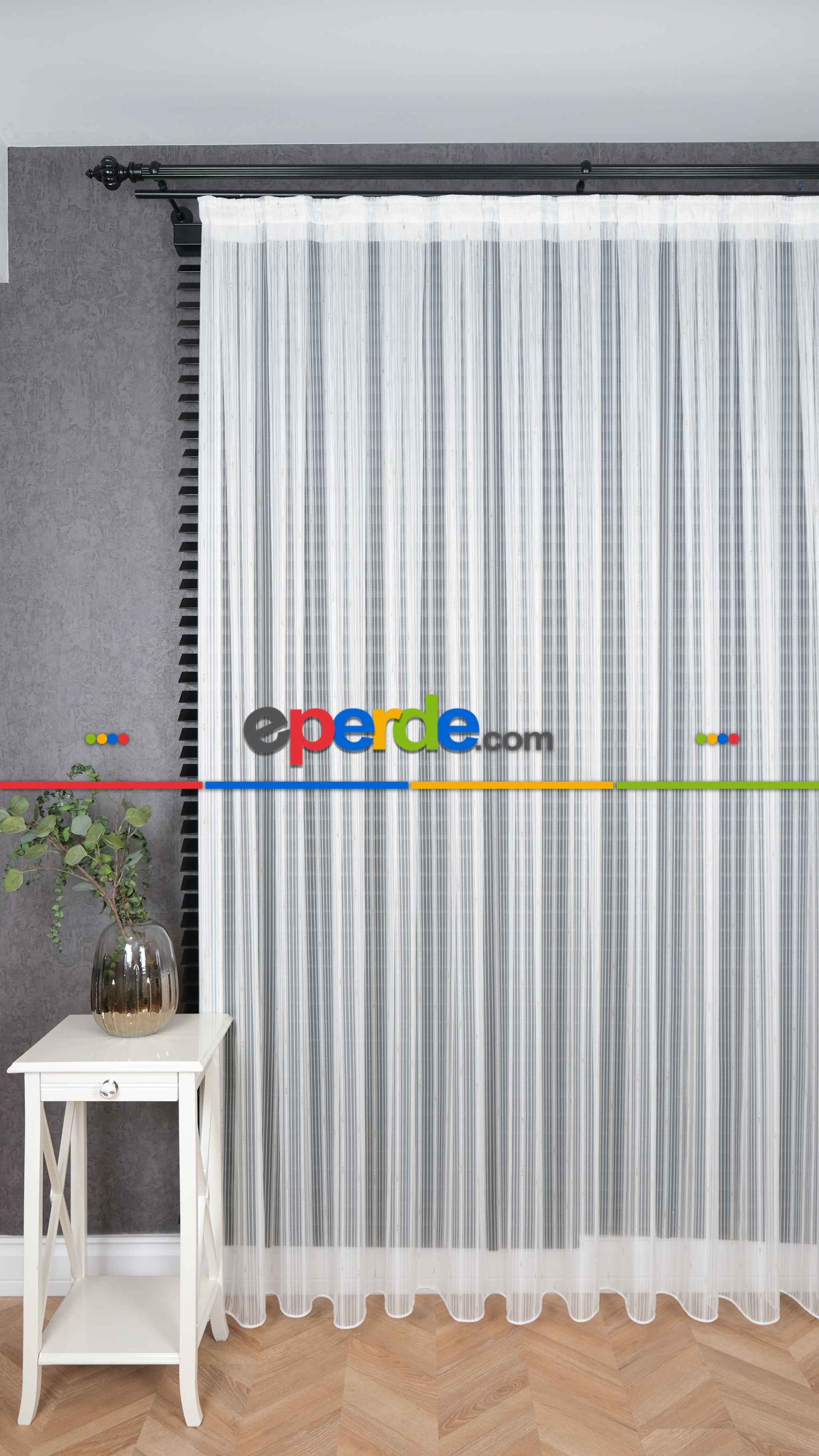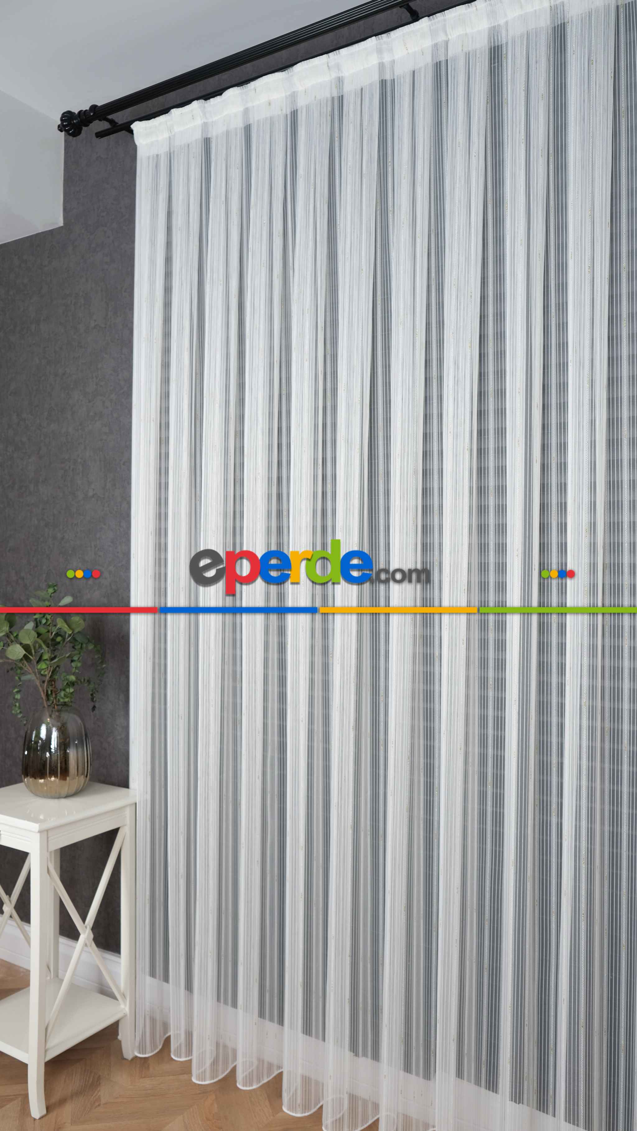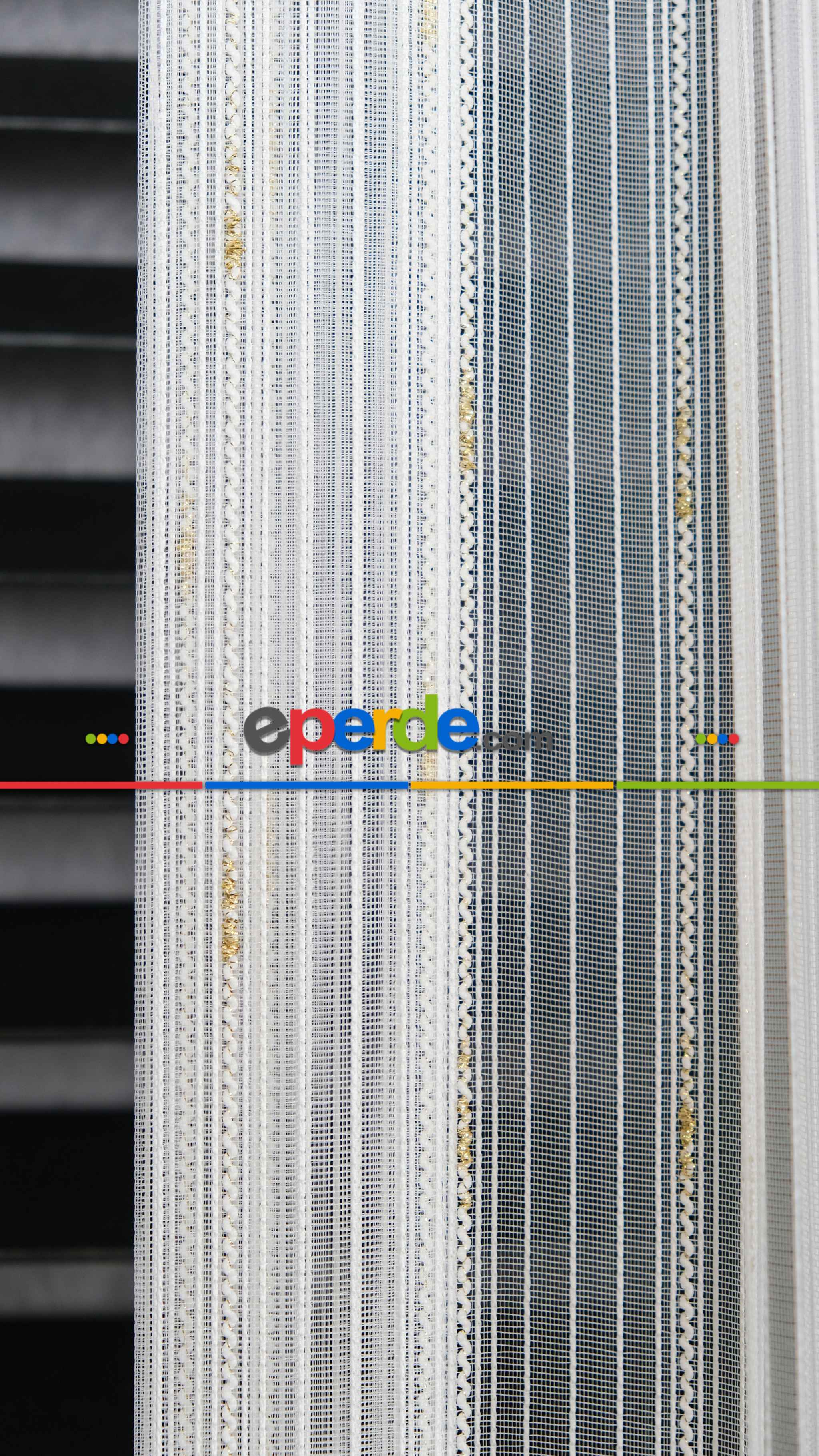 Ekru Zincir Çizgilli Altın Simli Tül Perde » Eperde