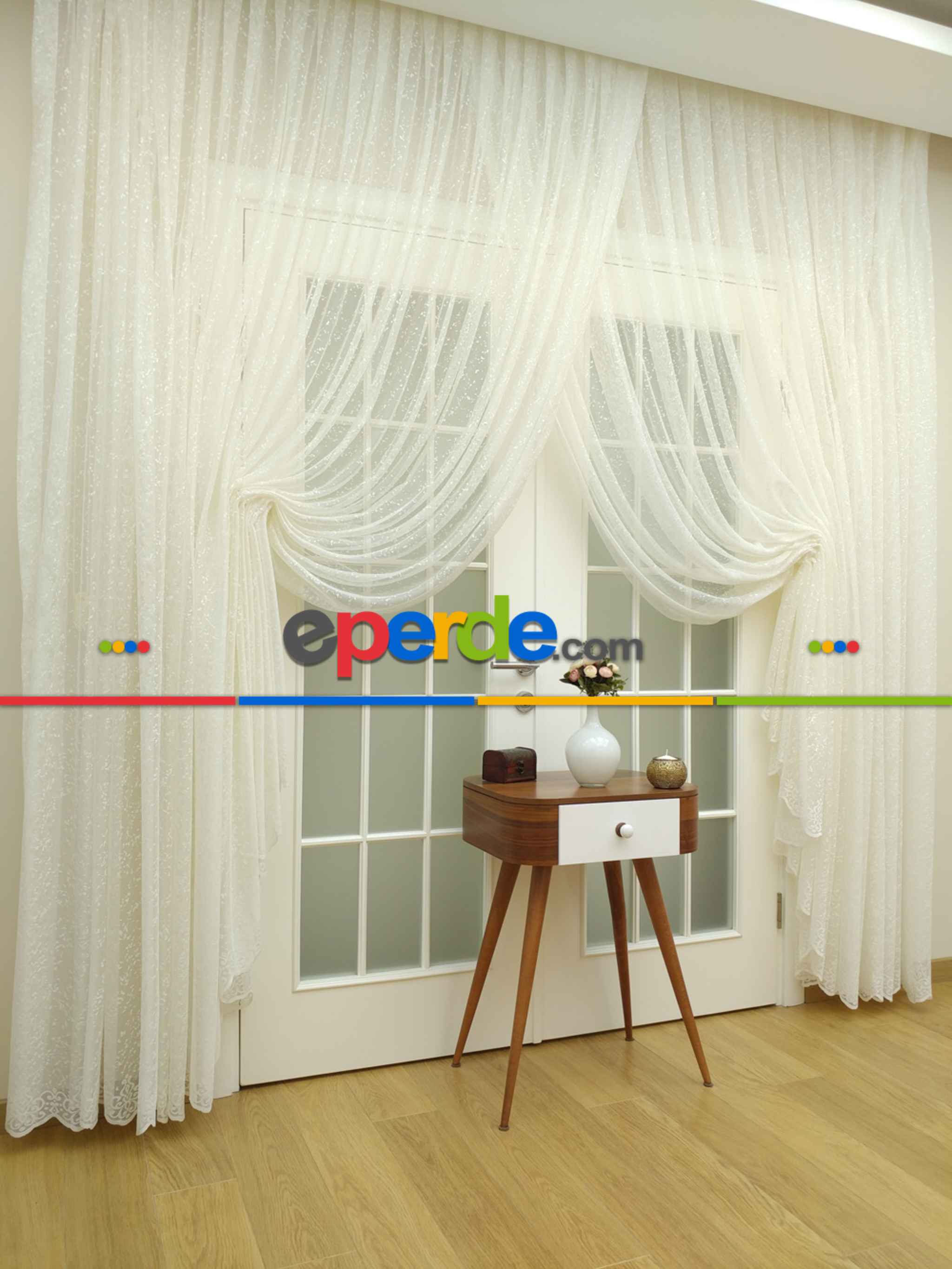 Etek Ucu Desenli Özel Örme Dokulu Kruvaze Ve Düz Model Tül Perde Ekru Ödeme Seçenekleri