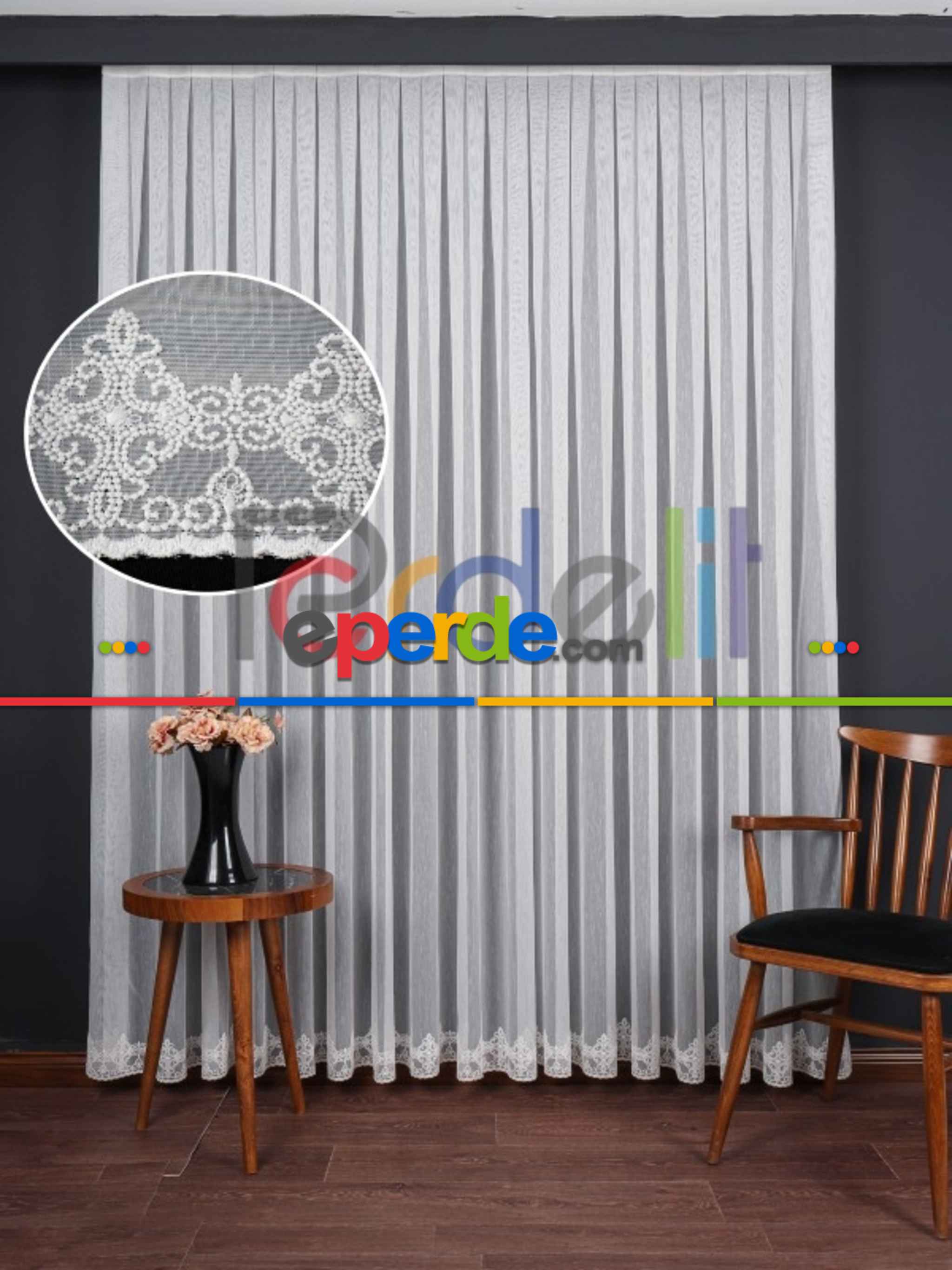 Danimarka | Etek Ucu Nakış İşlemeli Tül Perde » Eperde