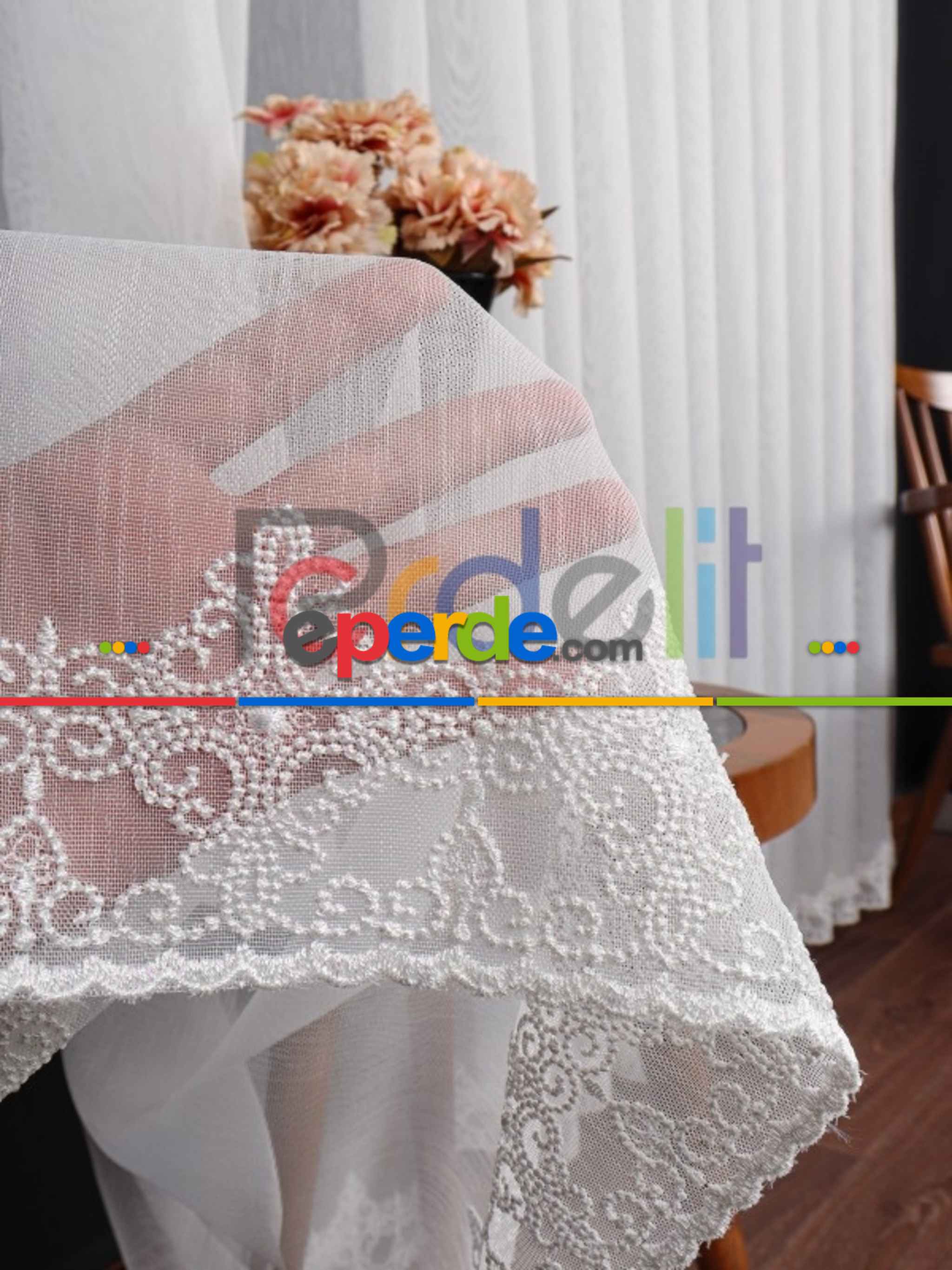 Etek Ucu Nakış İşlemeli Tül Perde
