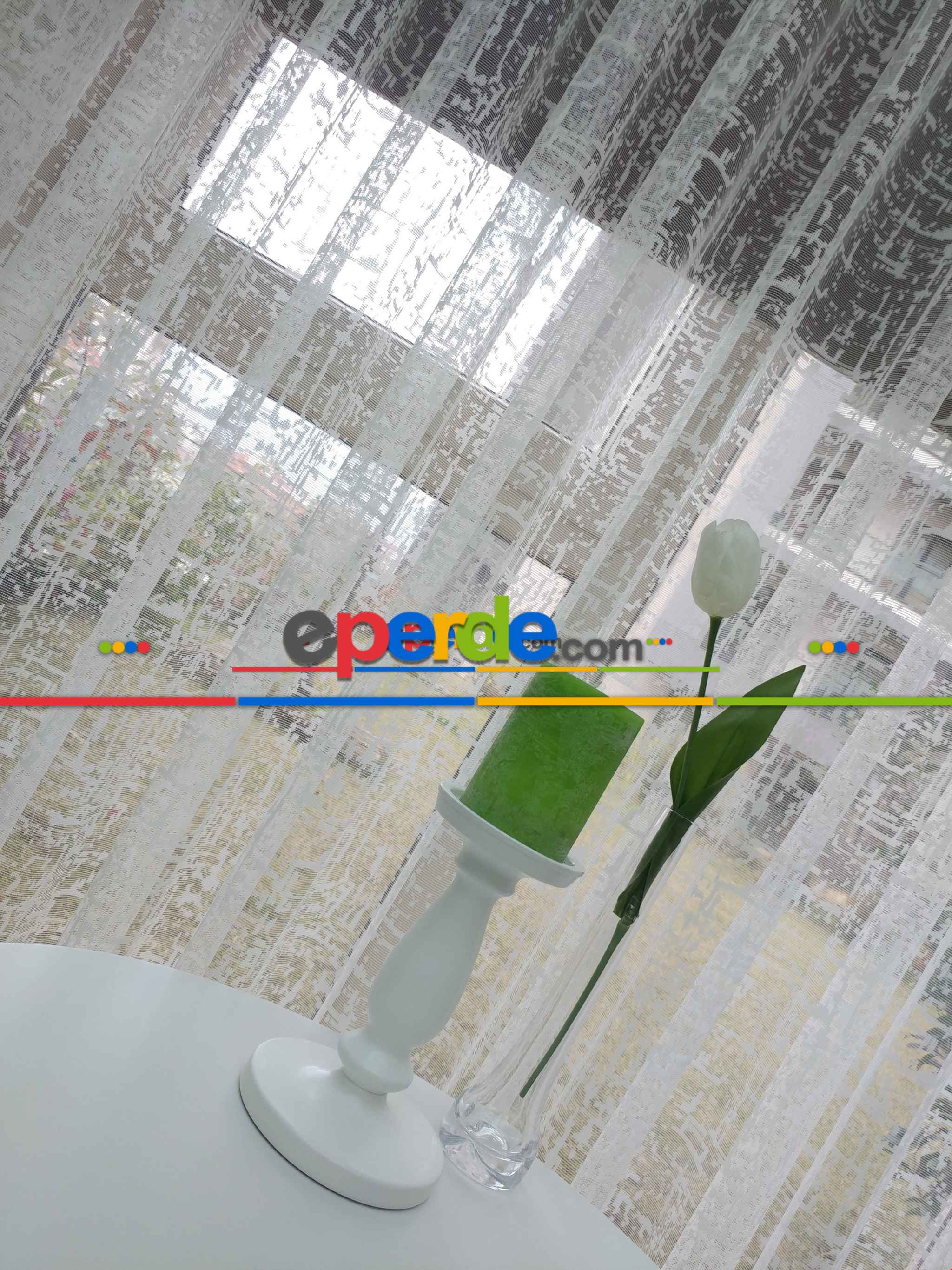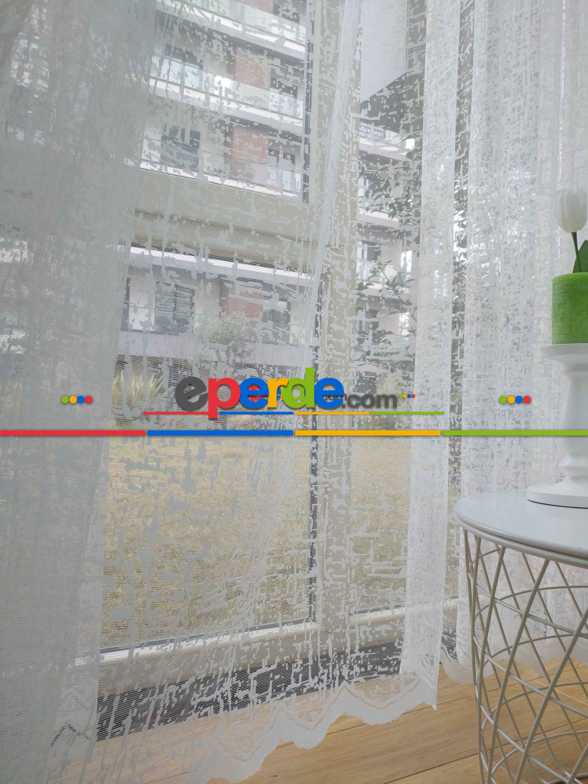 Fırsa Ürünü!! Hazır Ölçülü Spor Desen Fransız Dantel Patine Desenli Sık Pileli Tül Perde