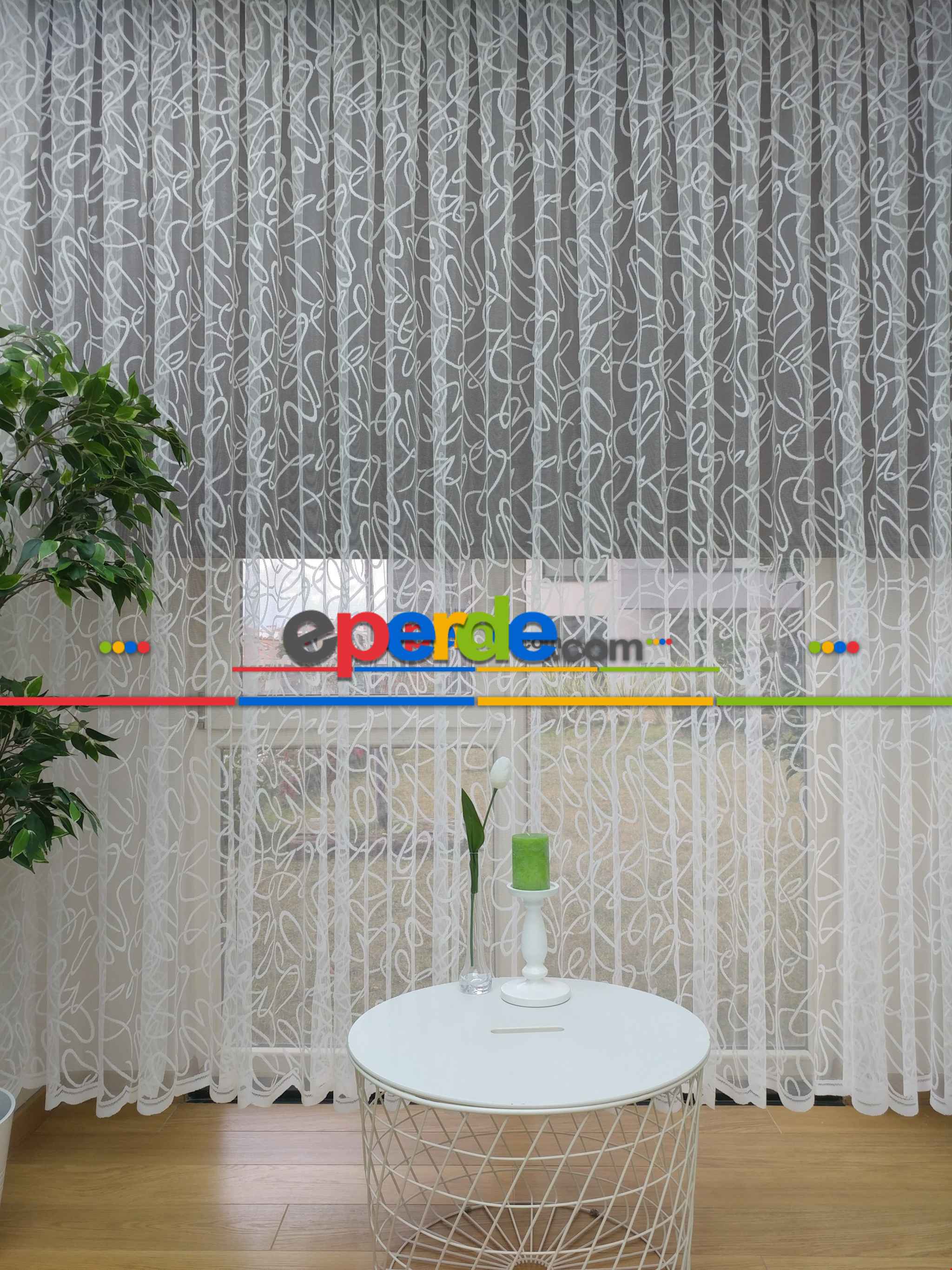 Fırsat Ürünü!! Hazır Ölçülü Spor Desen Fransız Dantel Modern Desenli Tül Perde Ödeme Seçenekleri