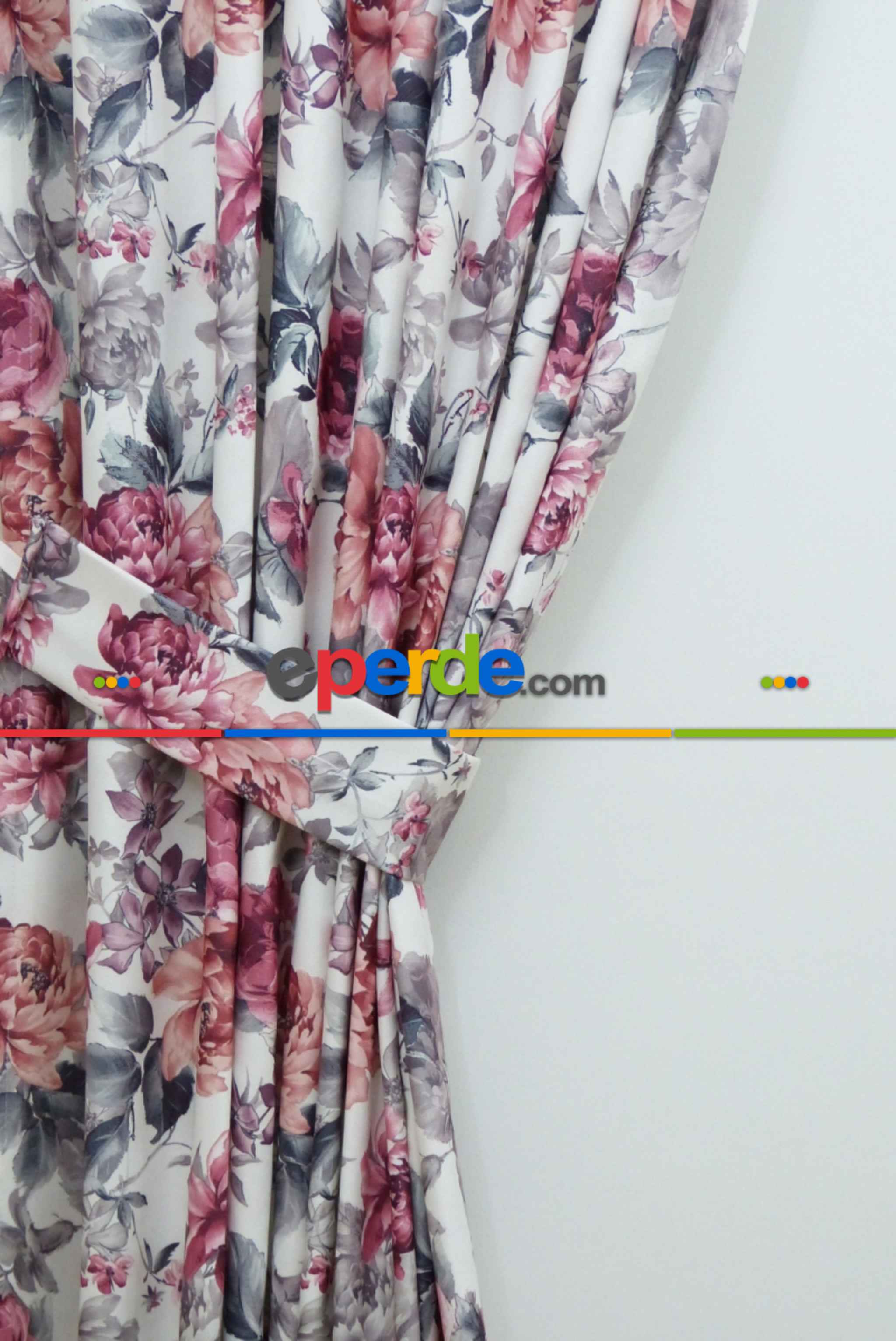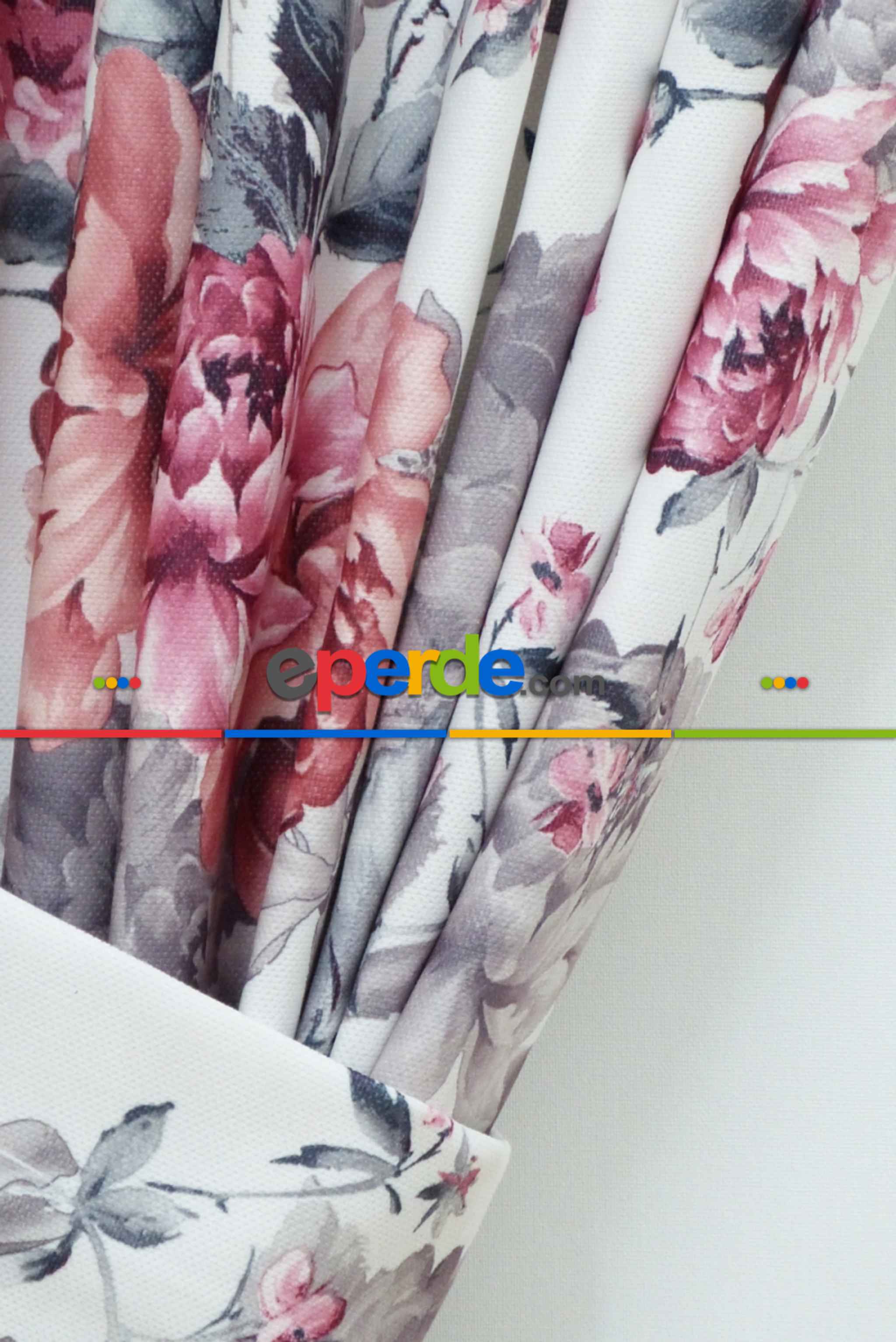 Fon Perde Desenli 55487 Güllü ( Pembe - Mor - Gri )- Gri-Füme-Antrasit-Pembe Ürün Açıklaması