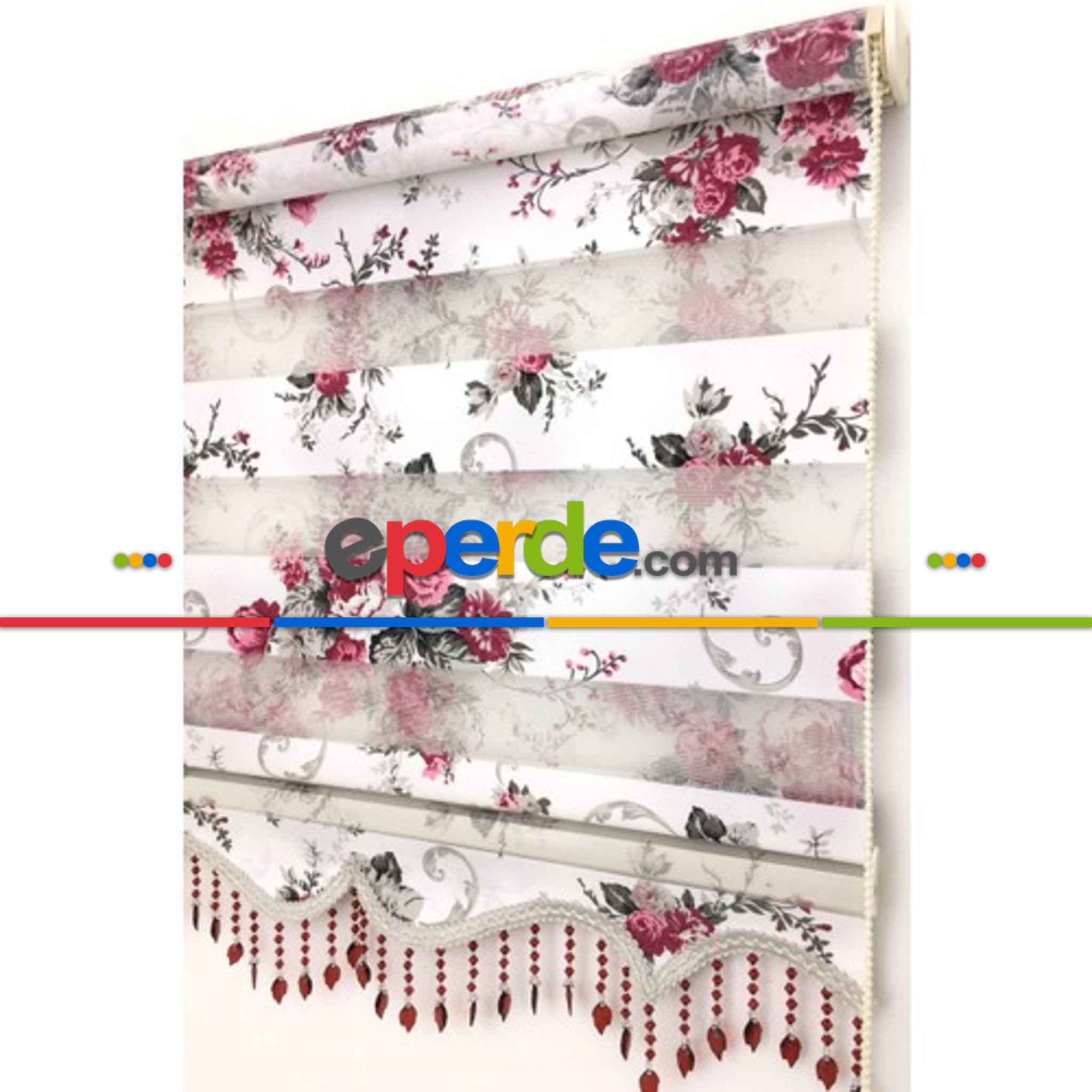 Çiçekli zebra perde
