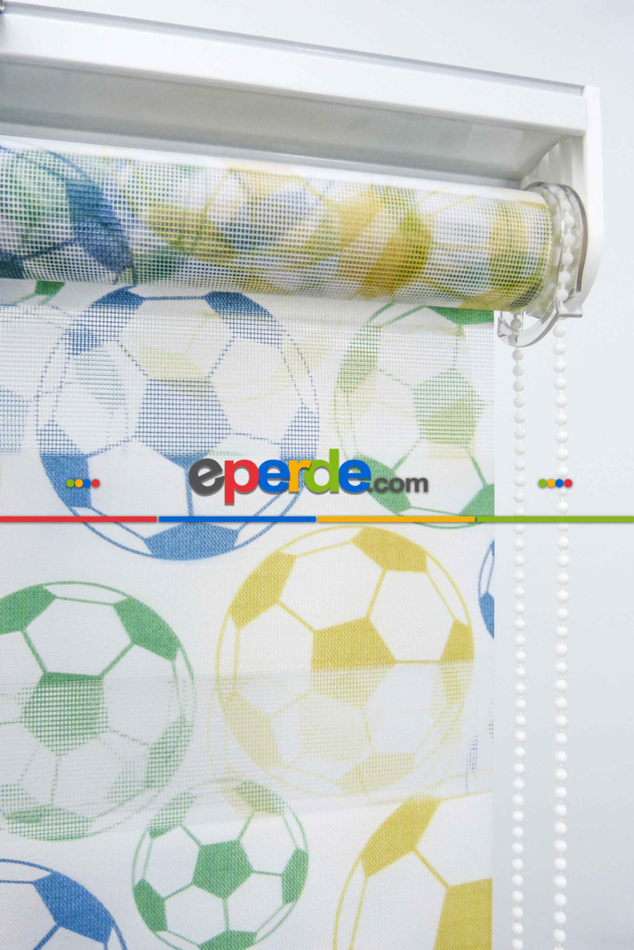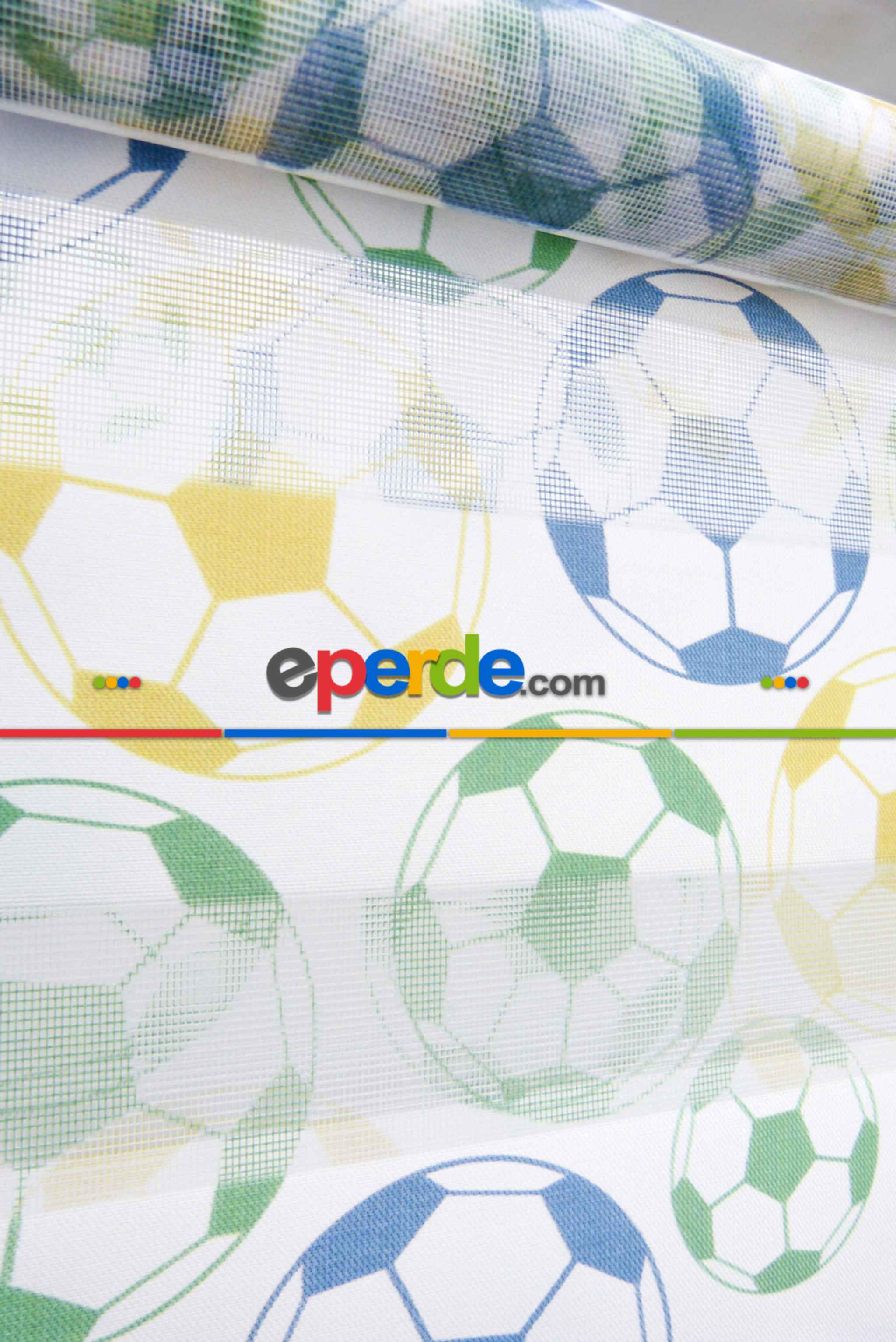 Futbol Topu Desen Zebra Perde- Yeşil-mavi-sarı Ürün Açıklaması