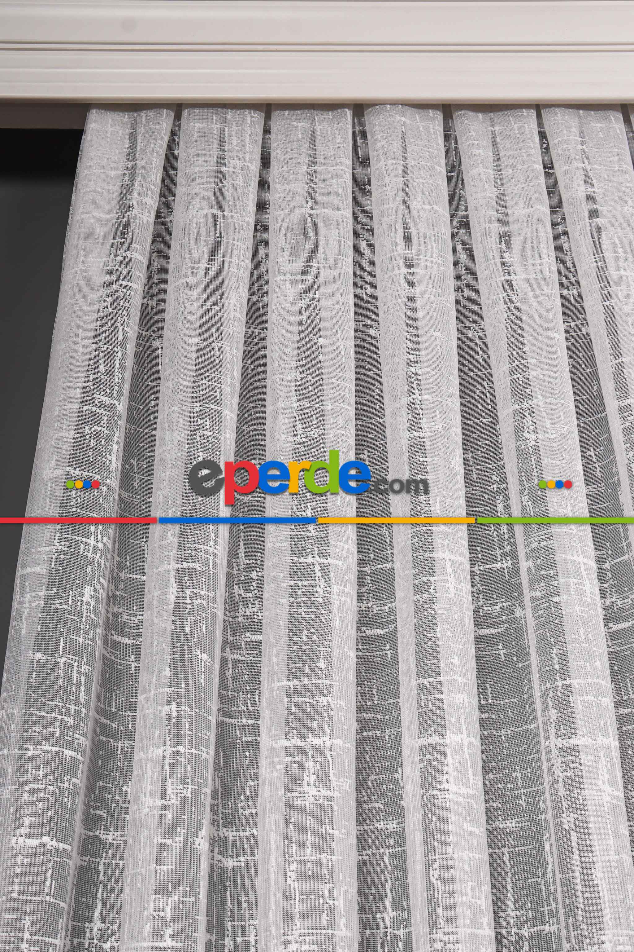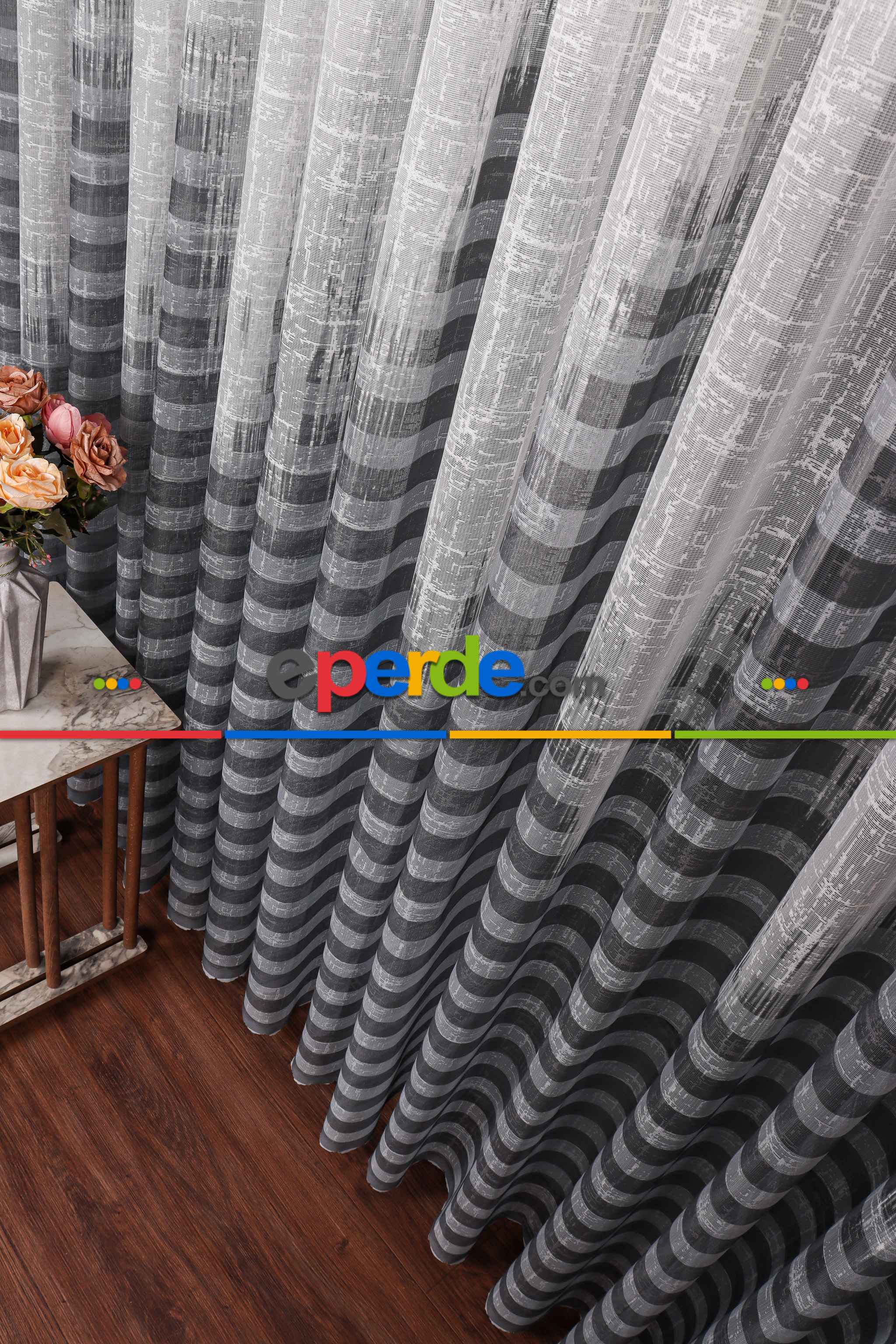 Güney Afrika | Genç Odası - Modern Çizgili Baskılı Örme Tül Perde- Gri ( Degrade Geçişli) 2022 Özel Seri » Eperde
