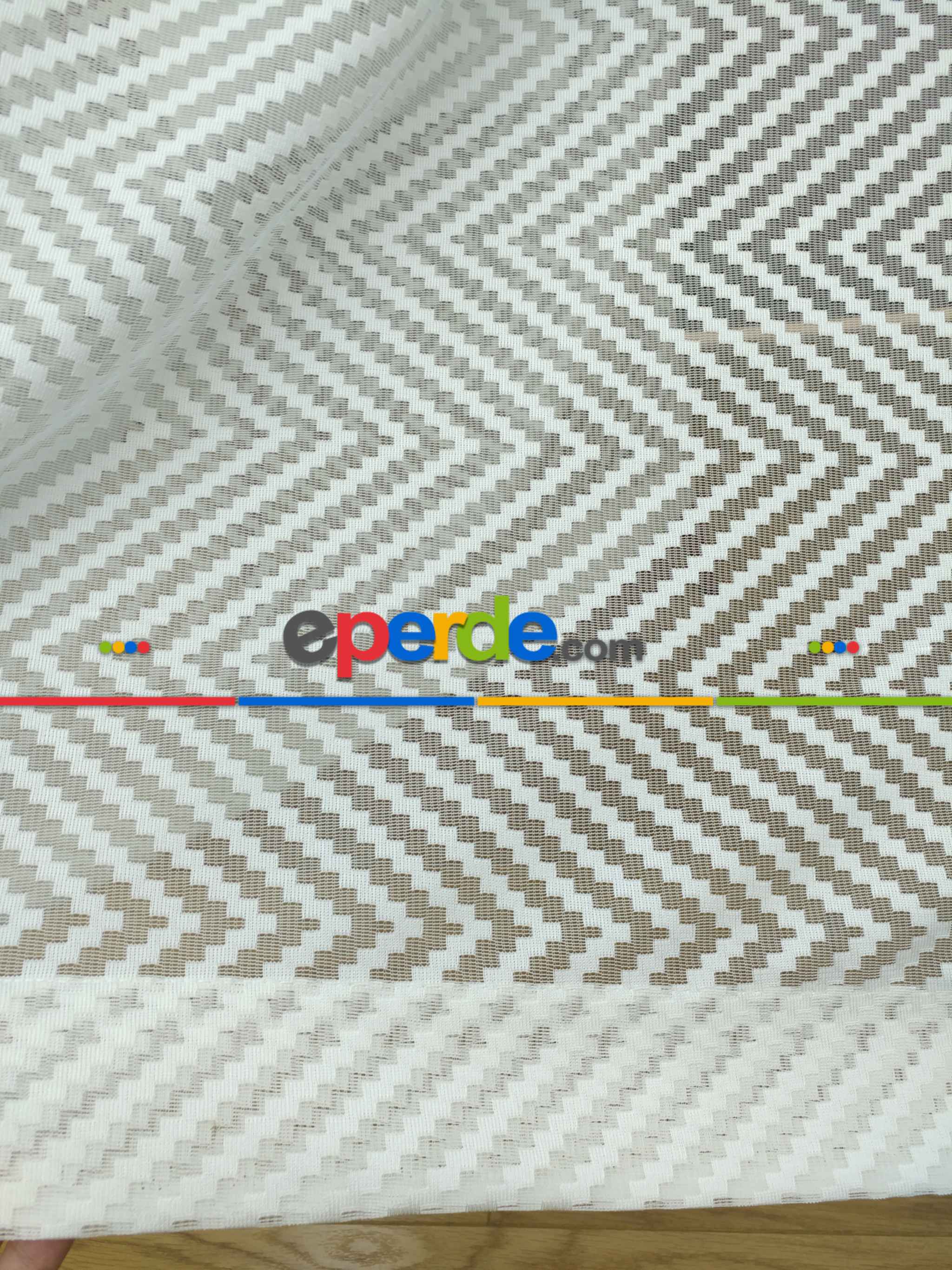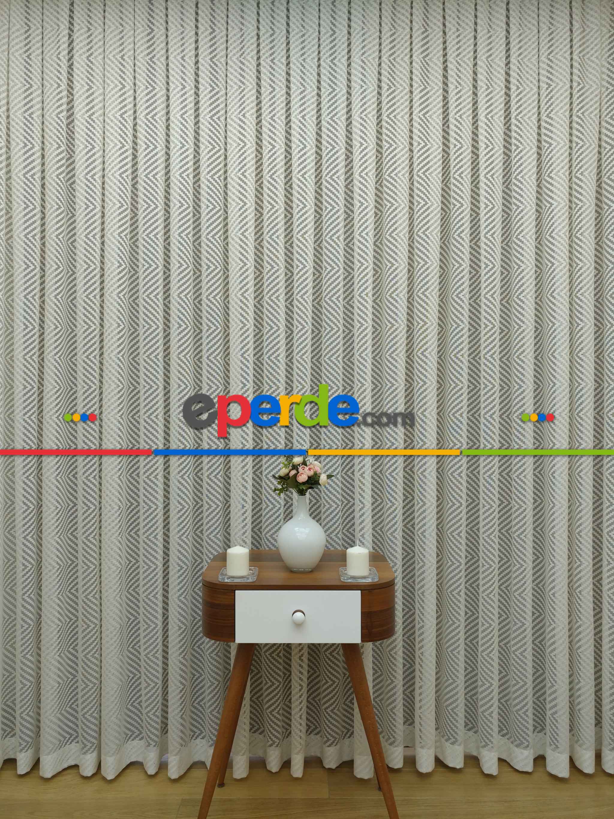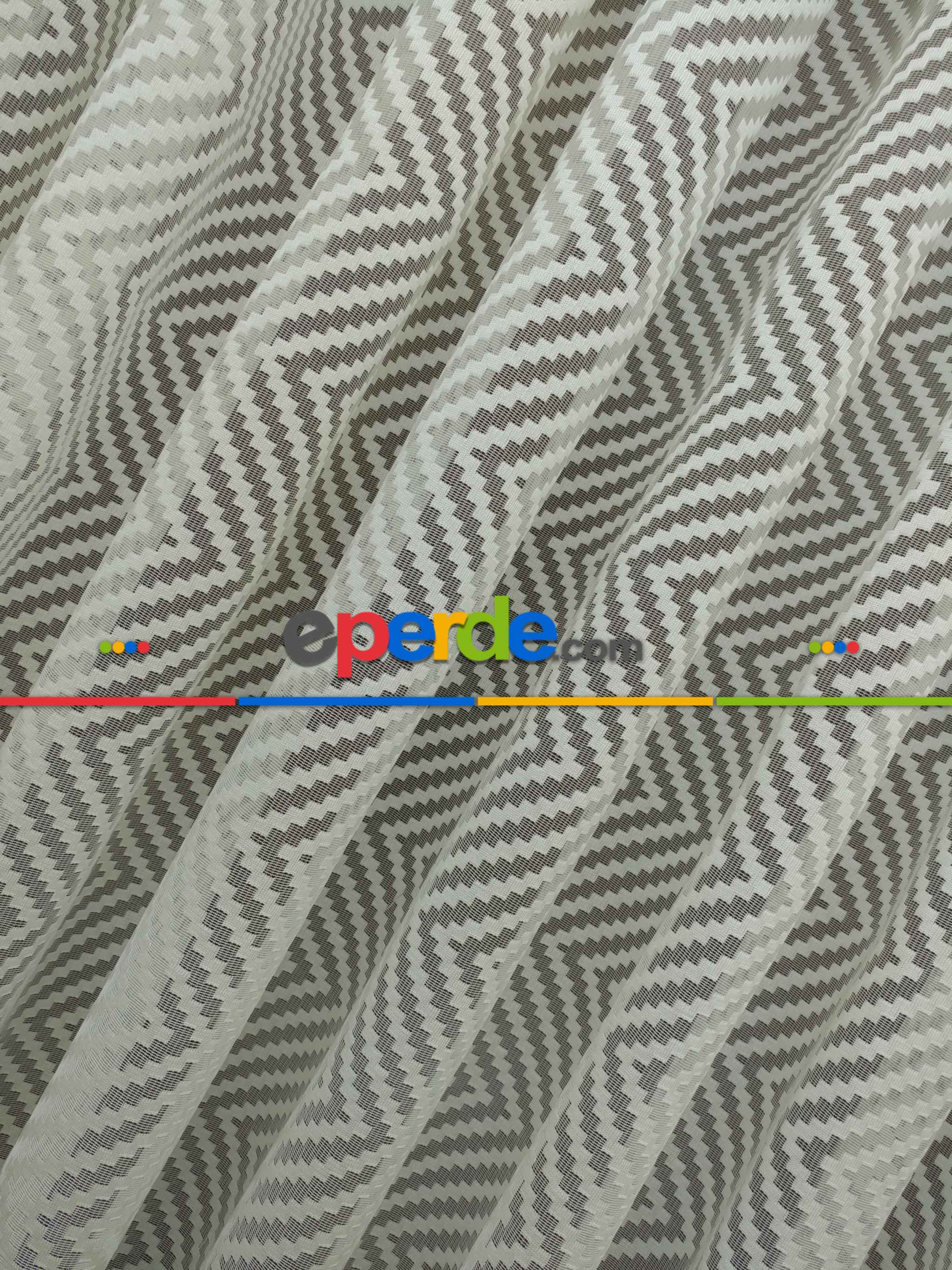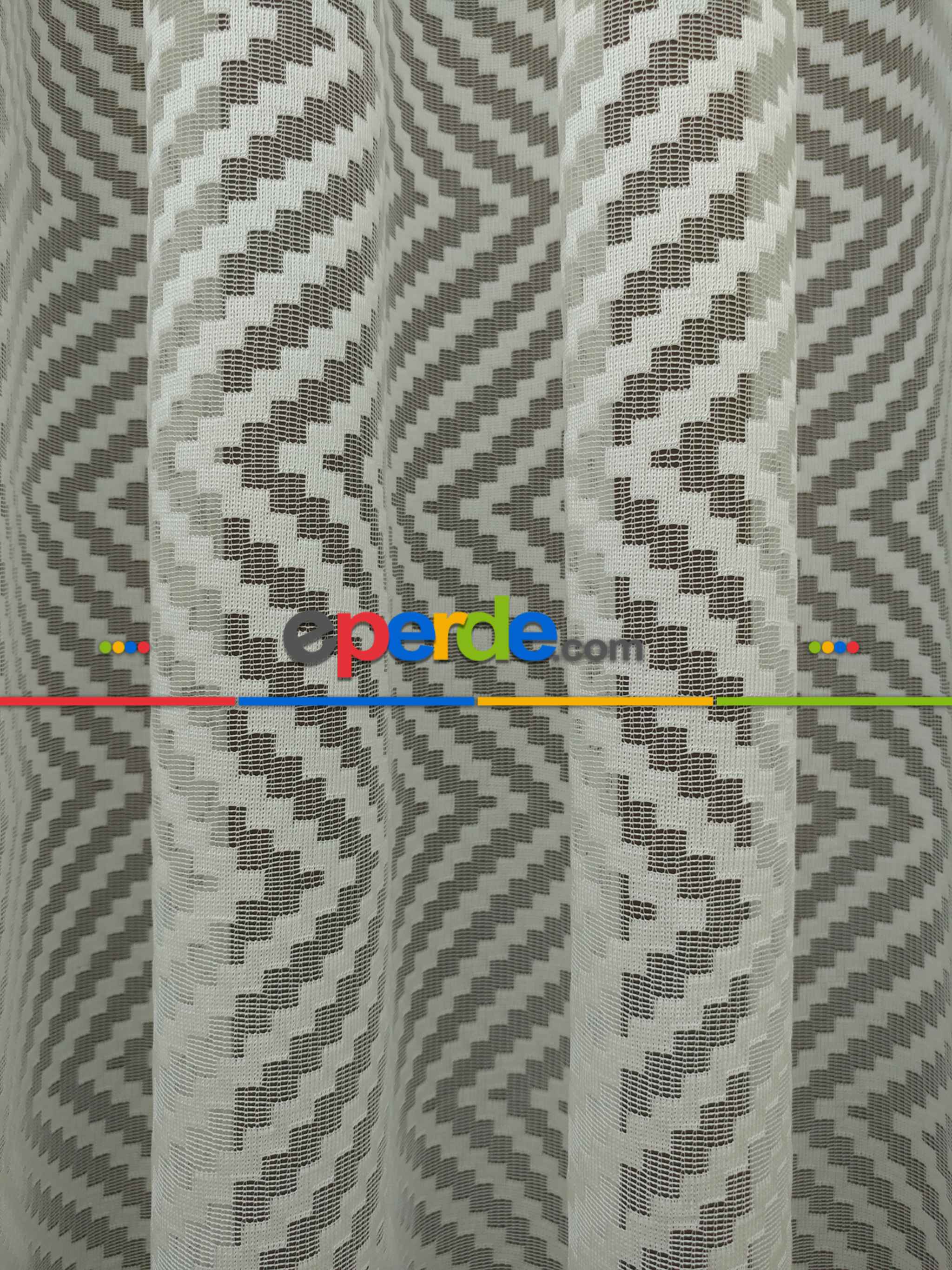 Güney Afrika | Geometrik Desenli Tül Perde Etek Katlamalı- Ekru » Eperde