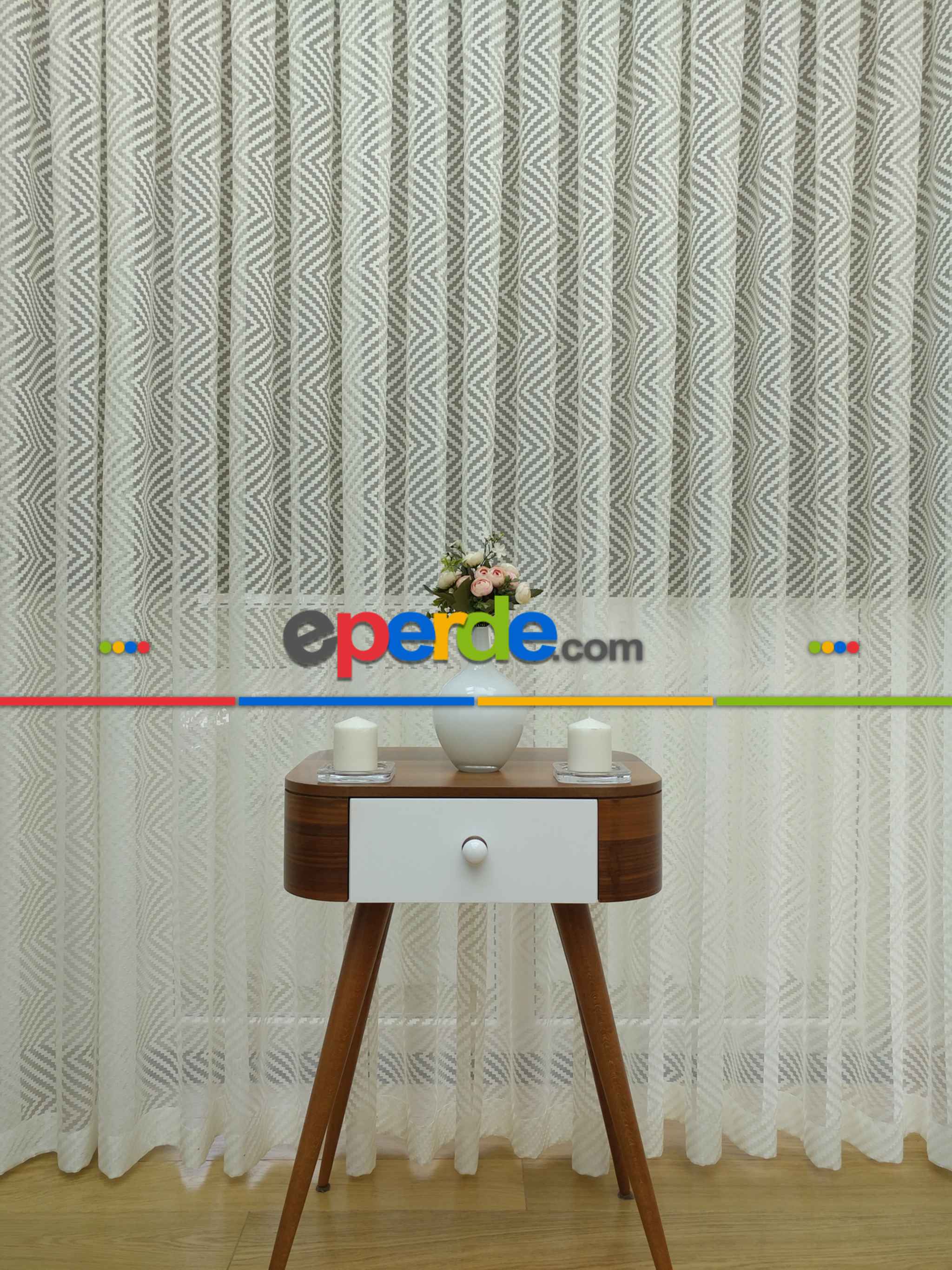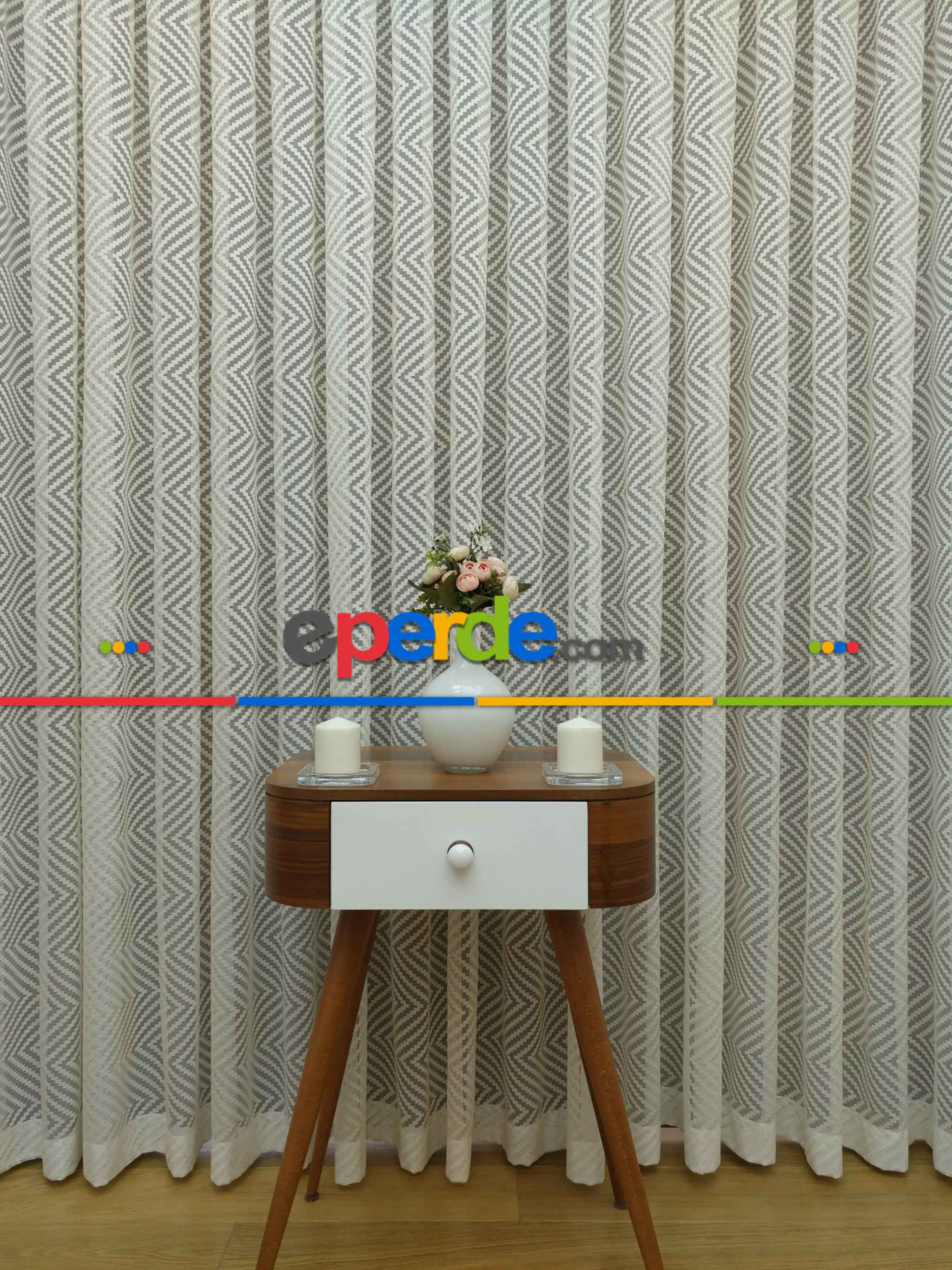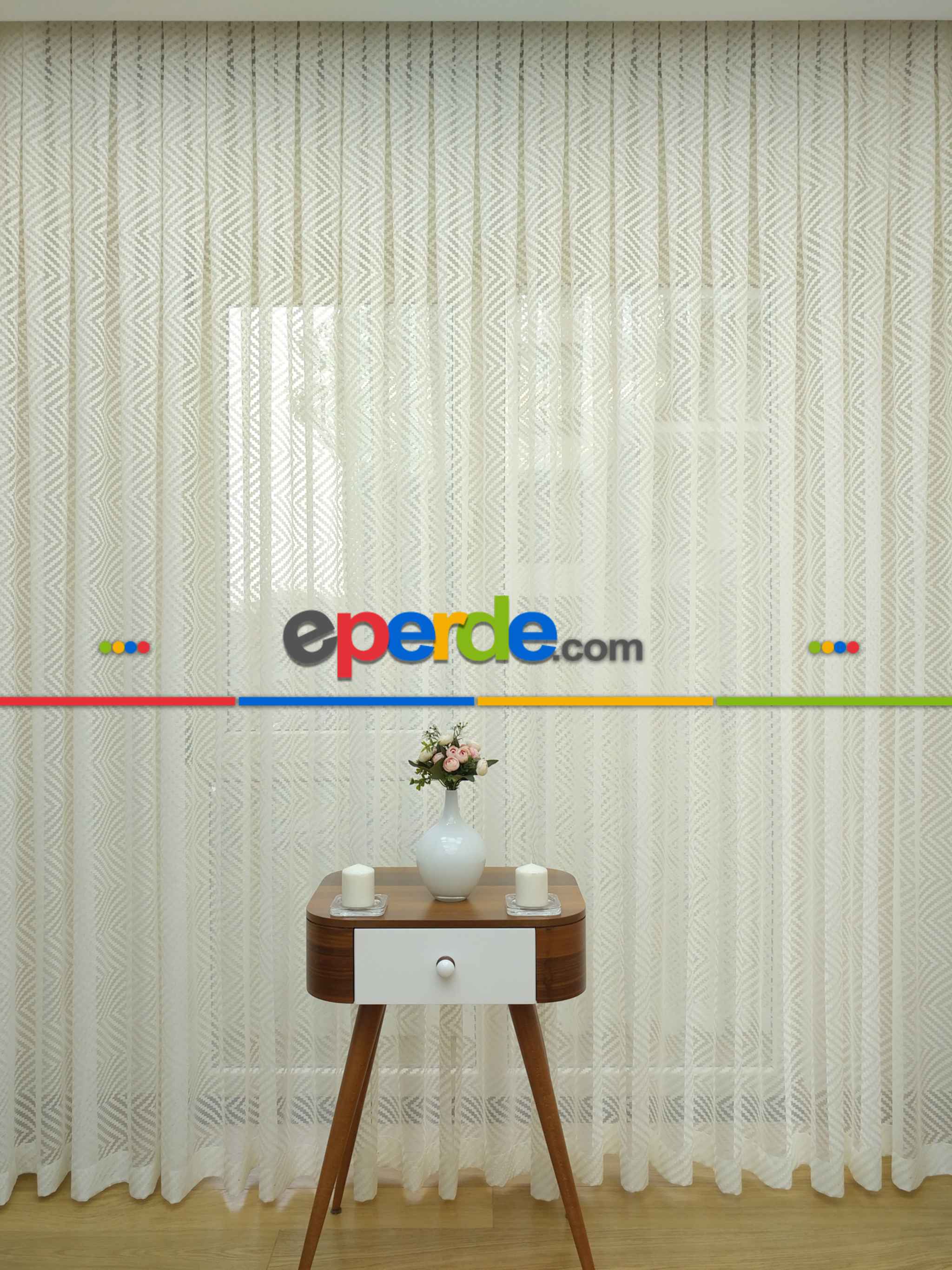 Güney Afrika | Geometrik Desenli Tül Perde Etek Katlamalı- Ekru » Eperde