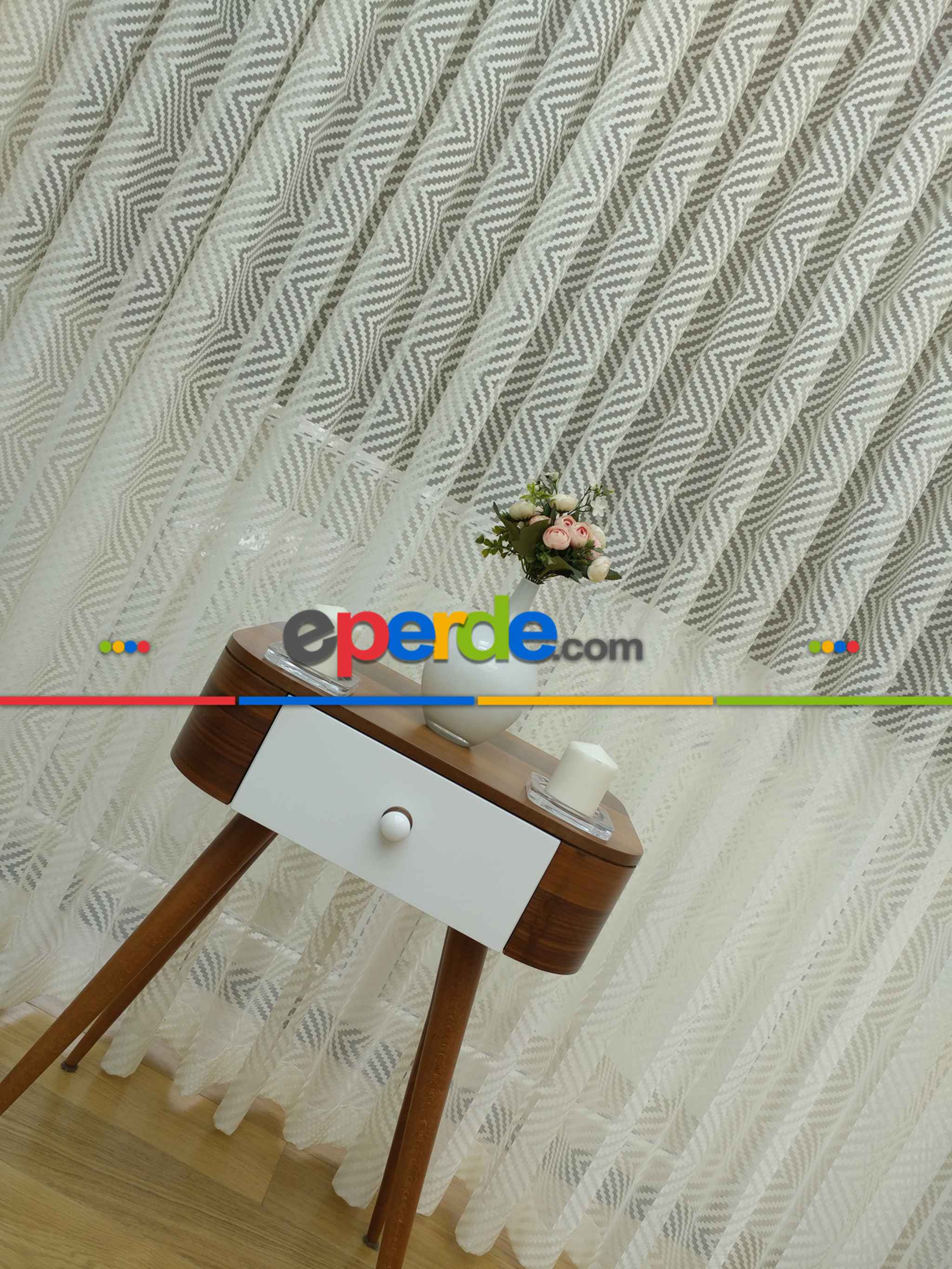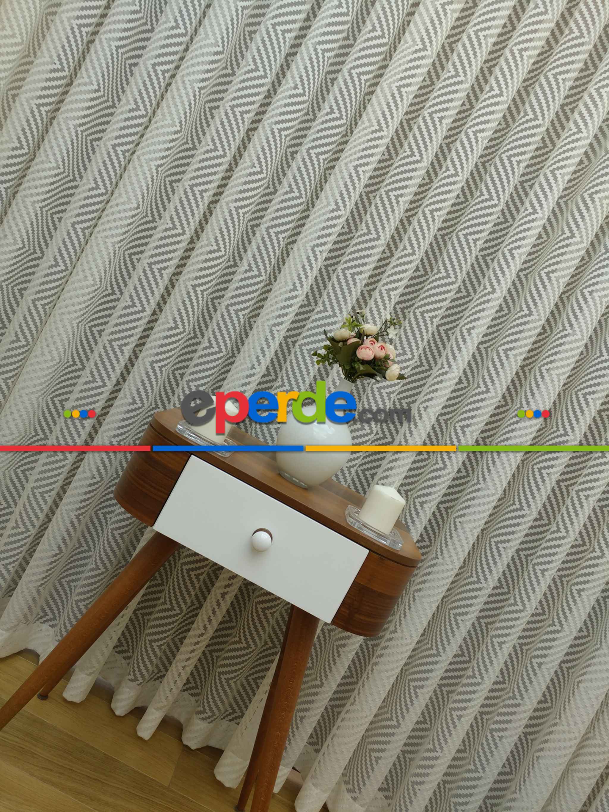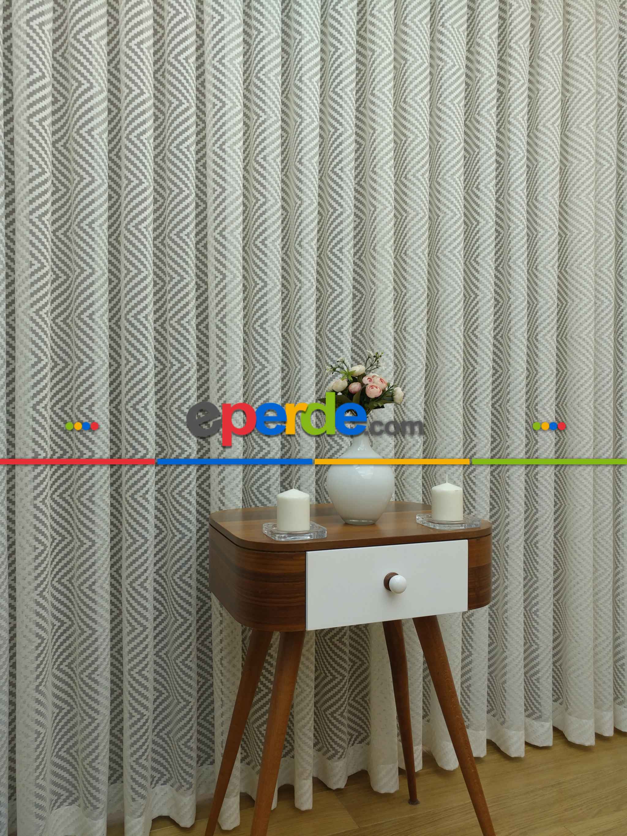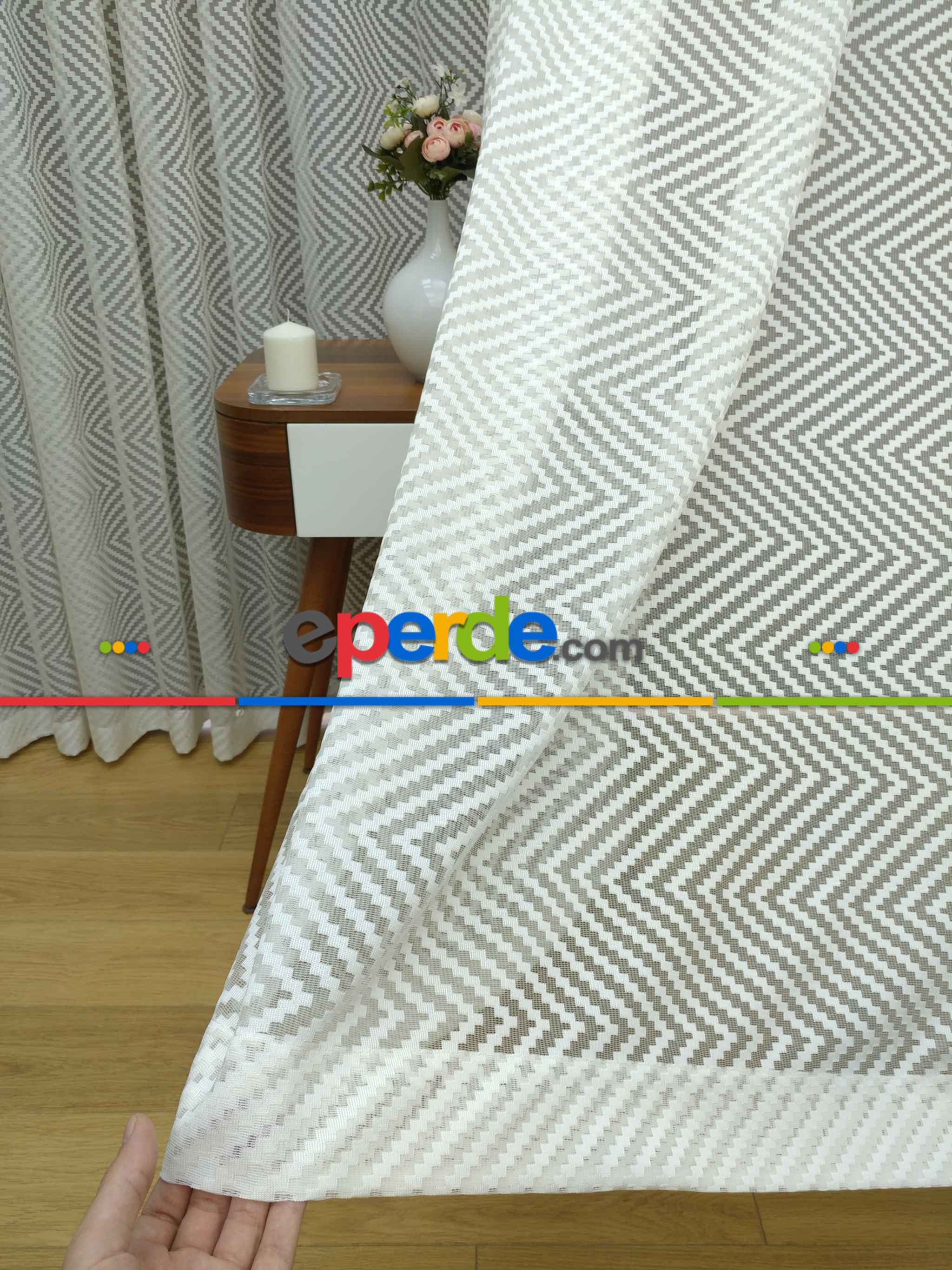 Güney Afrika | Geometrik Desenli Tül Perde Etek Katlamalı- Ekru » Eperde