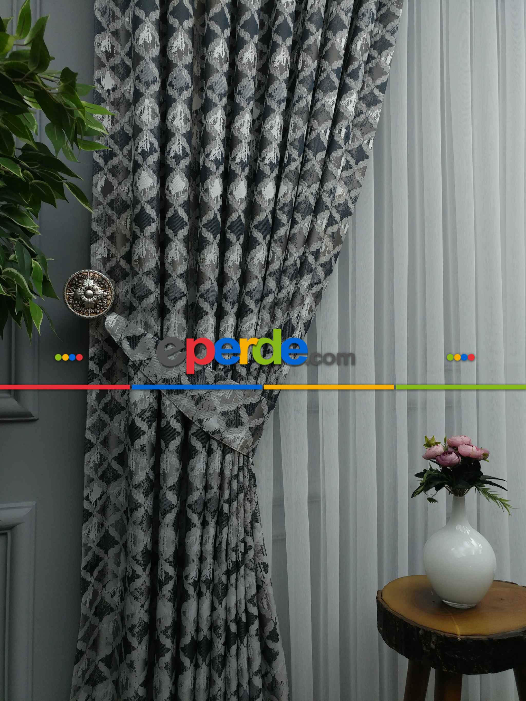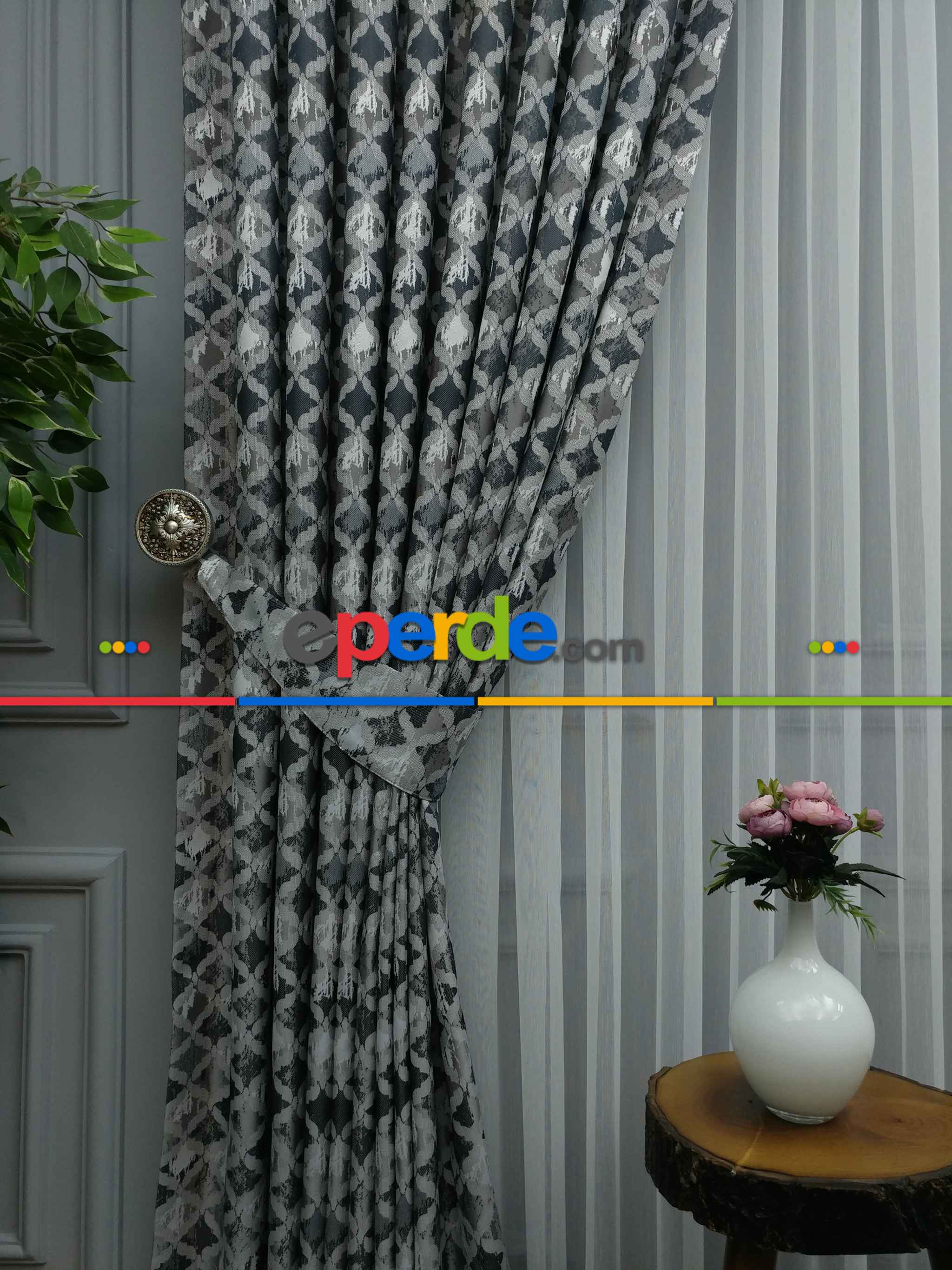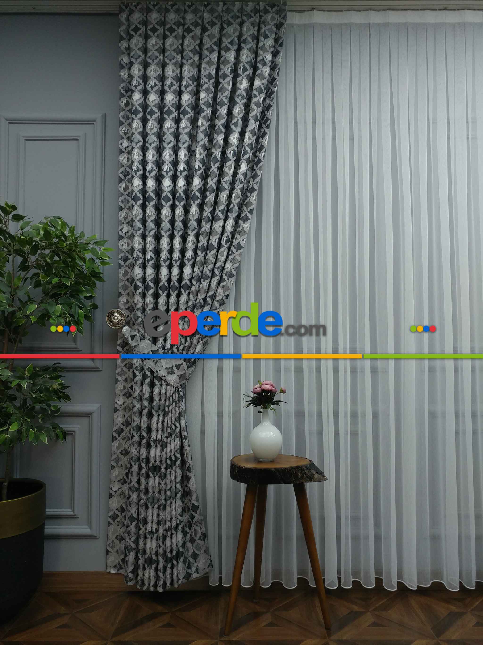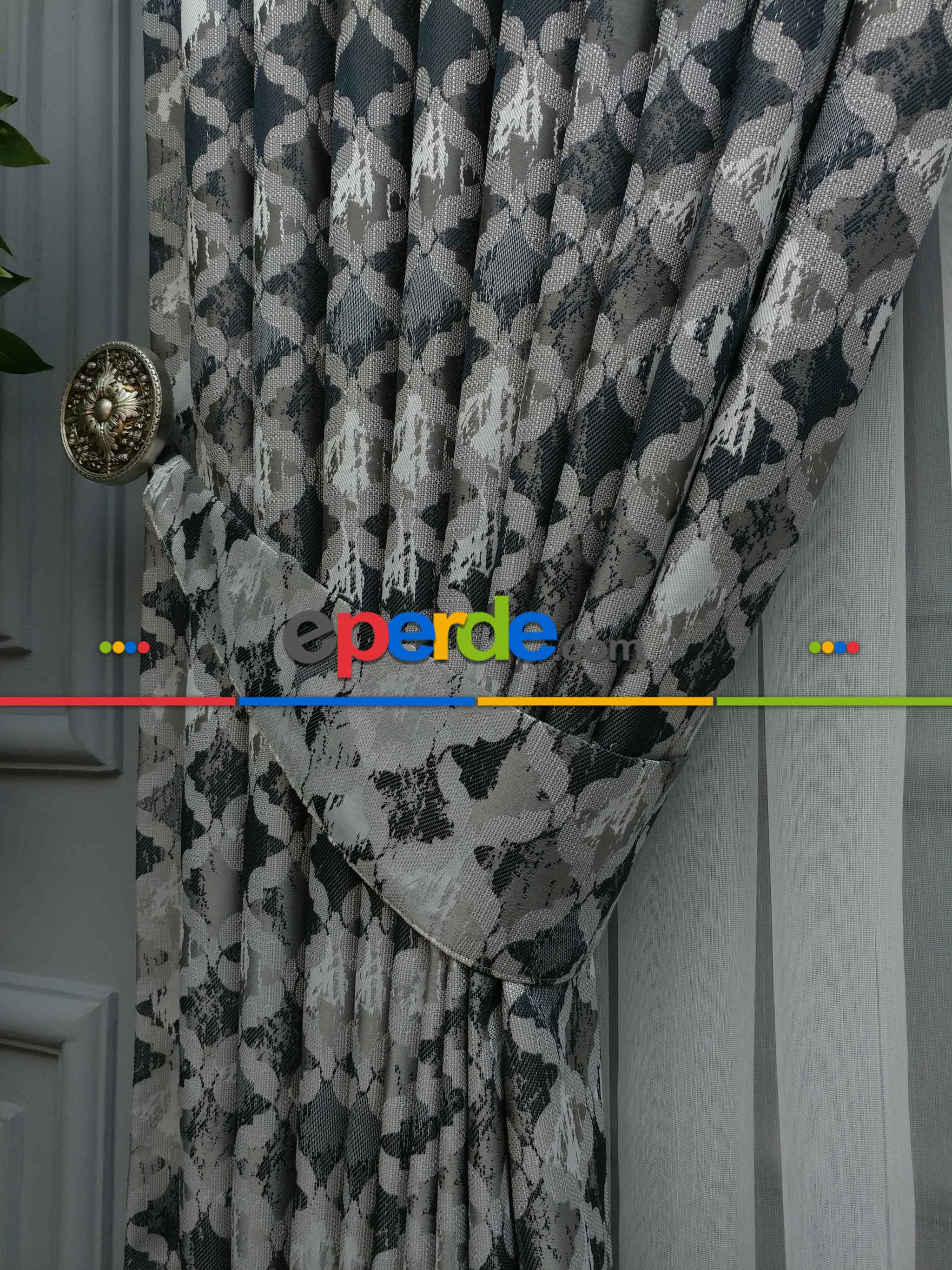 Gri Desenli Jakar Fon Perde (180)- Füme Ürün Açıklaması