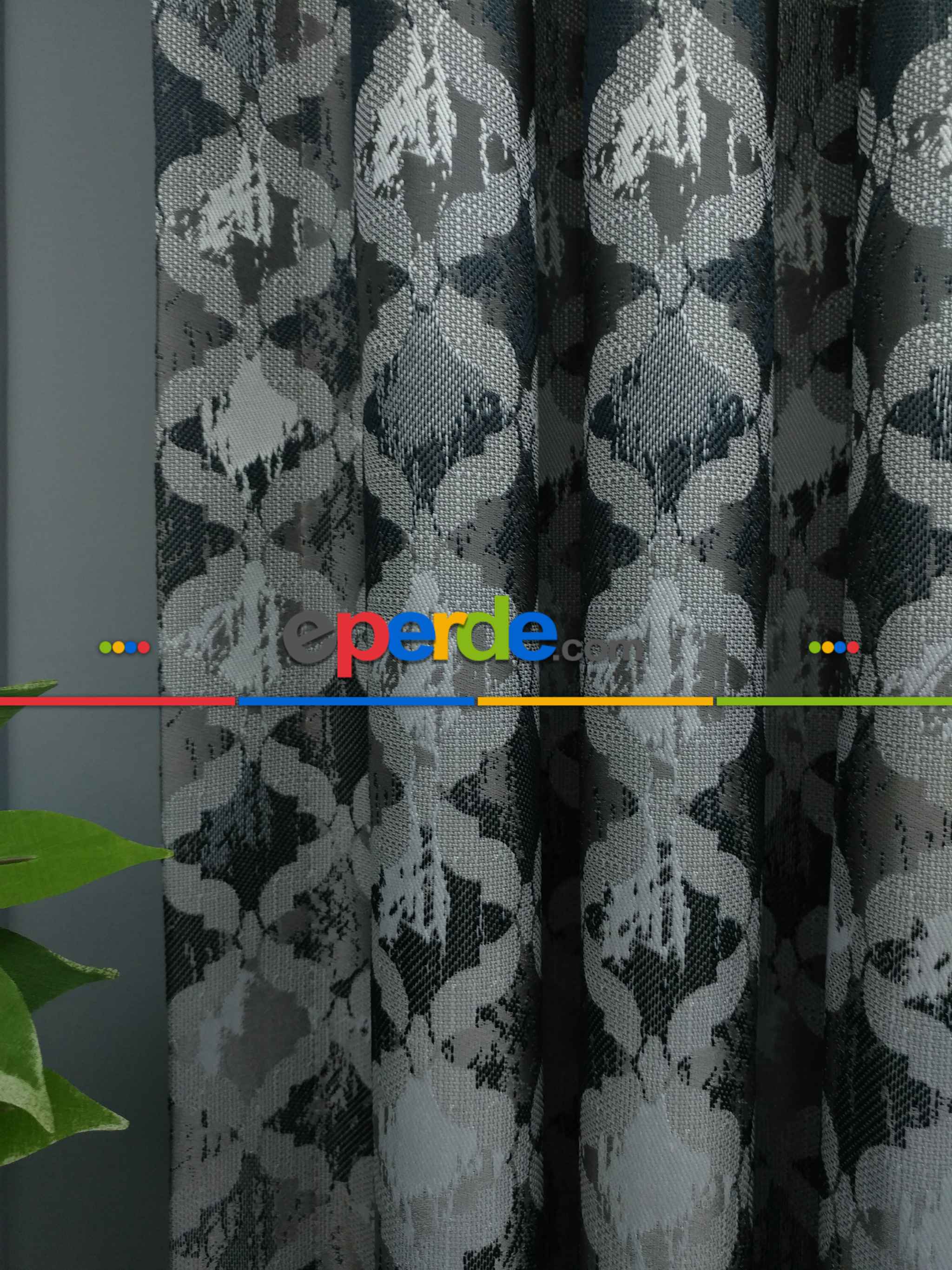 Gri Desenli Jakar Fon Perde (180)- Füme Ödeme Seçenekleri