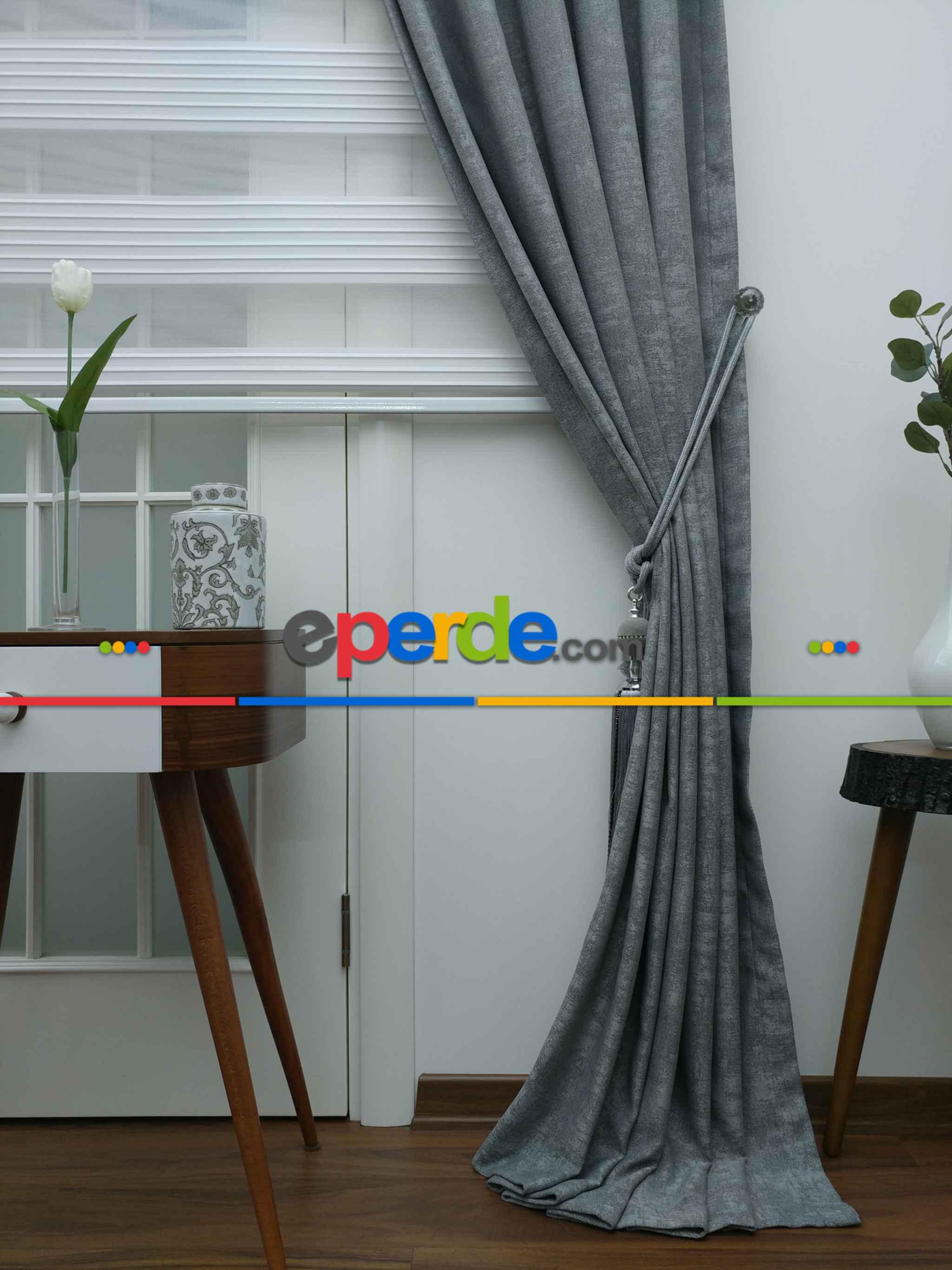 Gri - Düz Jakar Fon Perde- Gri-füme-antrasit-gri Açık » Eperde