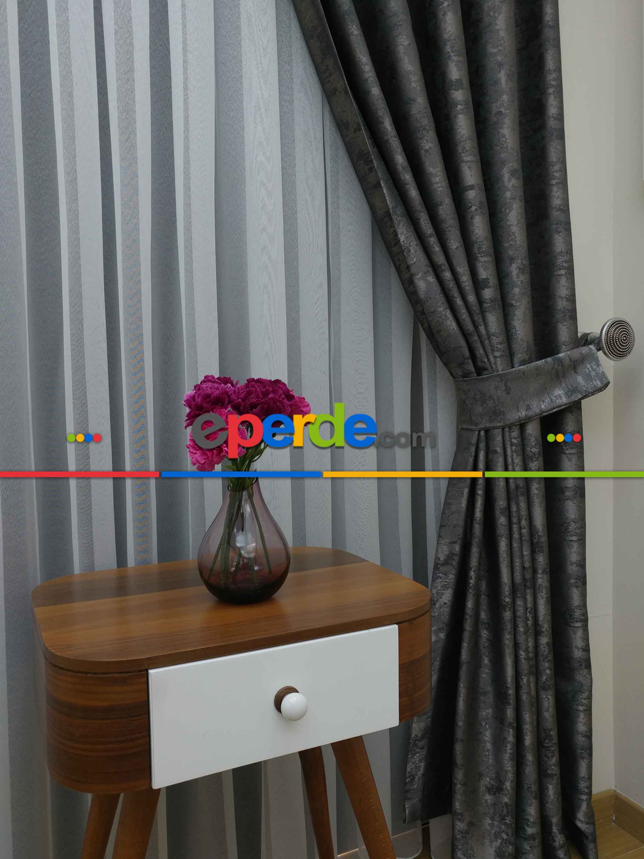 Gri - Katyonik Jakar Fon Perde- Gri-füme-antrasit