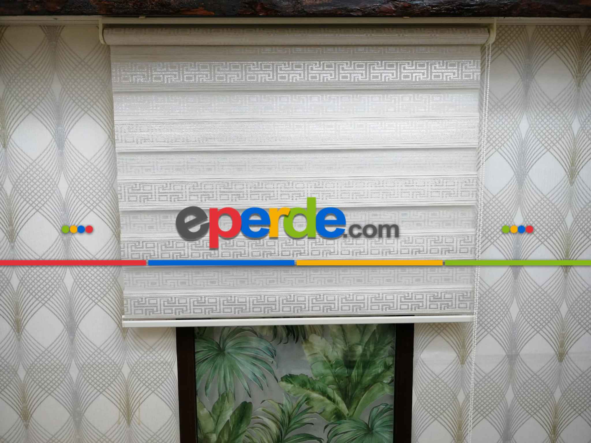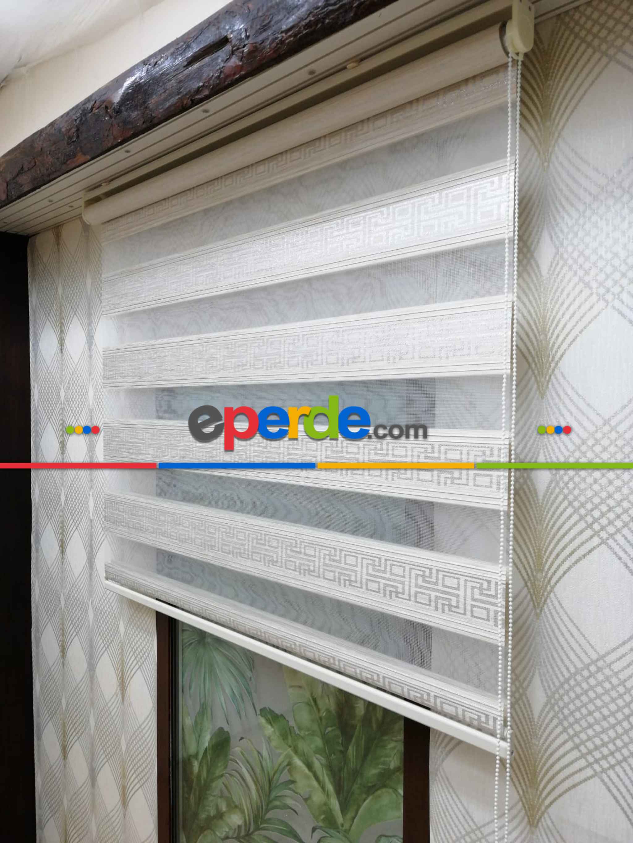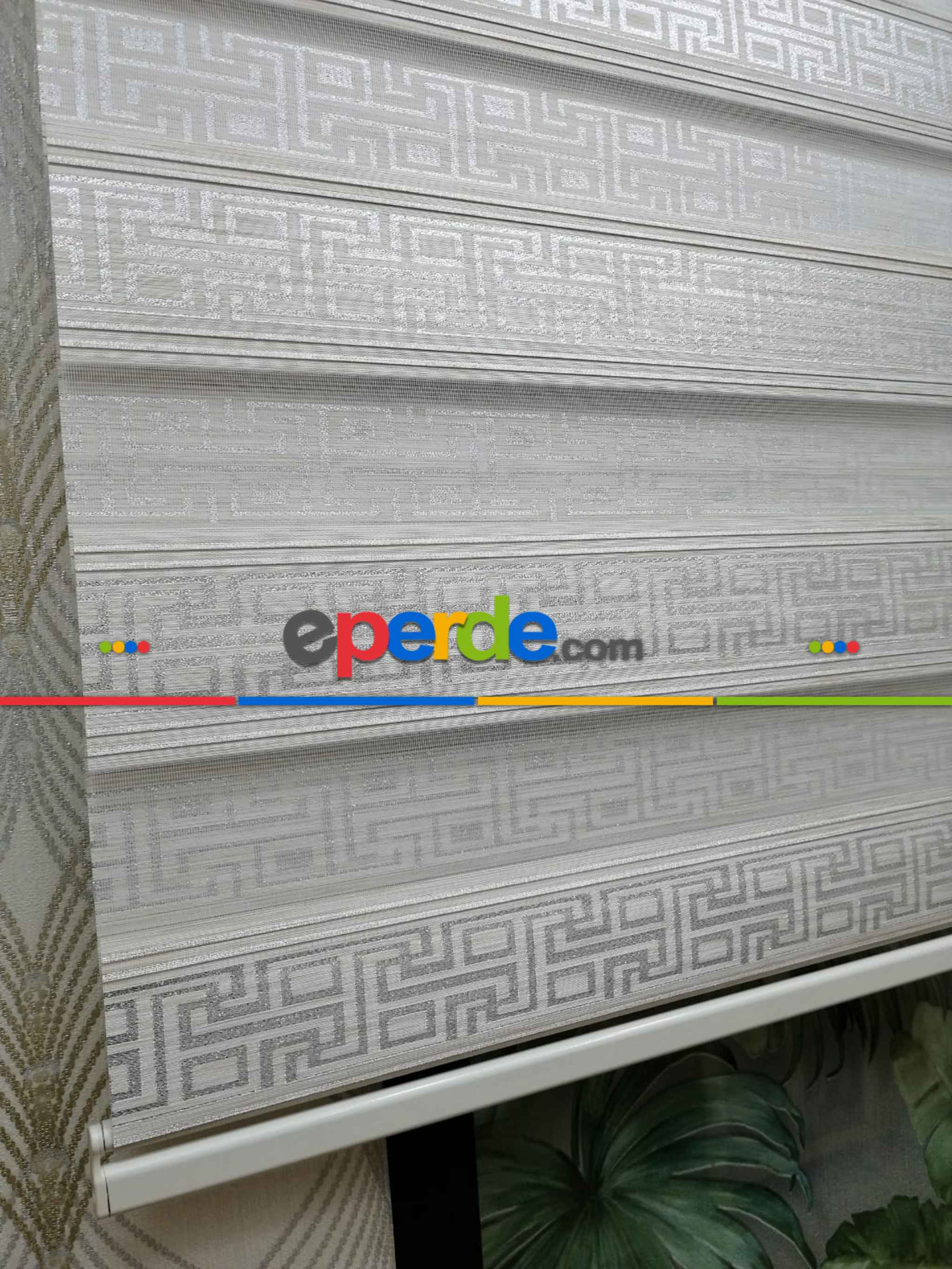 Gümüş Simli Krem Jakarlı Zebra Perde- Krem Ödeme Seçenekleri