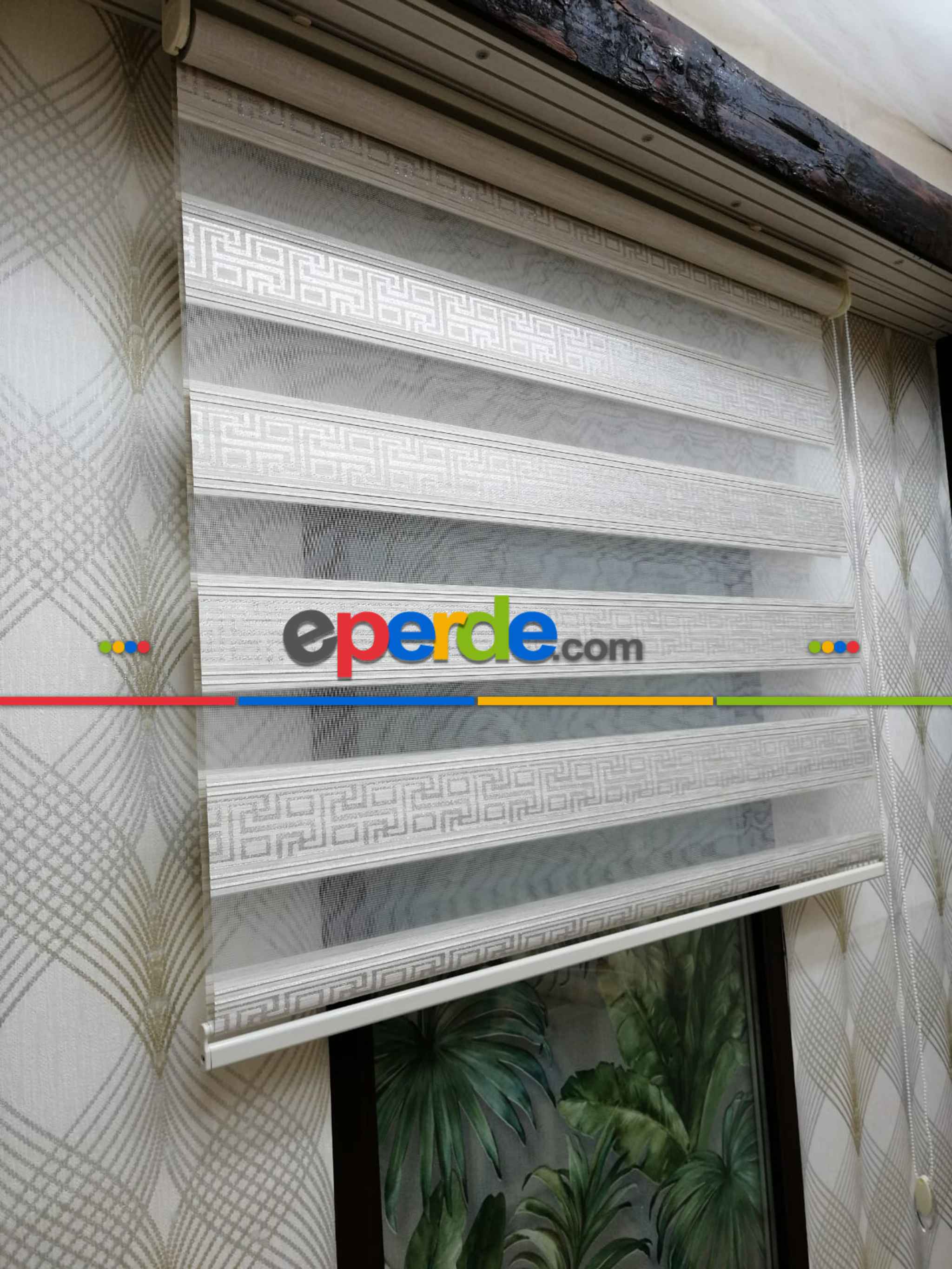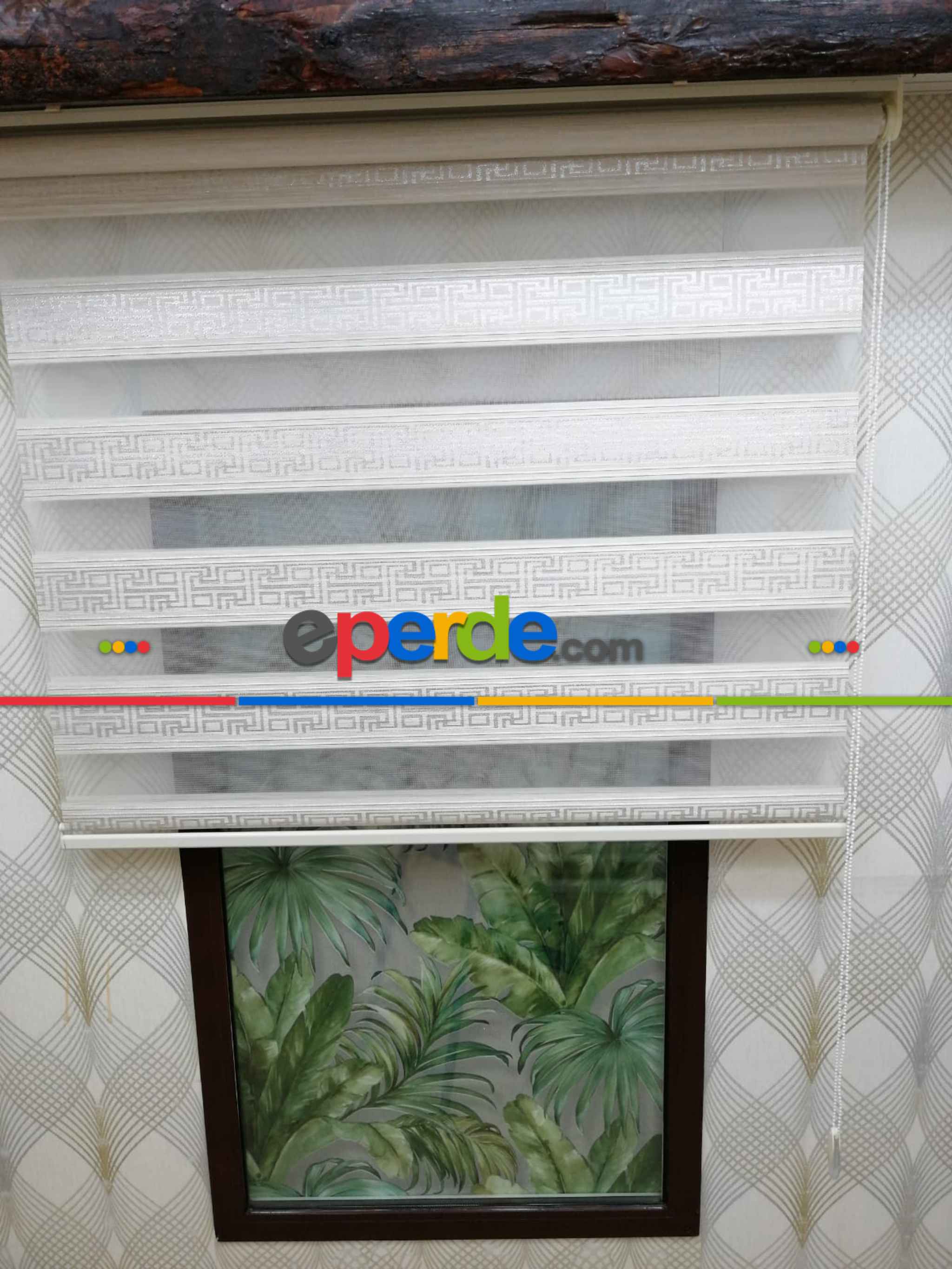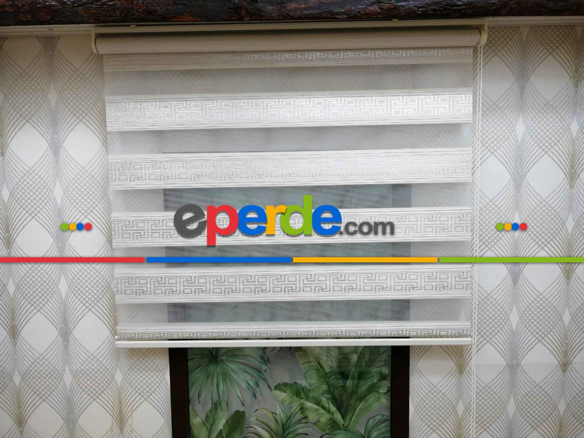 Gümüş Simli Krem Jakarlı Zebra Perde- Krem Ödeme Seçenekleri