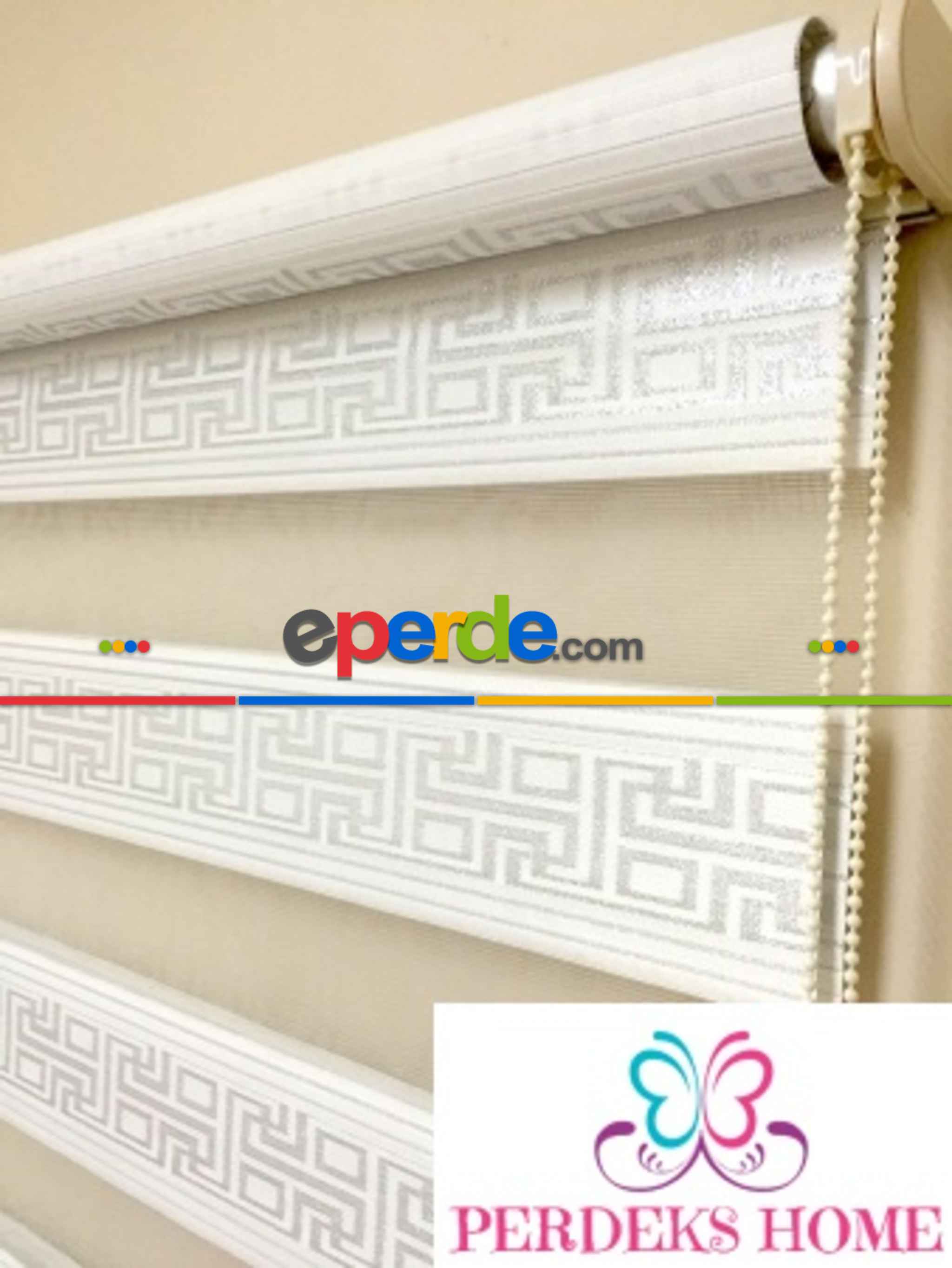 Gümüş Simli Krem Jakarlı Zebra Perde- Krem Ürün Açıklaması