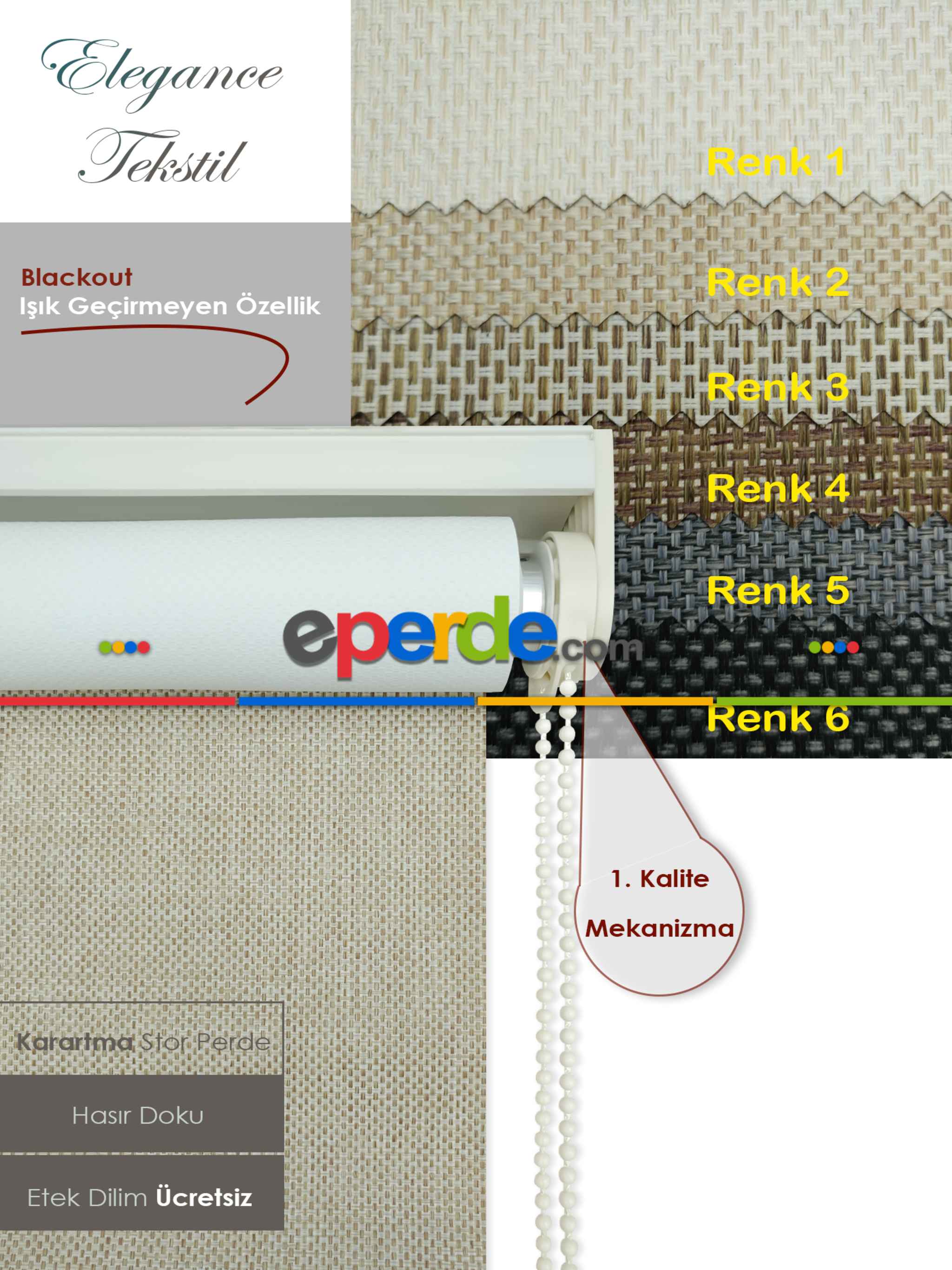 Hasır Stor Perde - Karartma Işık Geçirmeyen - 6 Farklı Renk- Siyah-gri-füme-antrasit-krem-bej-vizon Rengi-ekru-çok Renkli Ürün Açıklaması