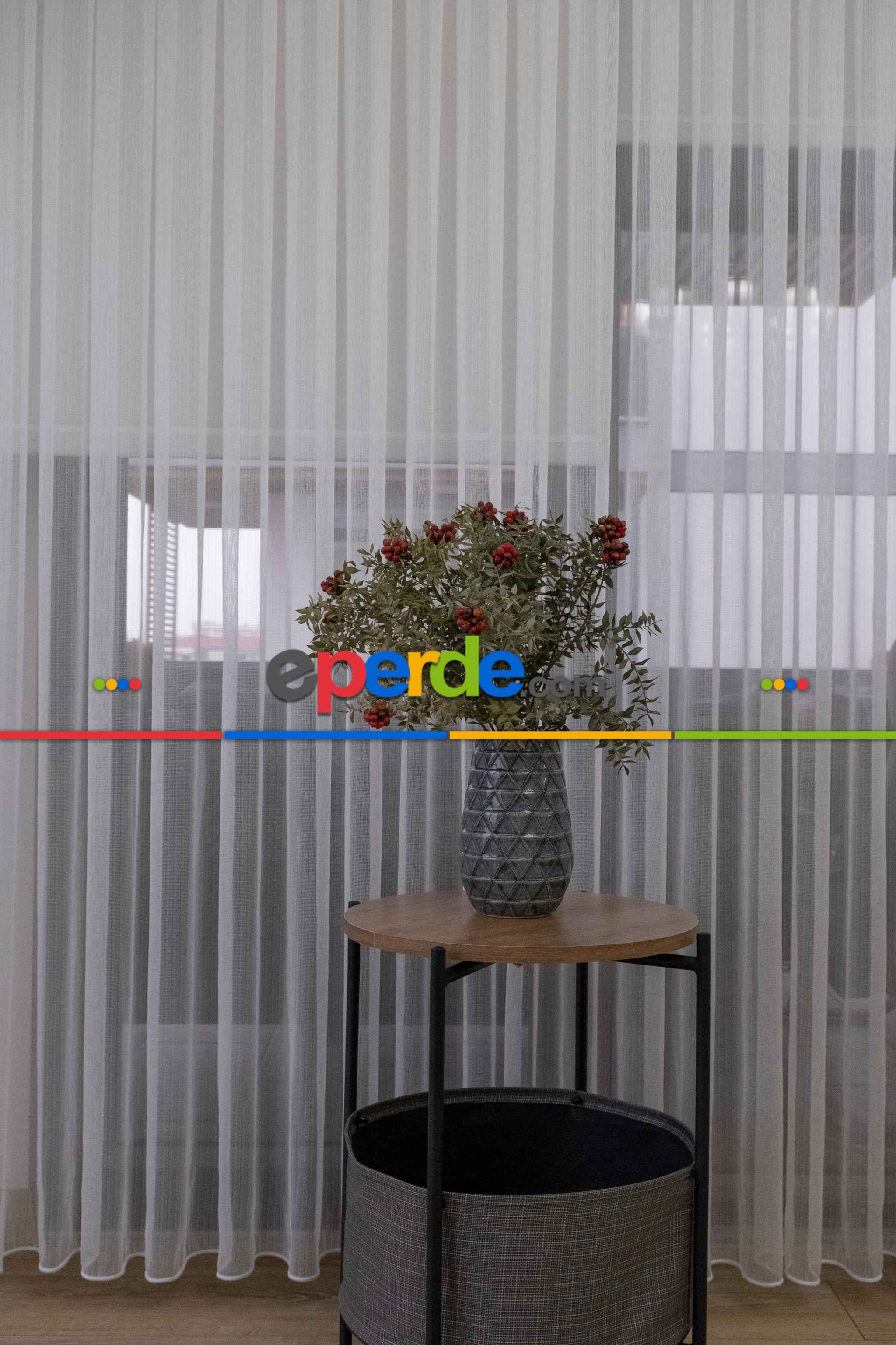 Hazır Ölçü Çizgili Düz Tül Perde - Sedef Simli Tül - Ütü İstemez - Kurşunlu Tül » Eperde