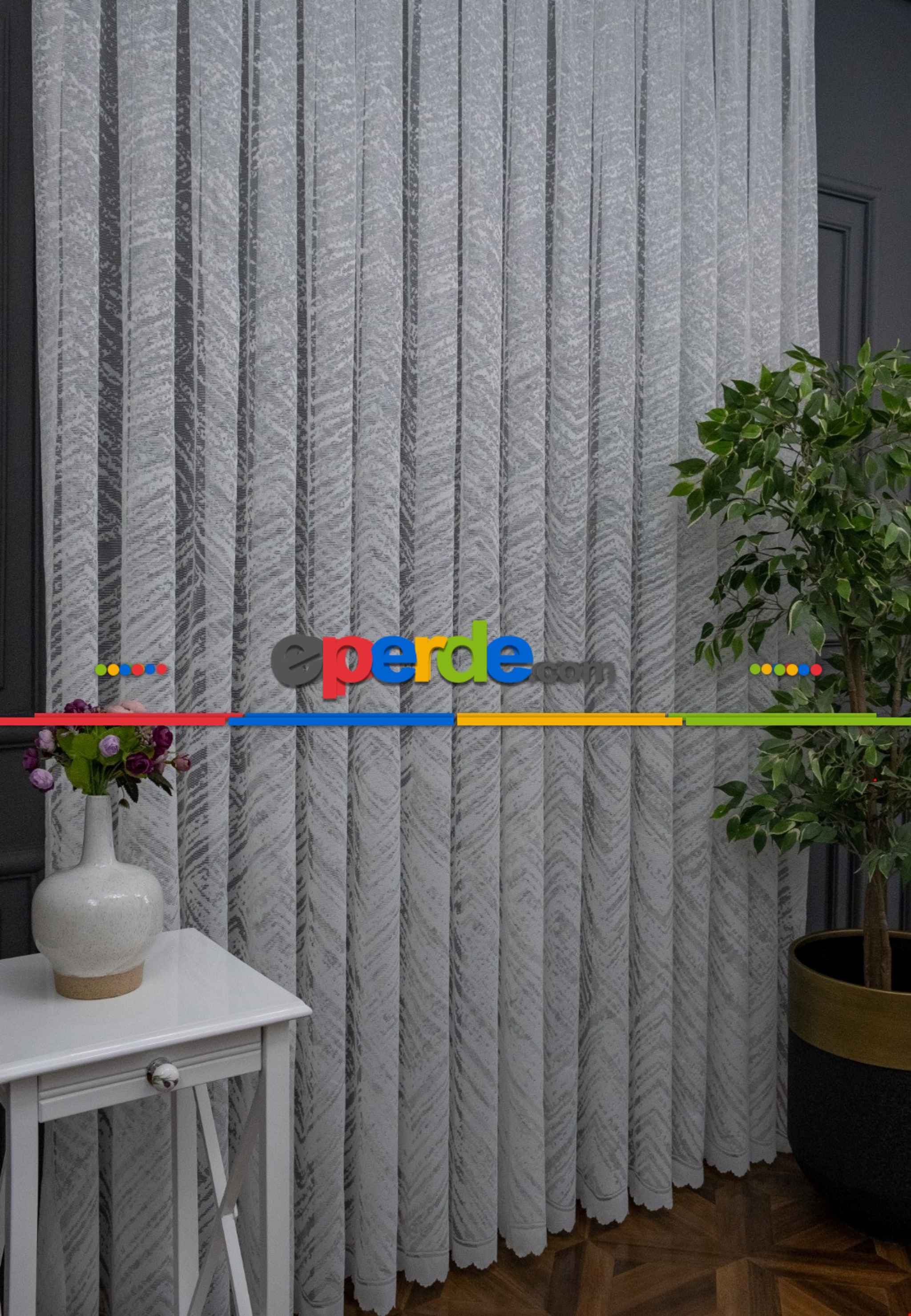 Hazır Ölçülü 2025 Model Tül Perde Modern Desenli Tül - Ekru