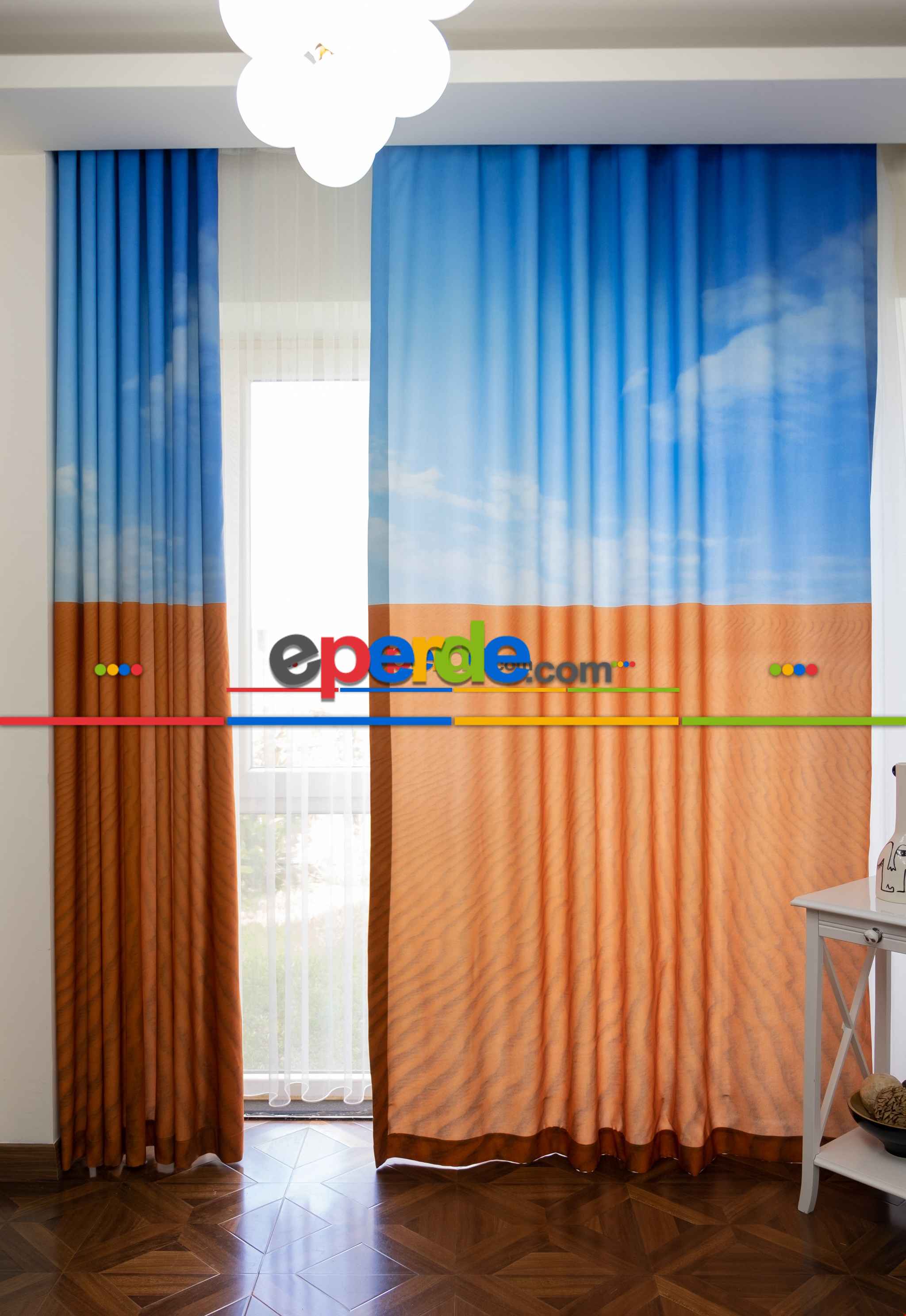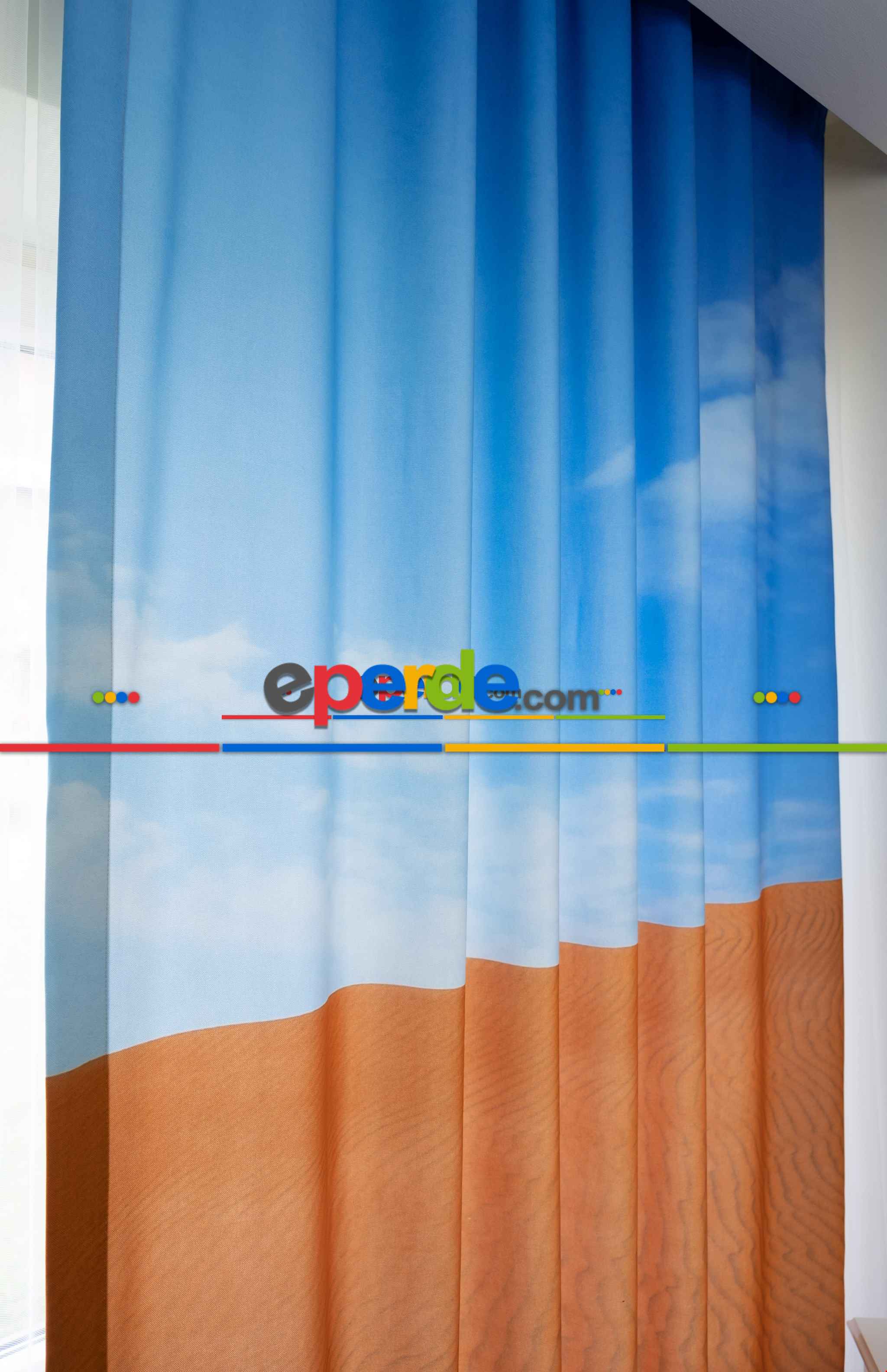 Fransa | Hazır Ölçülü Dökümlü Kumaştan Çöl Ve Gökyüzü Manzaralı Baskılı Pilesiz Fon Perde 1. Kalite » Eperde