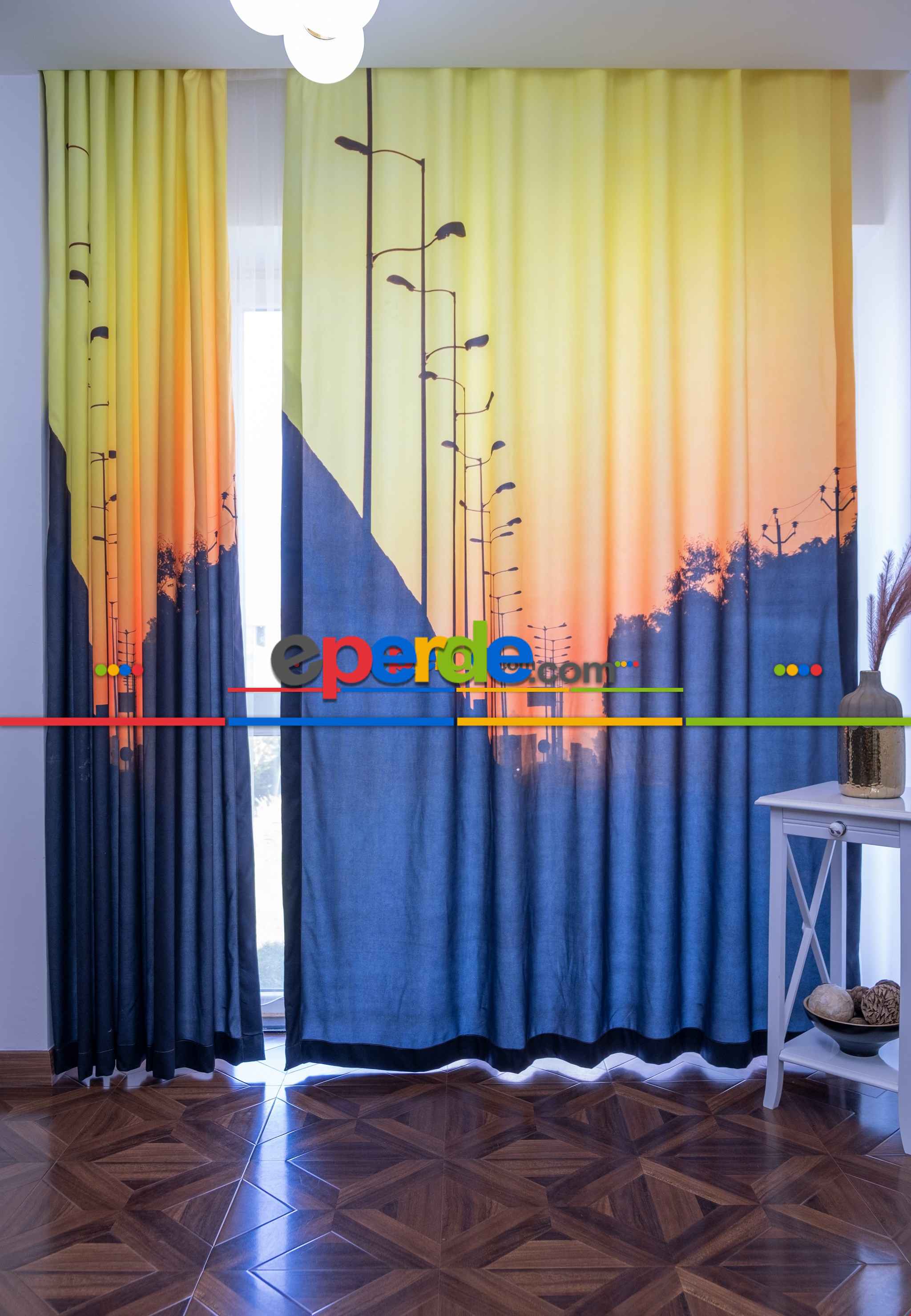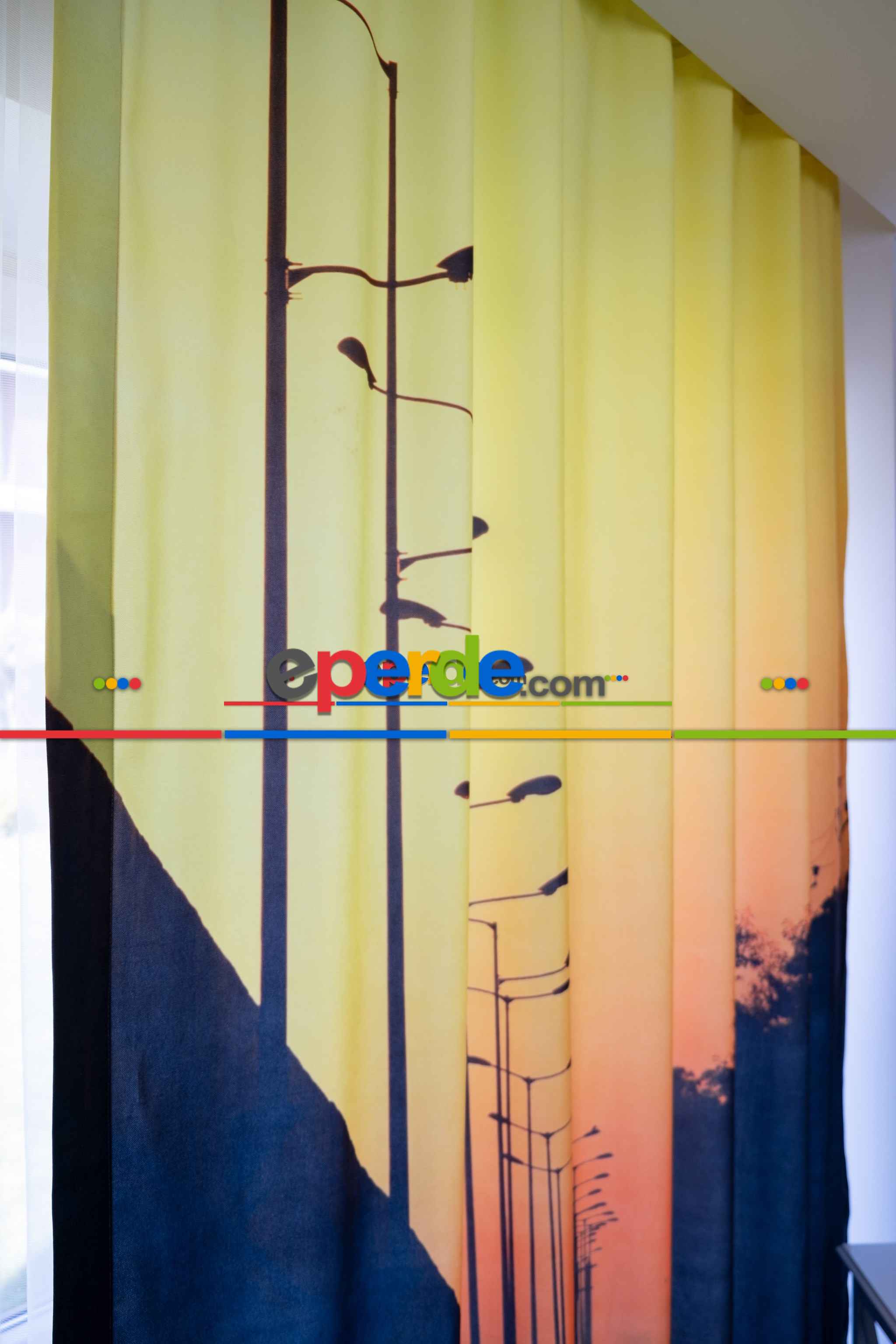 Hazır Ölçülü Dökümlü Kumaştan Gün Batımı Şehir Manzaralı Pilesiz Baskılı Fon Perde 1. Kalite