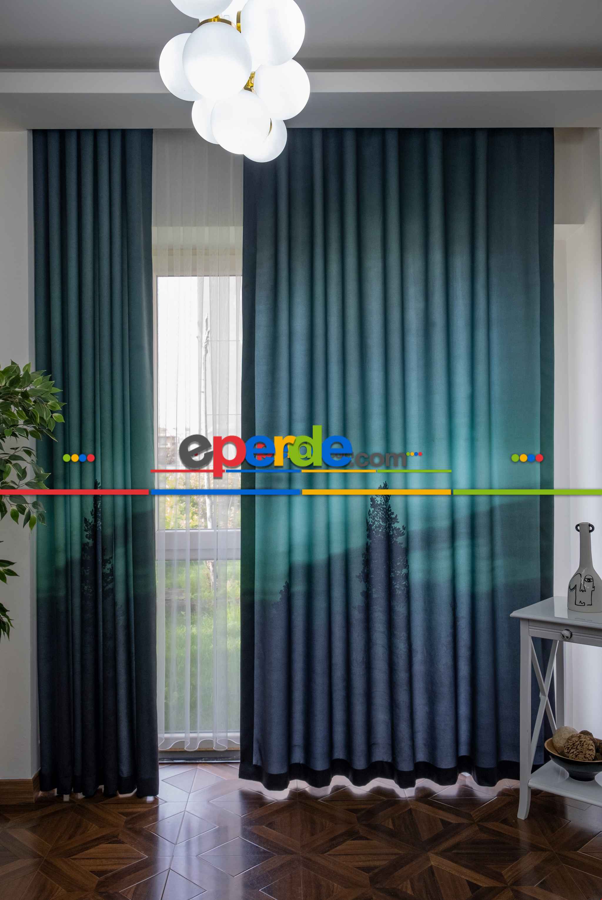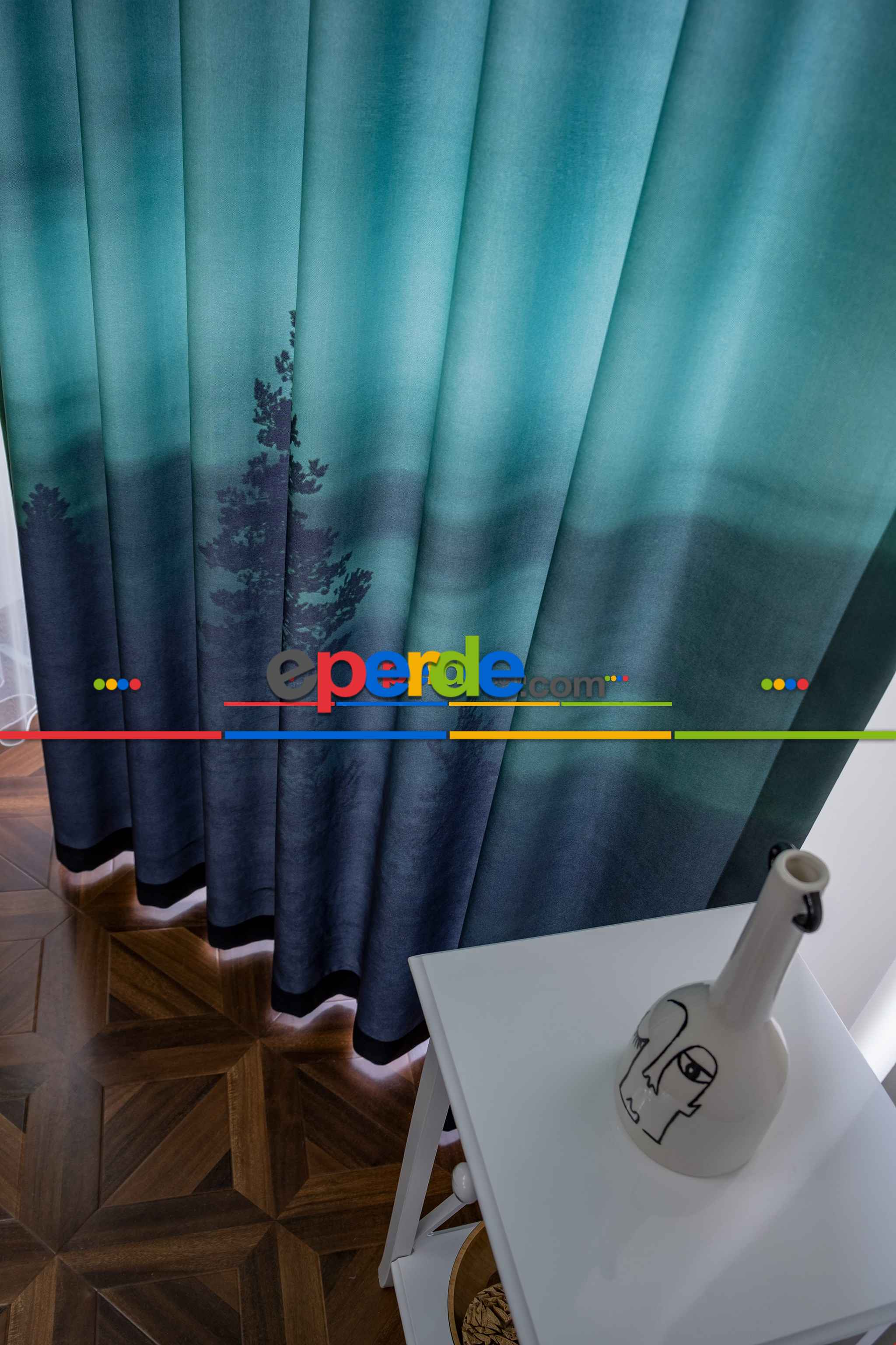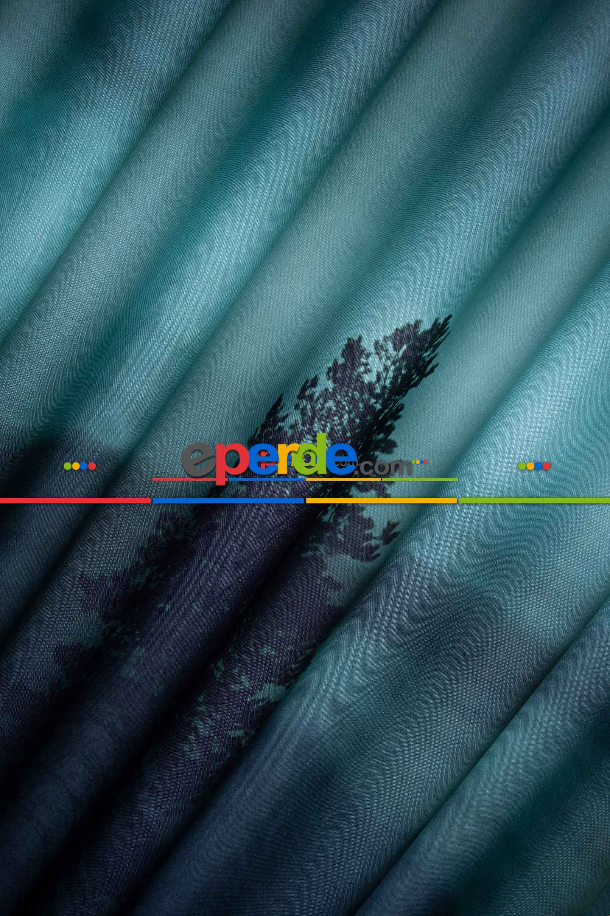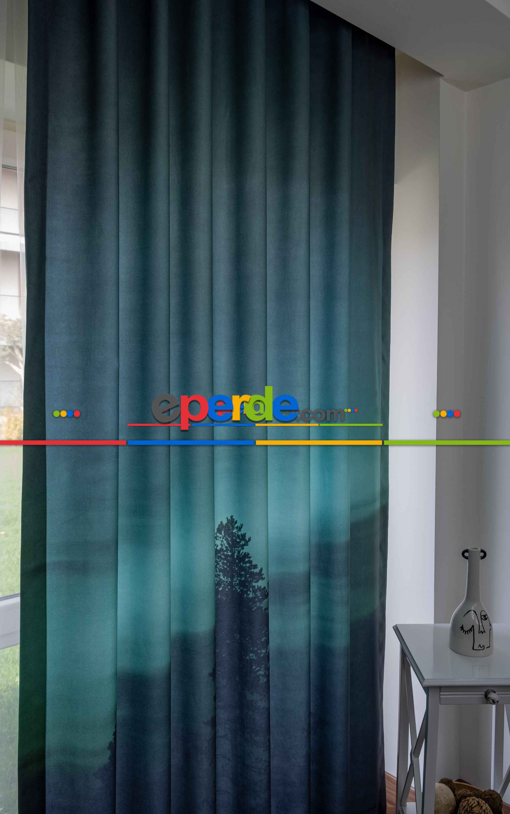 Hazır Ölçülü Dökümlü Kumaştan Kuzey Işıkları Manzaralı Baskılı Pilesiz Fon Perde 1. Kalite