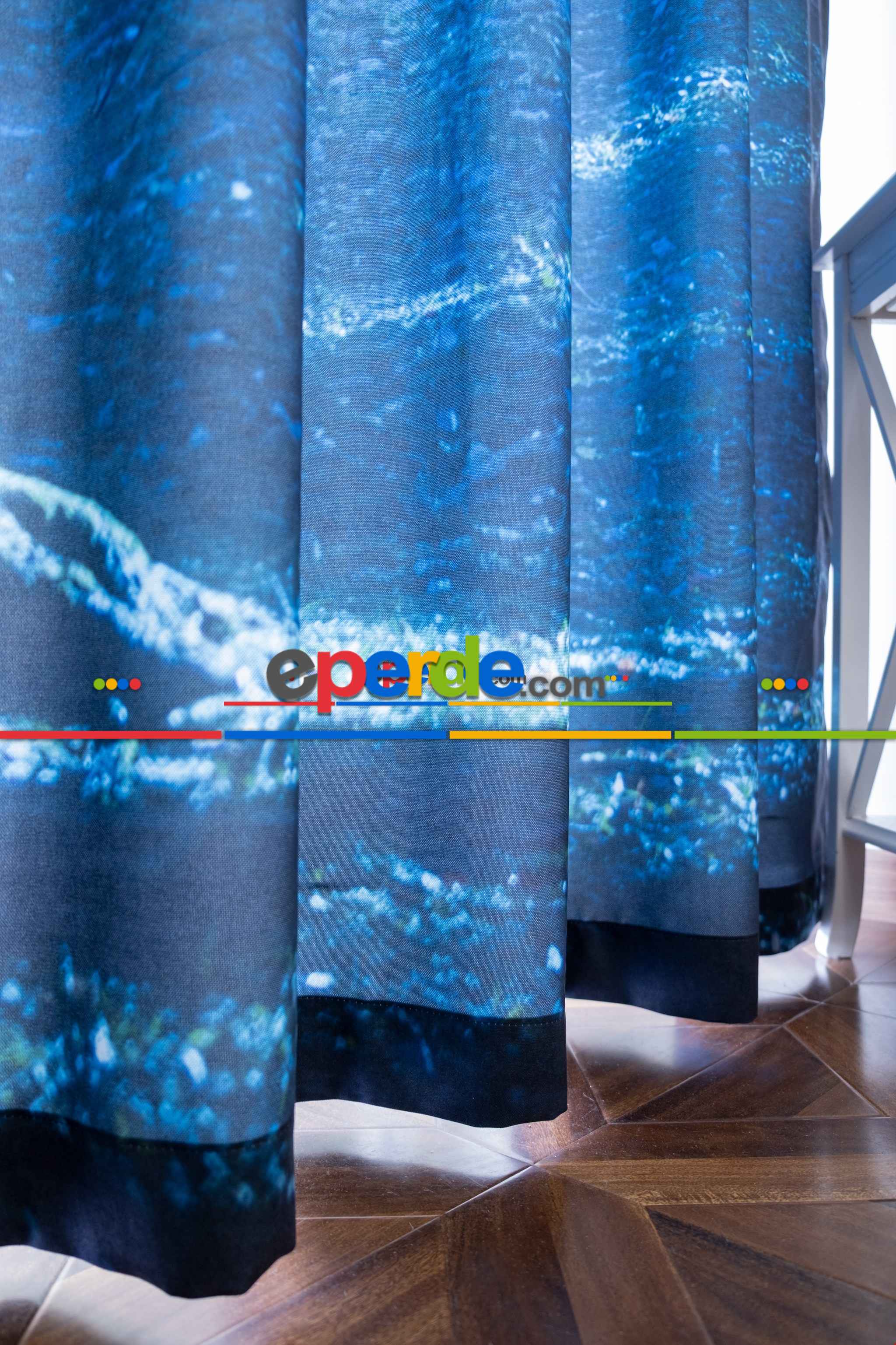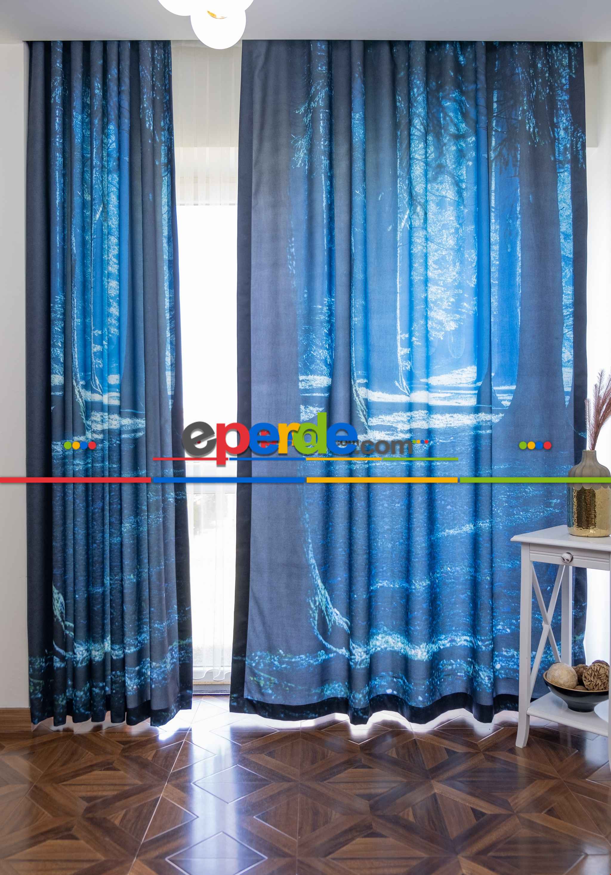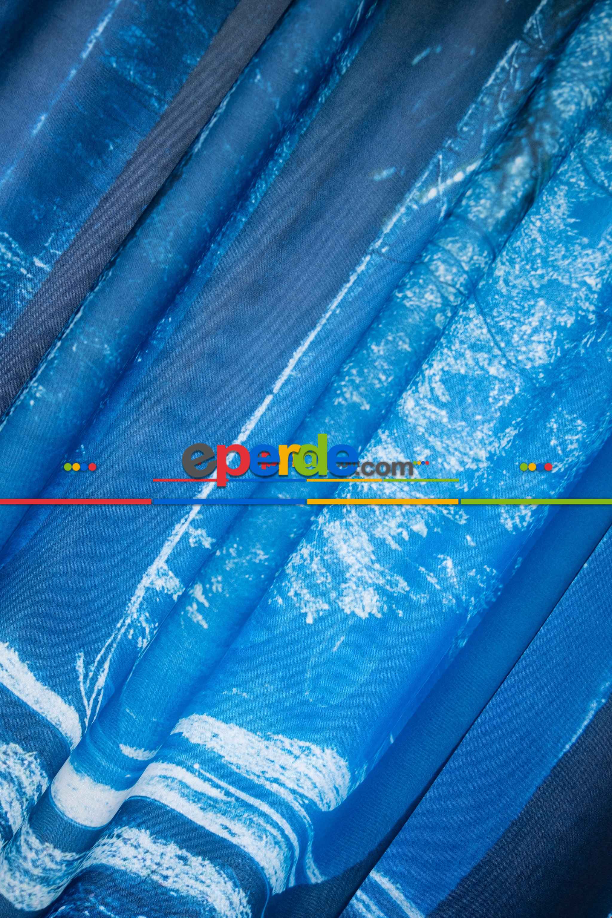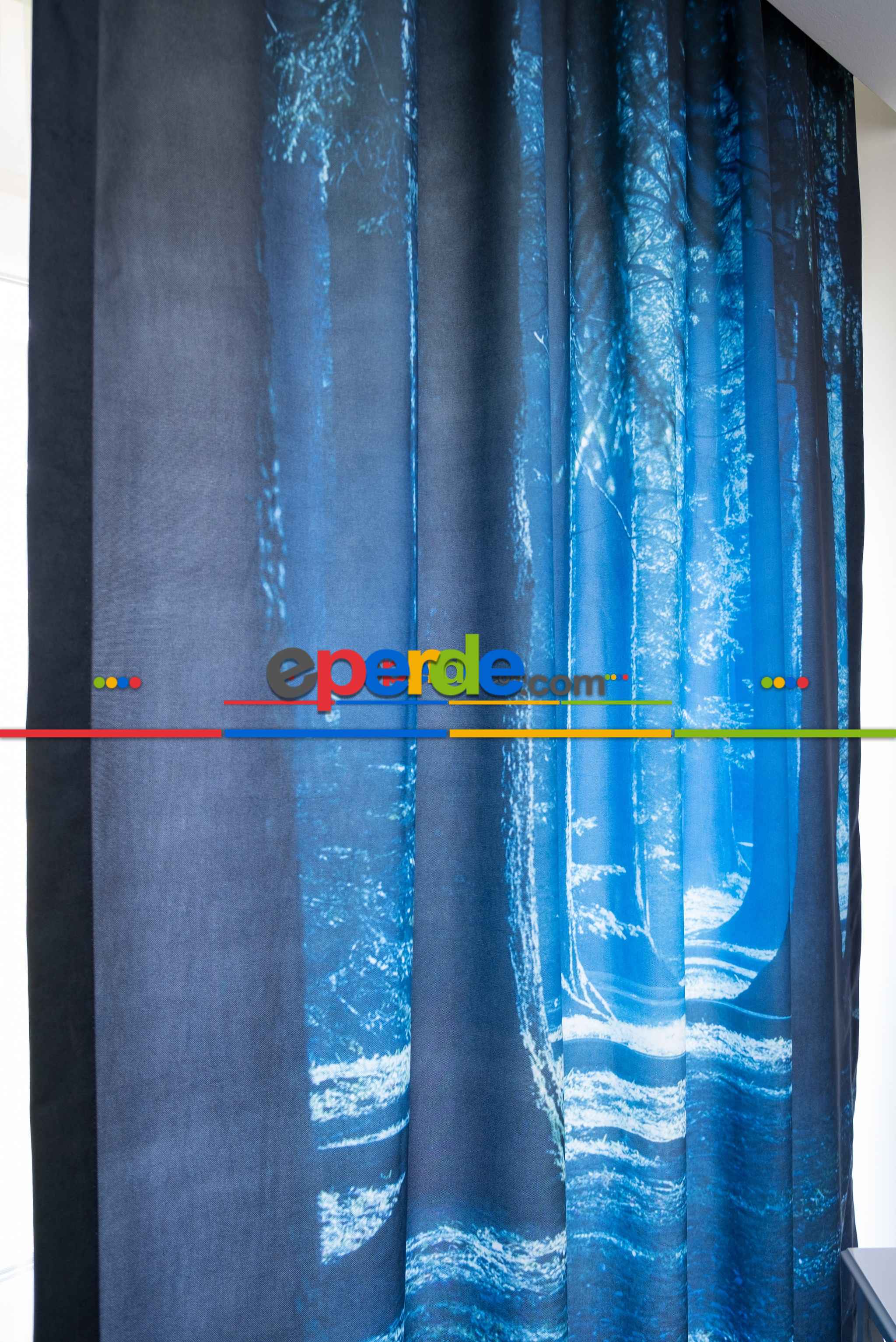 Hazır Ölçülü Dökümlü Kumaştan Orman Manzaralı Baskılı Pilesiz Fon Perde 1. Kalite