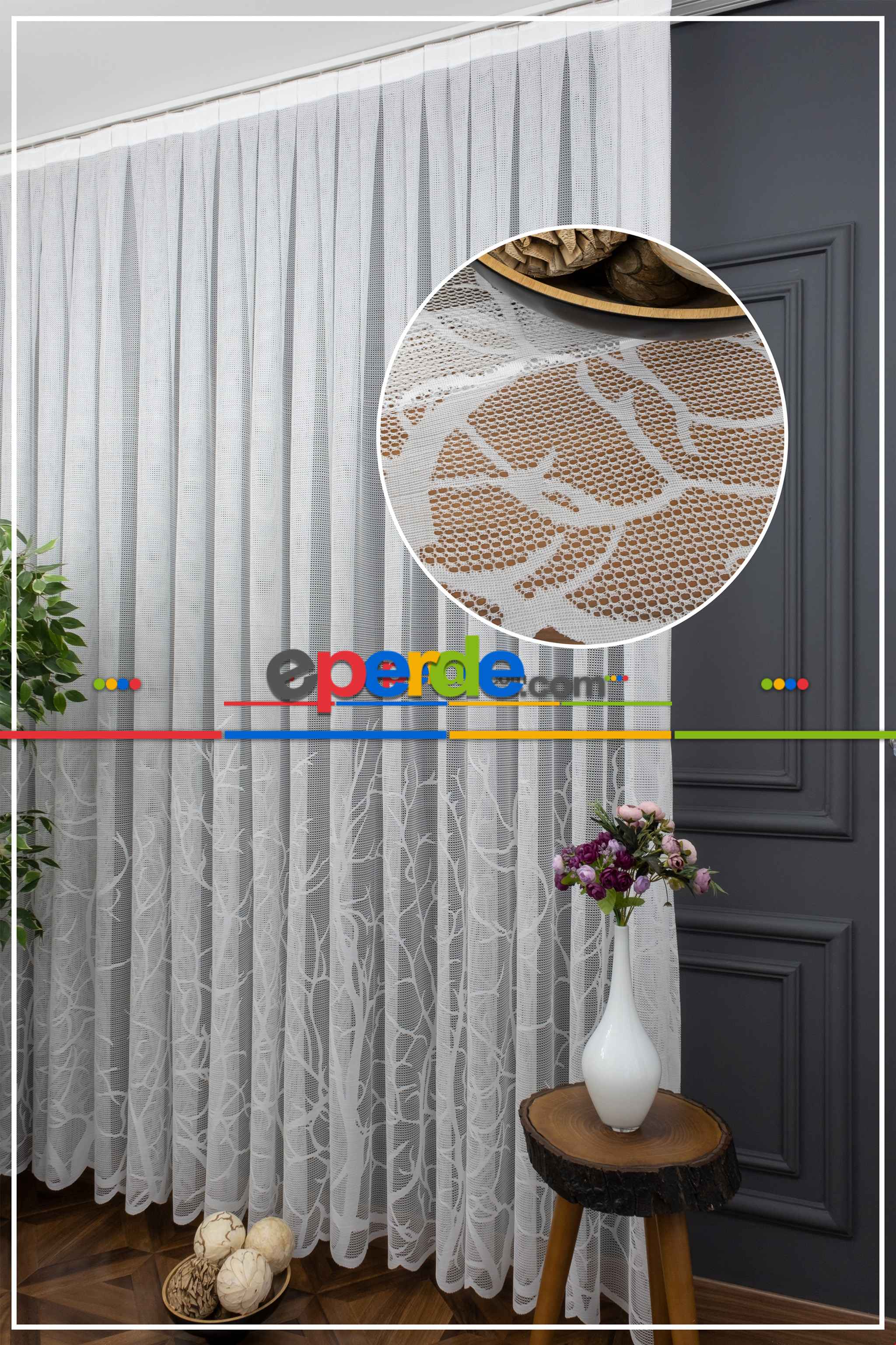 Hazır Ölçülü Eteği Dal Ağaç Desenli Örme Tül - Ekru » Eperde