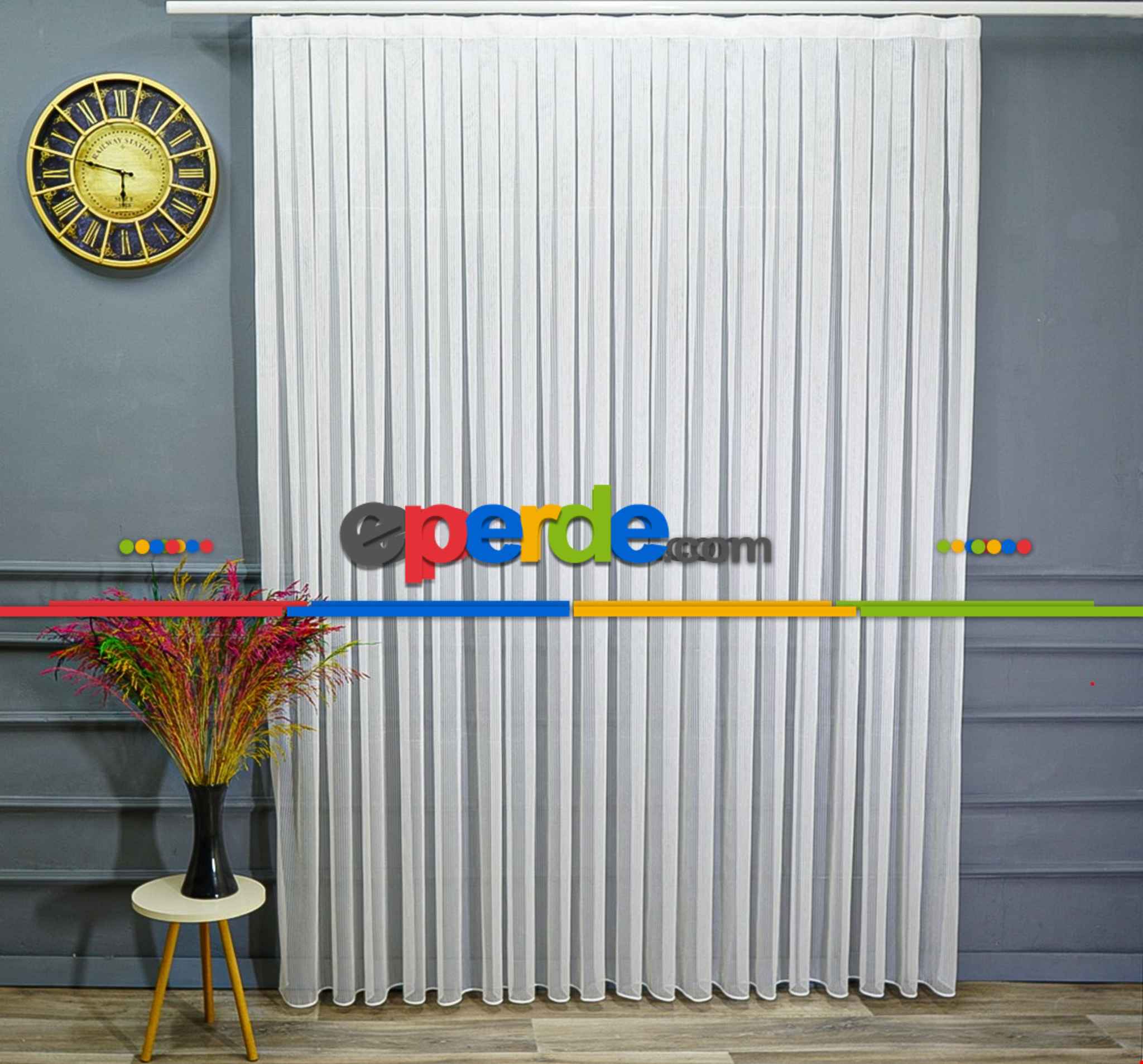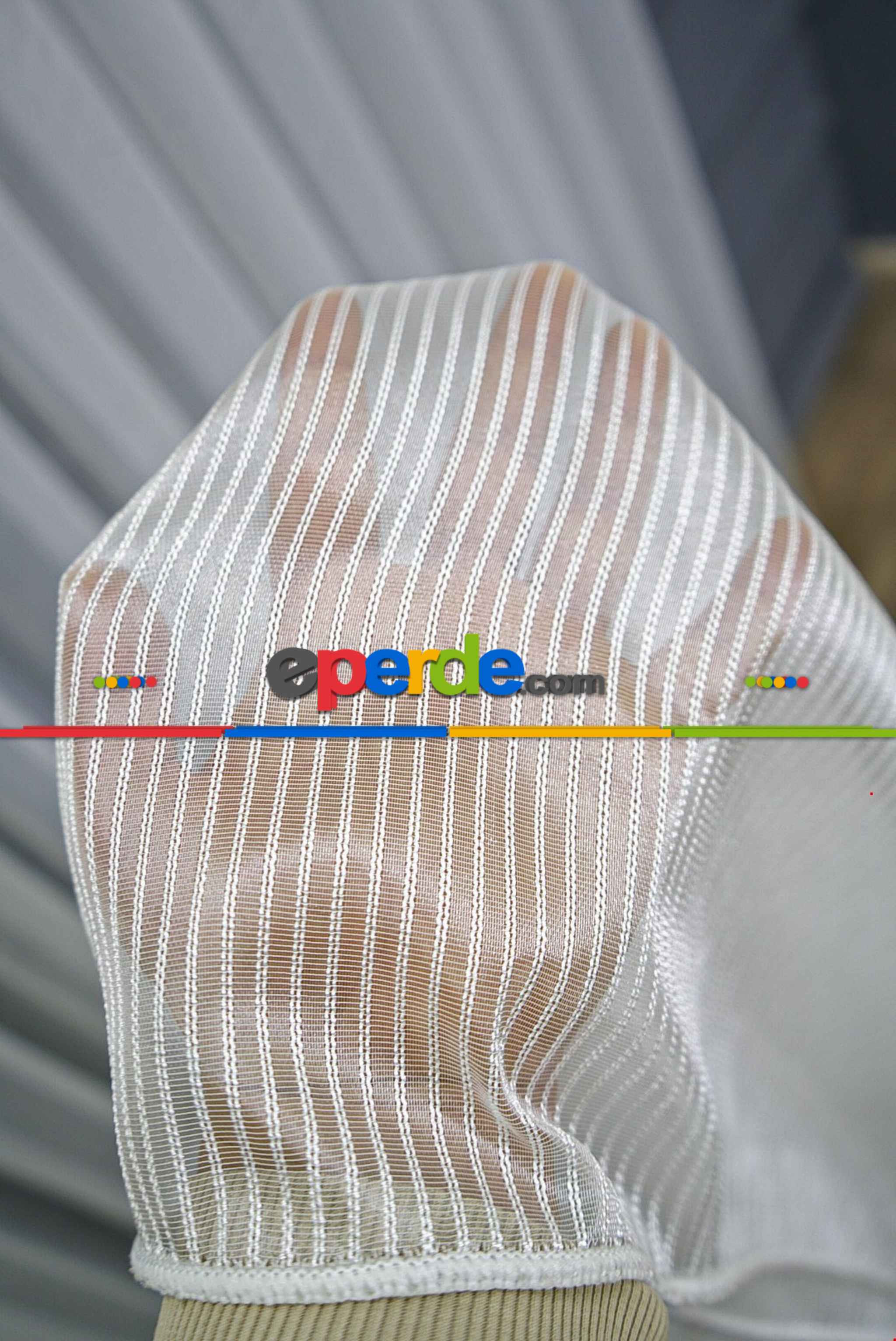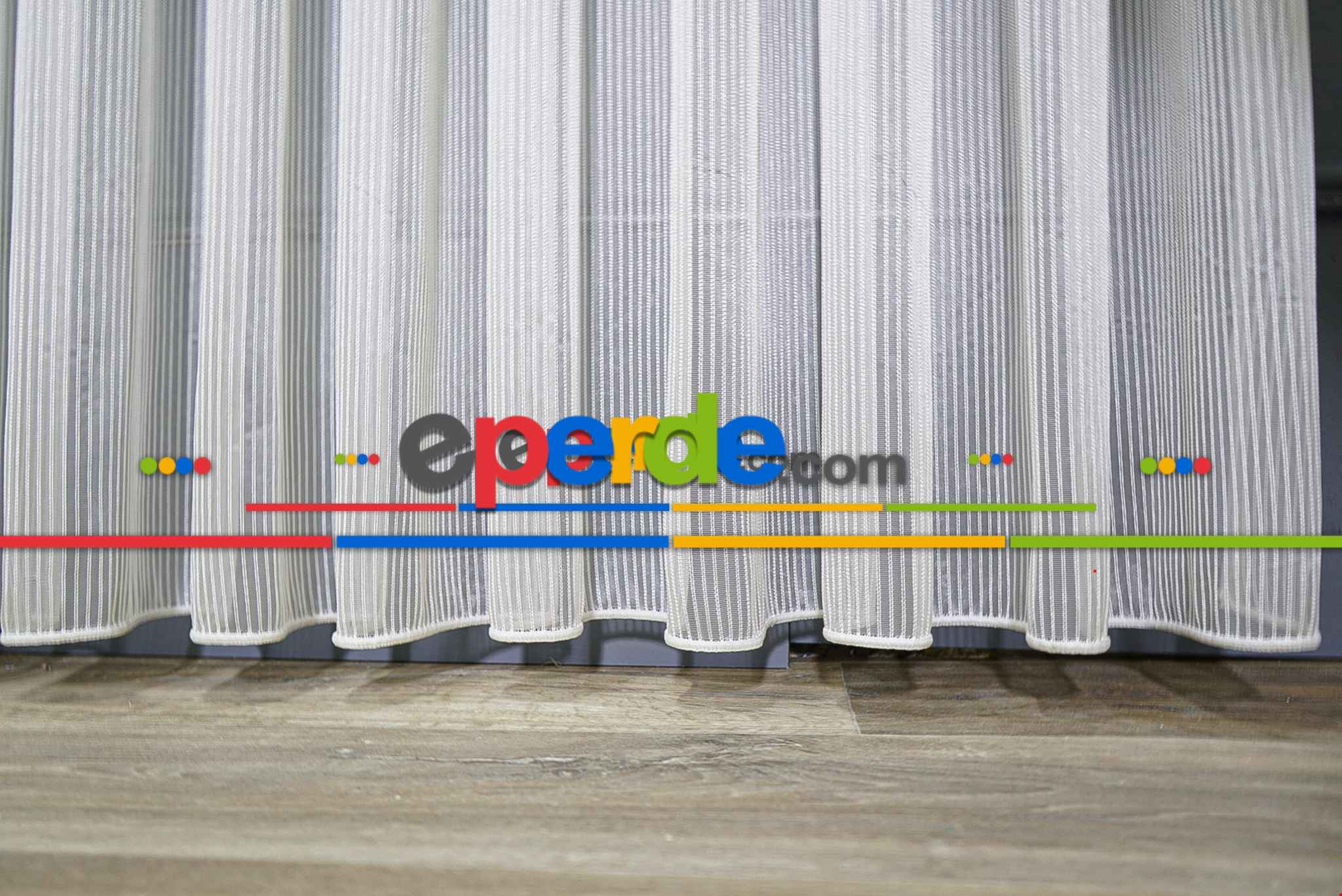 Hazır Ölçülü Fırsat 2023 Trend Çizgili Model Eteği Kurşunlu Tül Perde