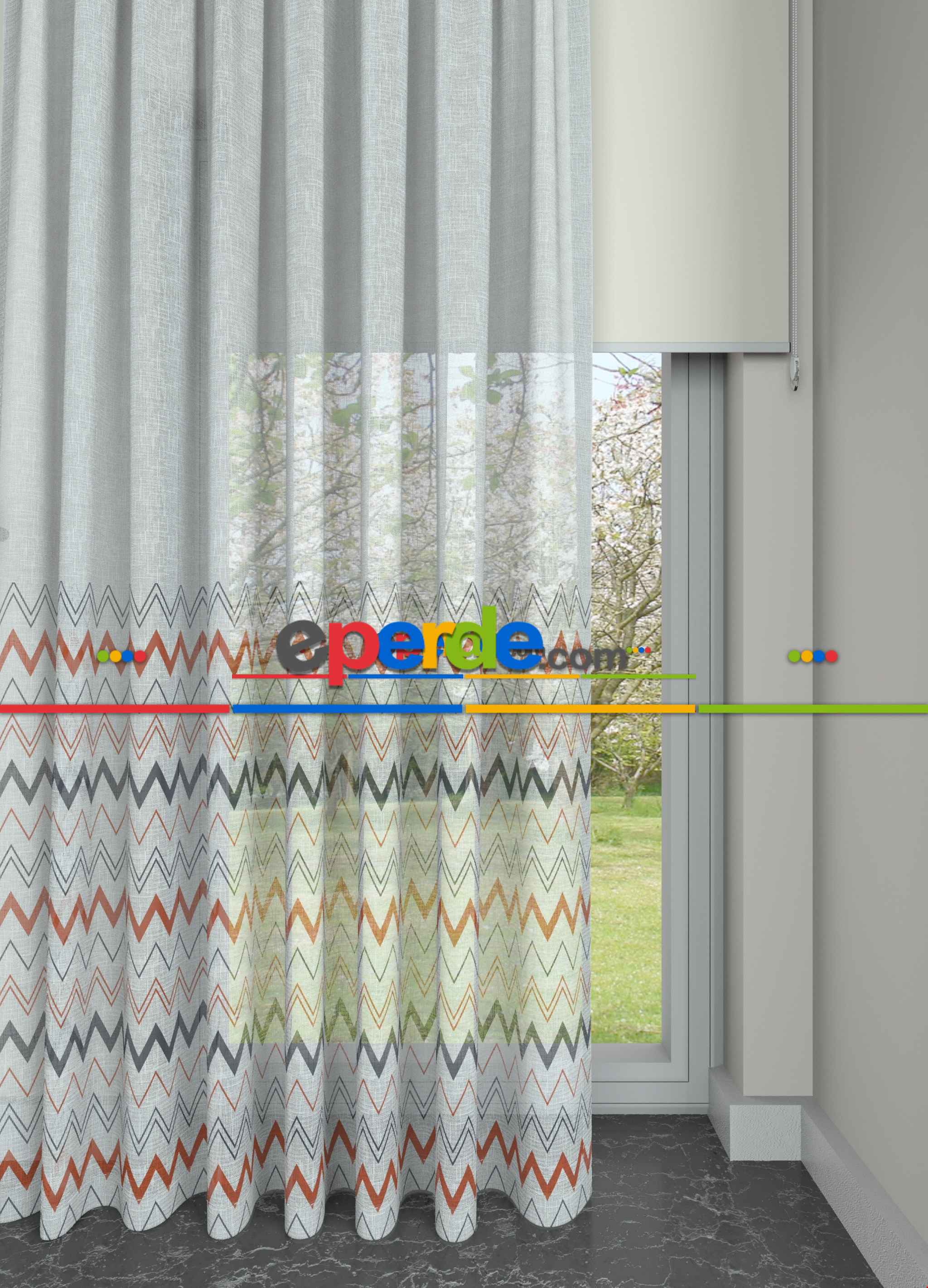 Hazır Ölçülü Genç Odası - Turuncu Mor Zikzak Desenli Keten Zemin Baskılı Tül Perde Ödeme Seçenekleri