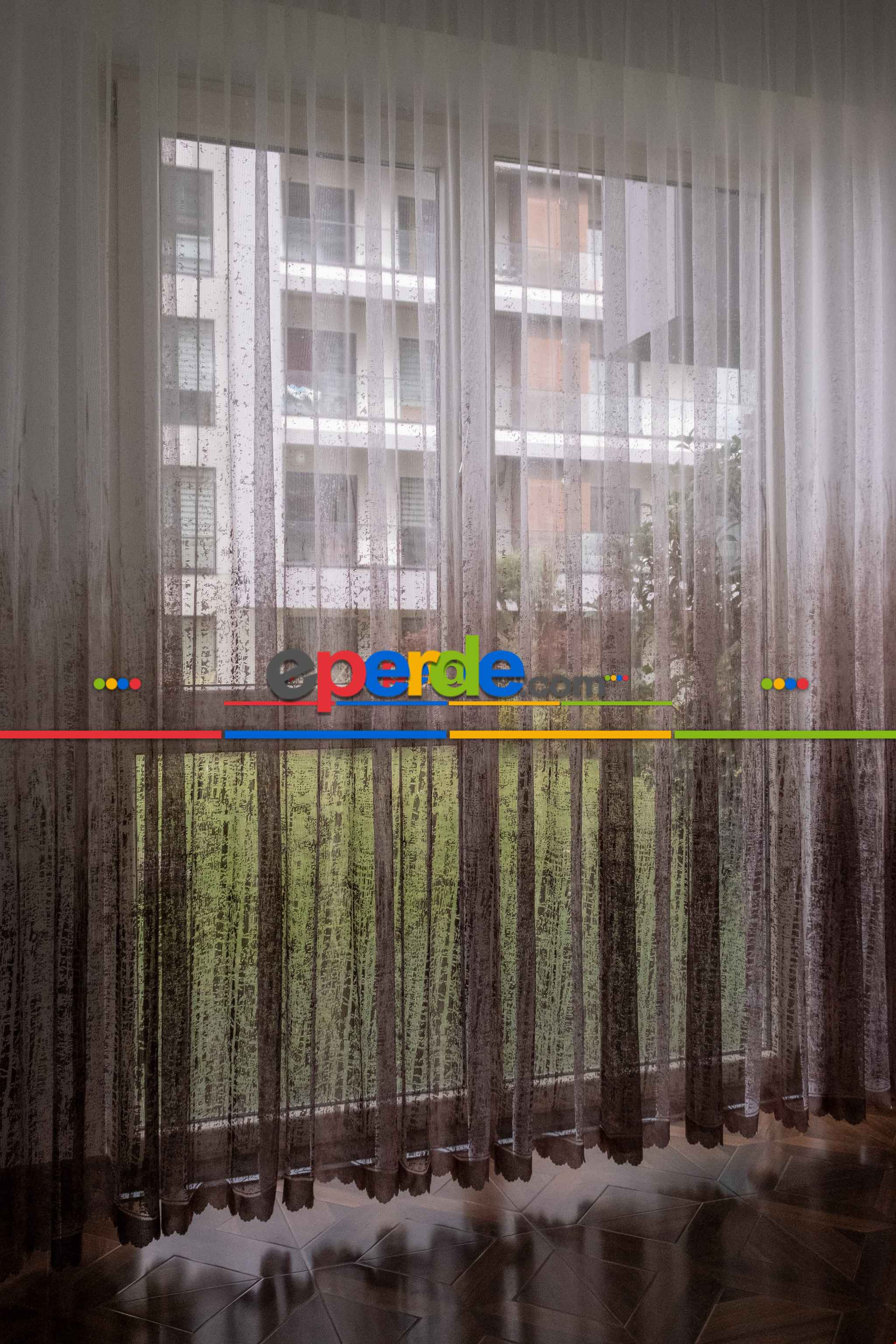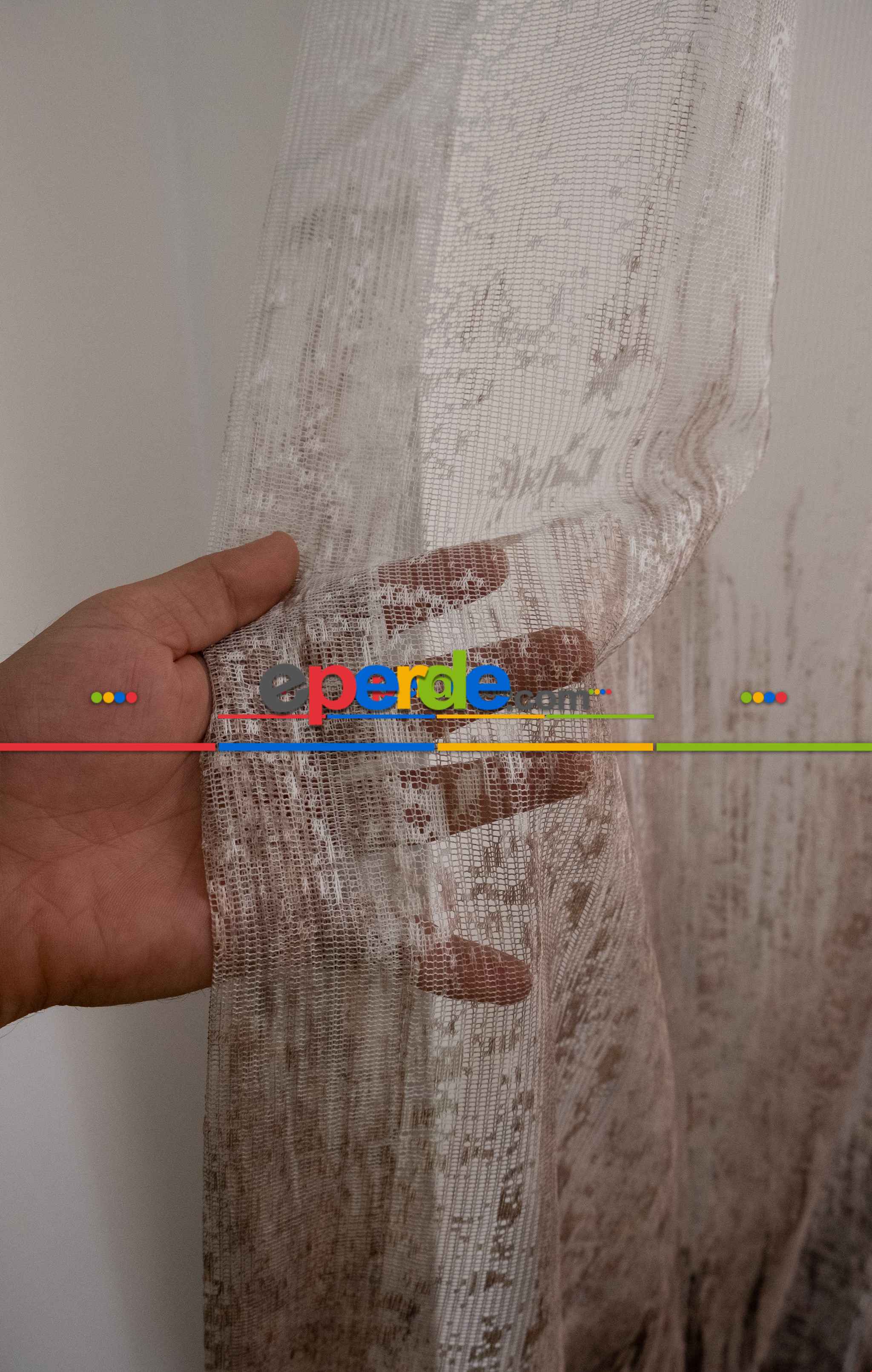 Hazır Ölçülü Modern Koyu Kahverengi Desenli Degrade Geçişli Yüksek Kalite Örme Tül Perde Ürün Açıklaması