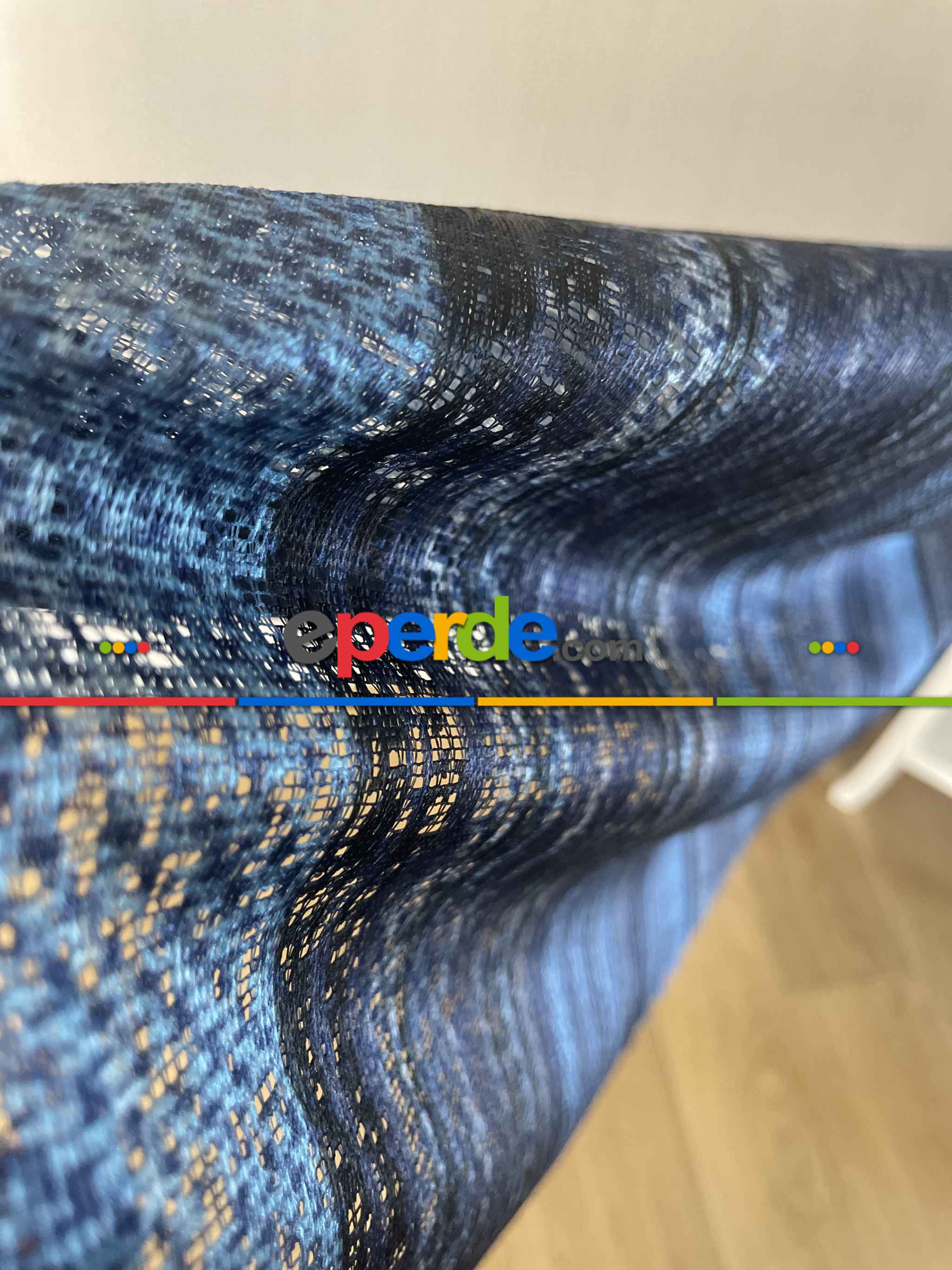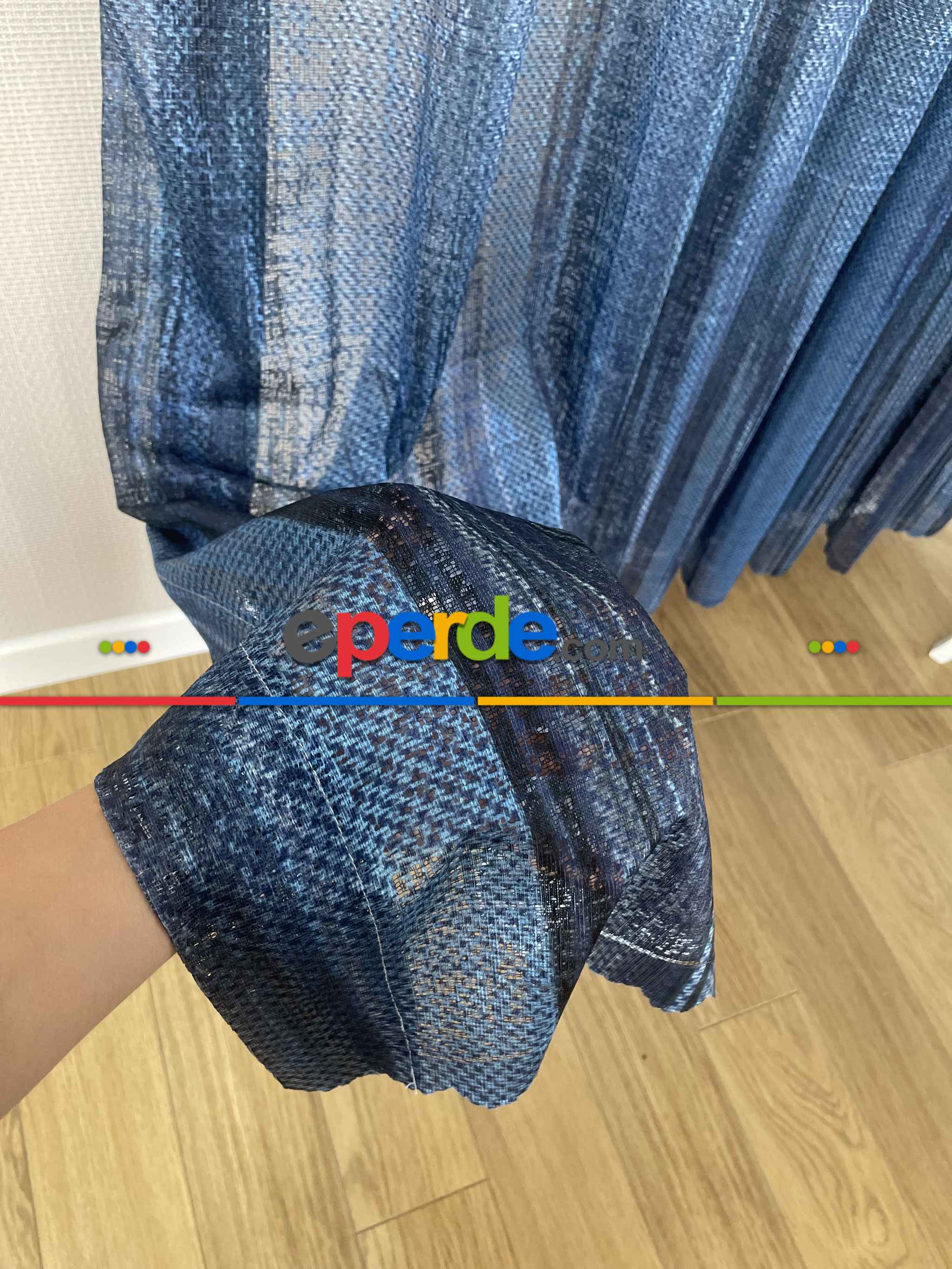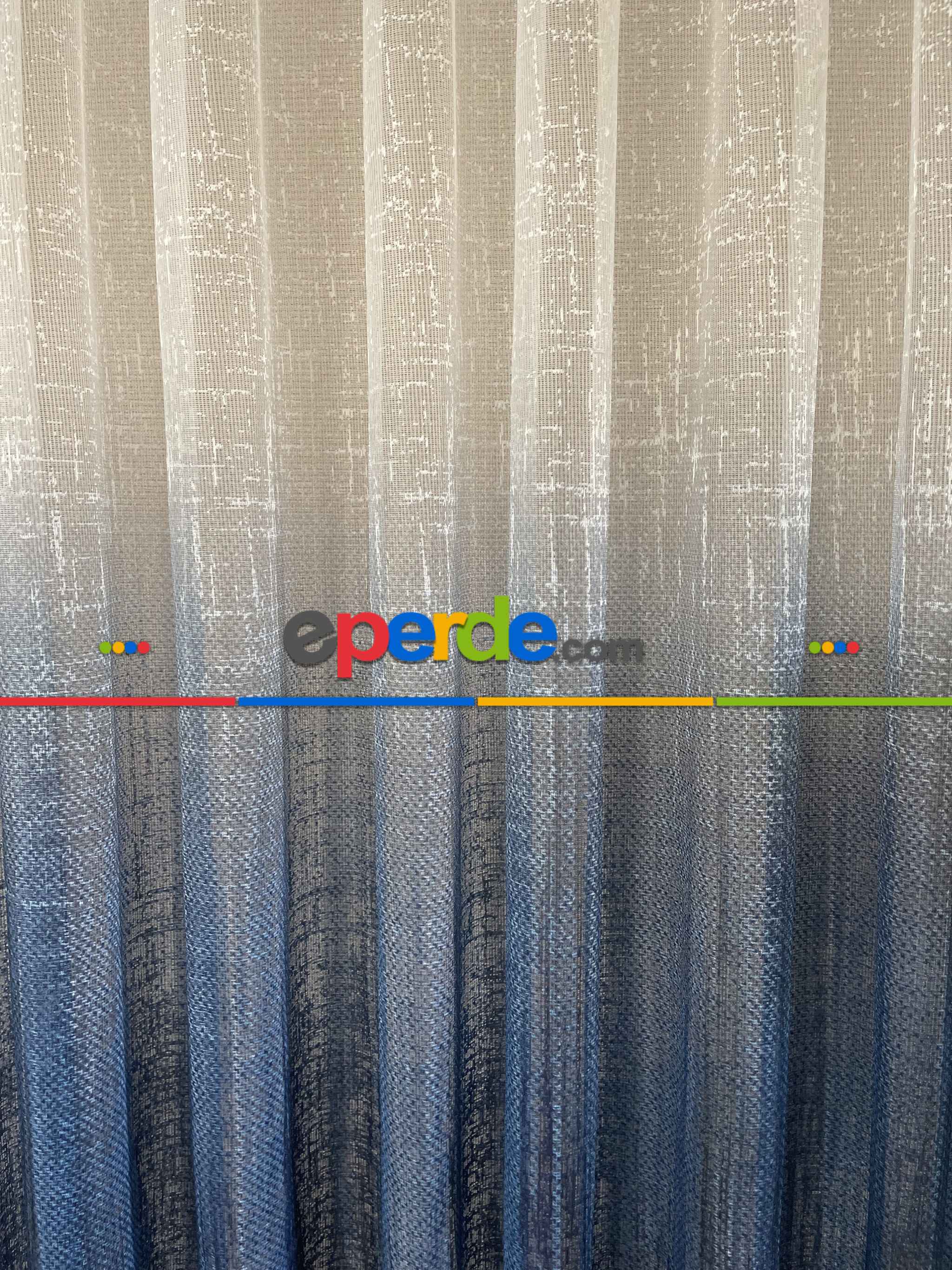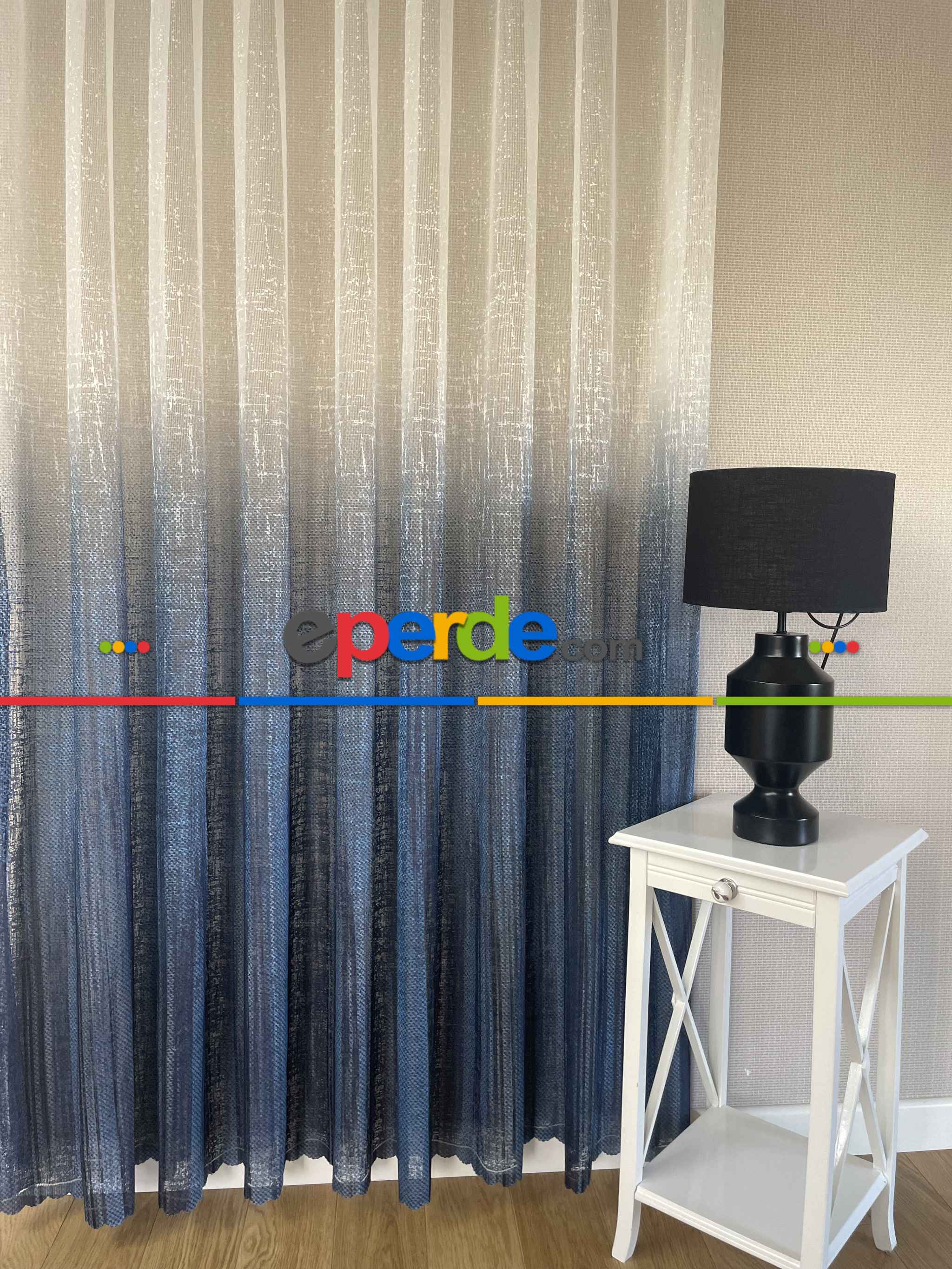 Hazır Ölçülü Normal Pileli Degrade Geçişli Mavi - Lacivert Örme Dokuma Tül Perde (tül Fon Olarakta Tercih Edilebilir) » Eperde