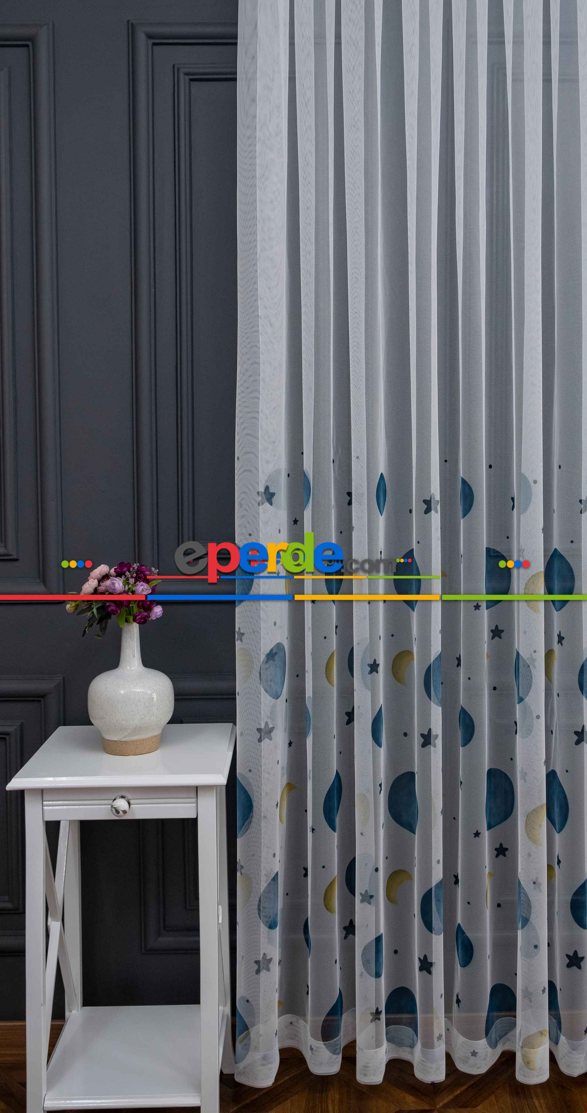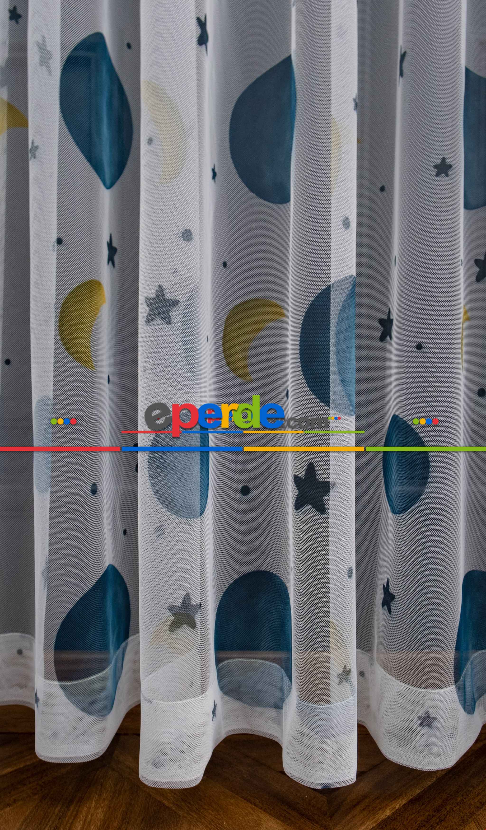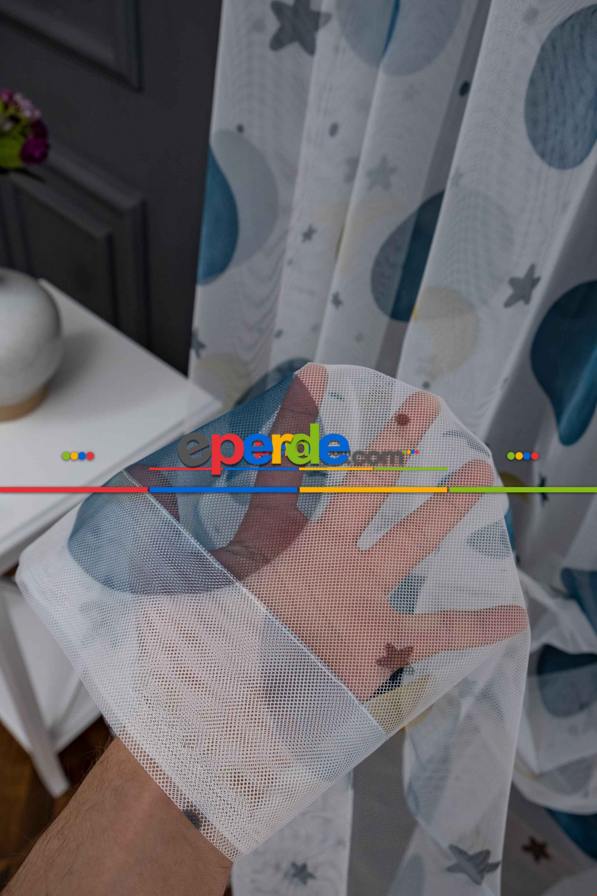 Hazır Ölçülü Petek Zemin Gece Mavisi Ve Sarı Renkli Gezegenler Desenli Grek Baskılı Tül Perde Ödeme Seçenekleri