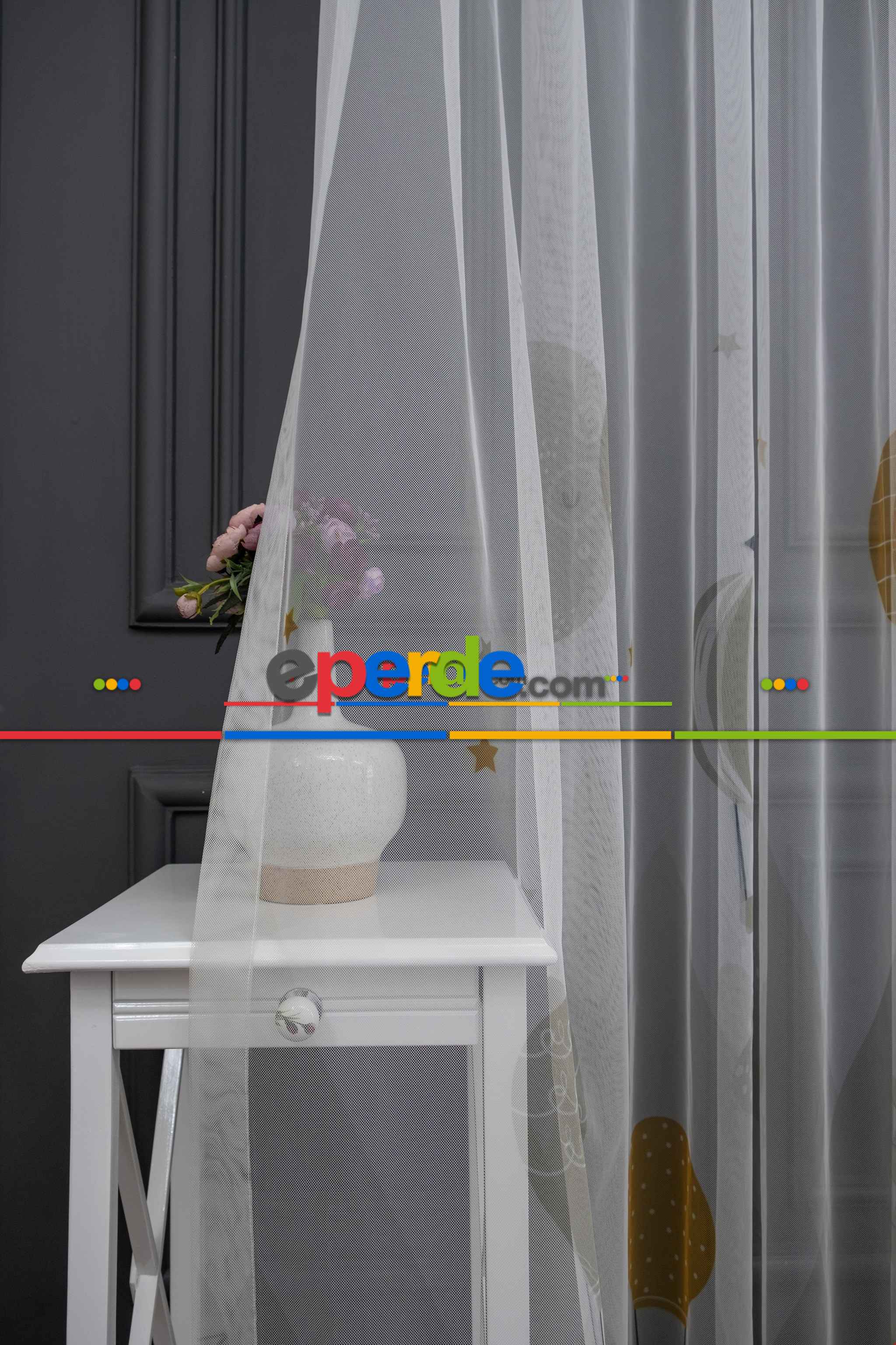 Hazır Ölçülü Petek Zemin Siyah Renkli Gezegenler Desenli Grek Baskılı Tül Perde Hazır Ölçülü Petek Zemin Siyah Renkli Gezegenler Desenli Grek Baskılı Tül Perde