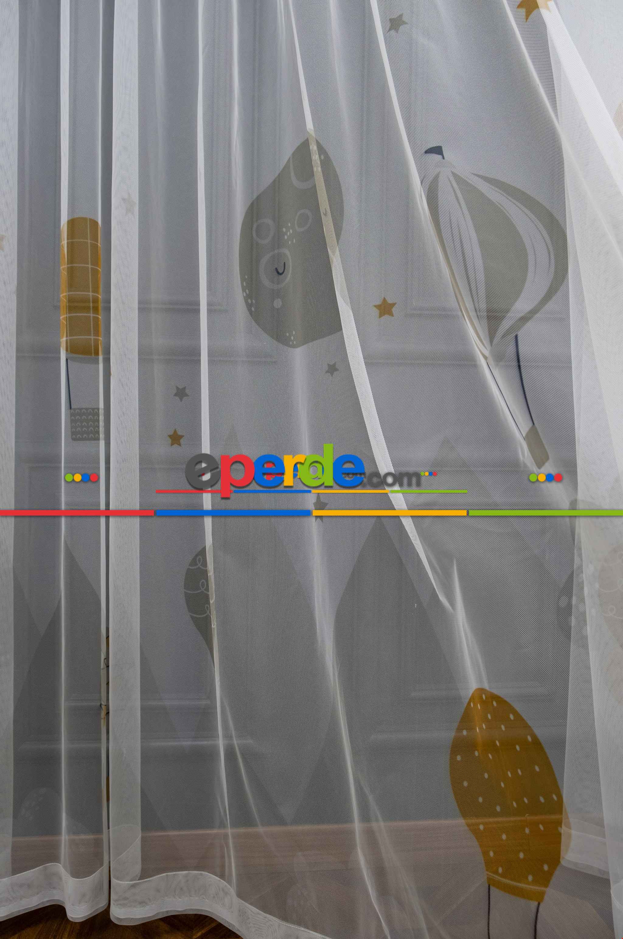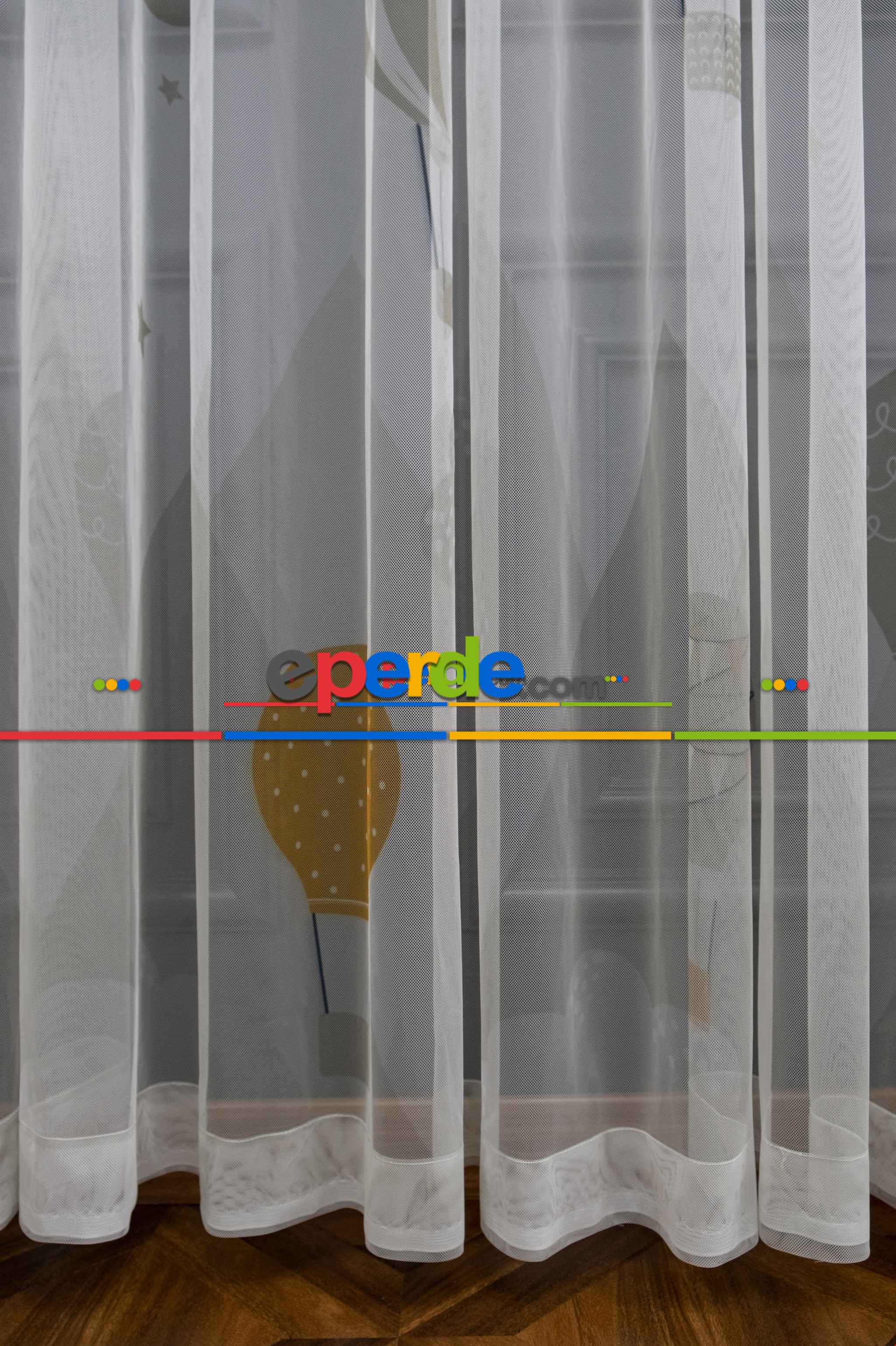 Erkek Çocuk Odası Tül Perde - Petek Zemin Mavi Turuncu Renkli Uçan Balon Desenli Grek Baskılı Tül Perde Erkek Çocuk Odası Tül Perde - Petek Zemin Mavi Turuncu Renkli Uçan Balon Desenli Grek Baskılı Tül Perde
