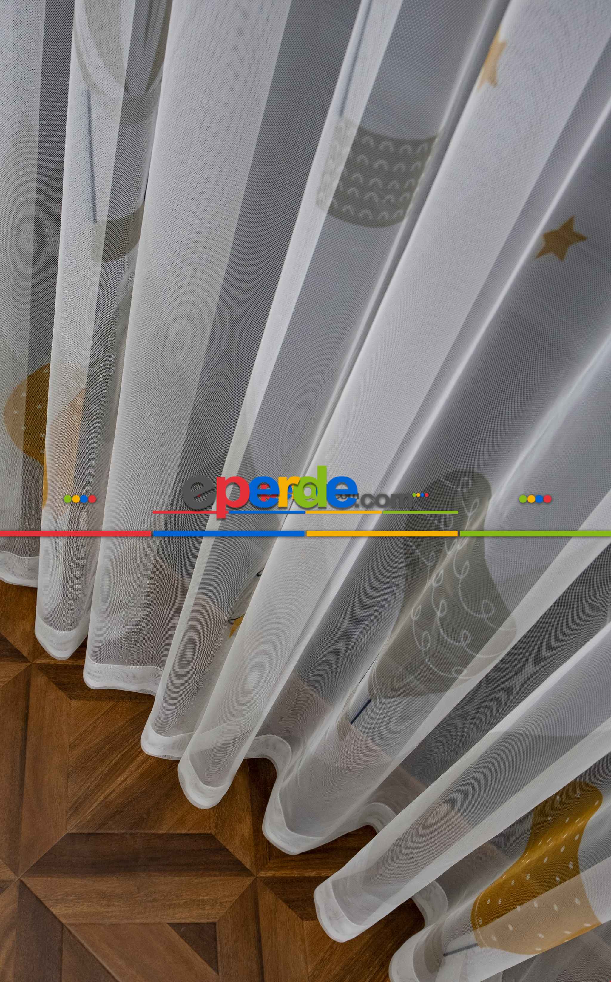 Hazır Ölçülü Petek Zemin Hardal Ve Krem Renkli Balon Desenli Grek Baskılı Tül Perde » Eperde