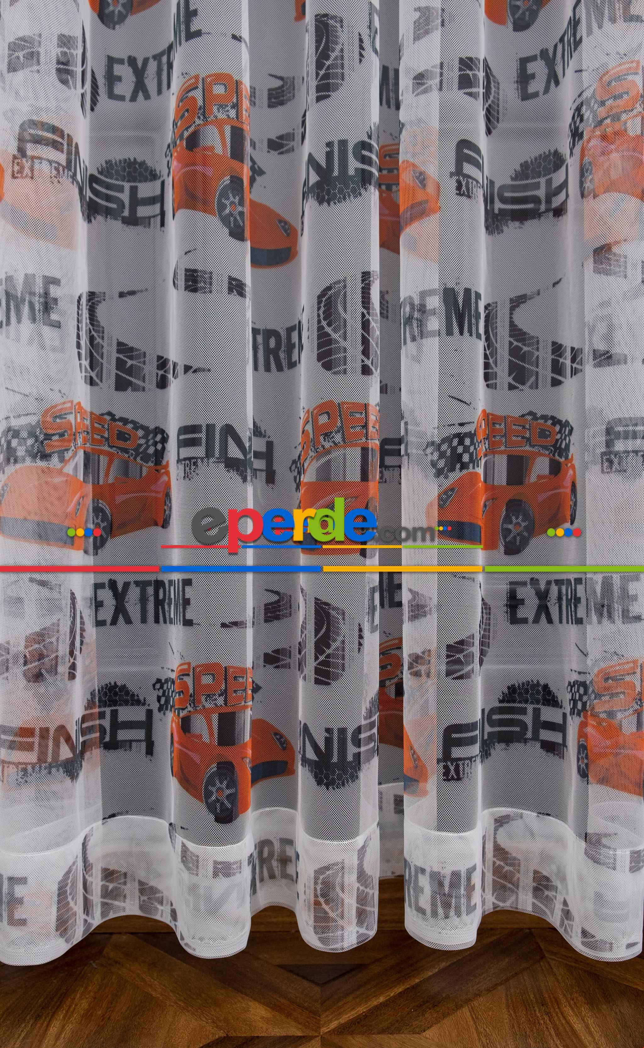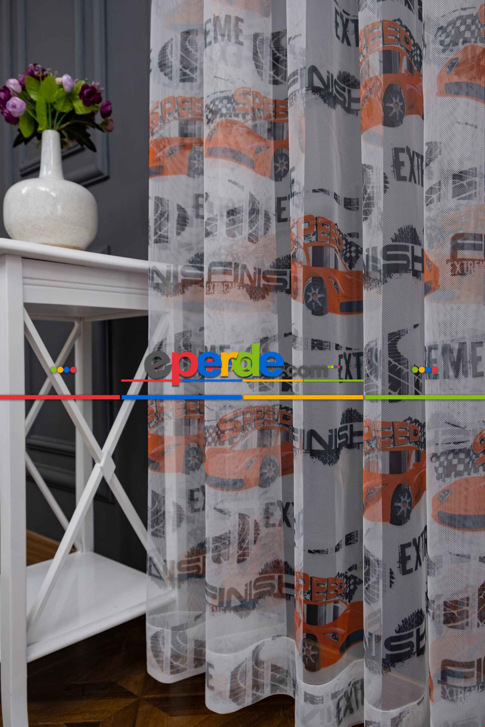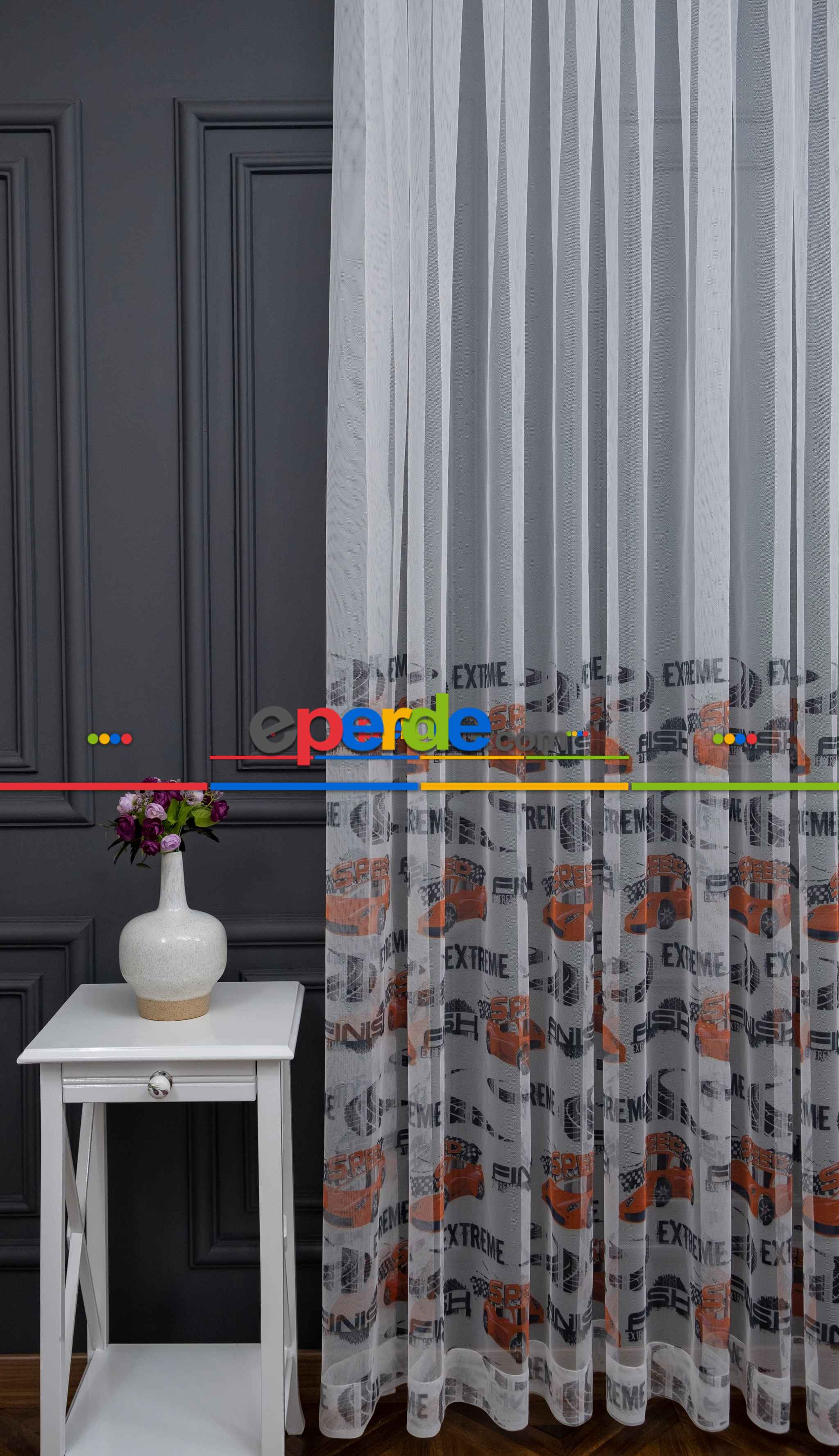 Hazır Ölçülü Petek Zemin Kırmızı Renkli Araba Desenli Grek Baskılı Tül Perde Ödeme Seçenekleri