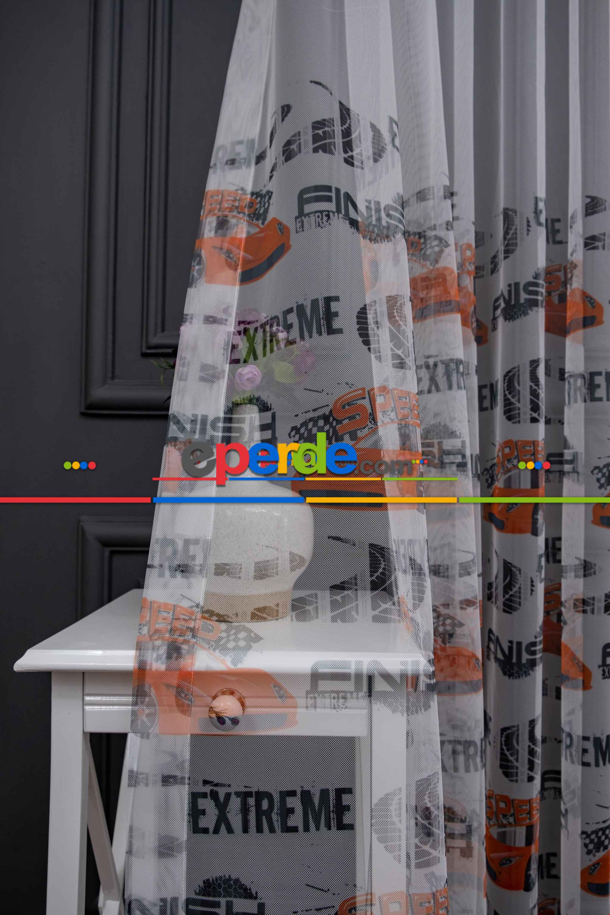 Hazır Ölçülü Petek Zemin Kırmızı Renkli Araba Desenli Grek Baskılı Tül Perde » Eperde