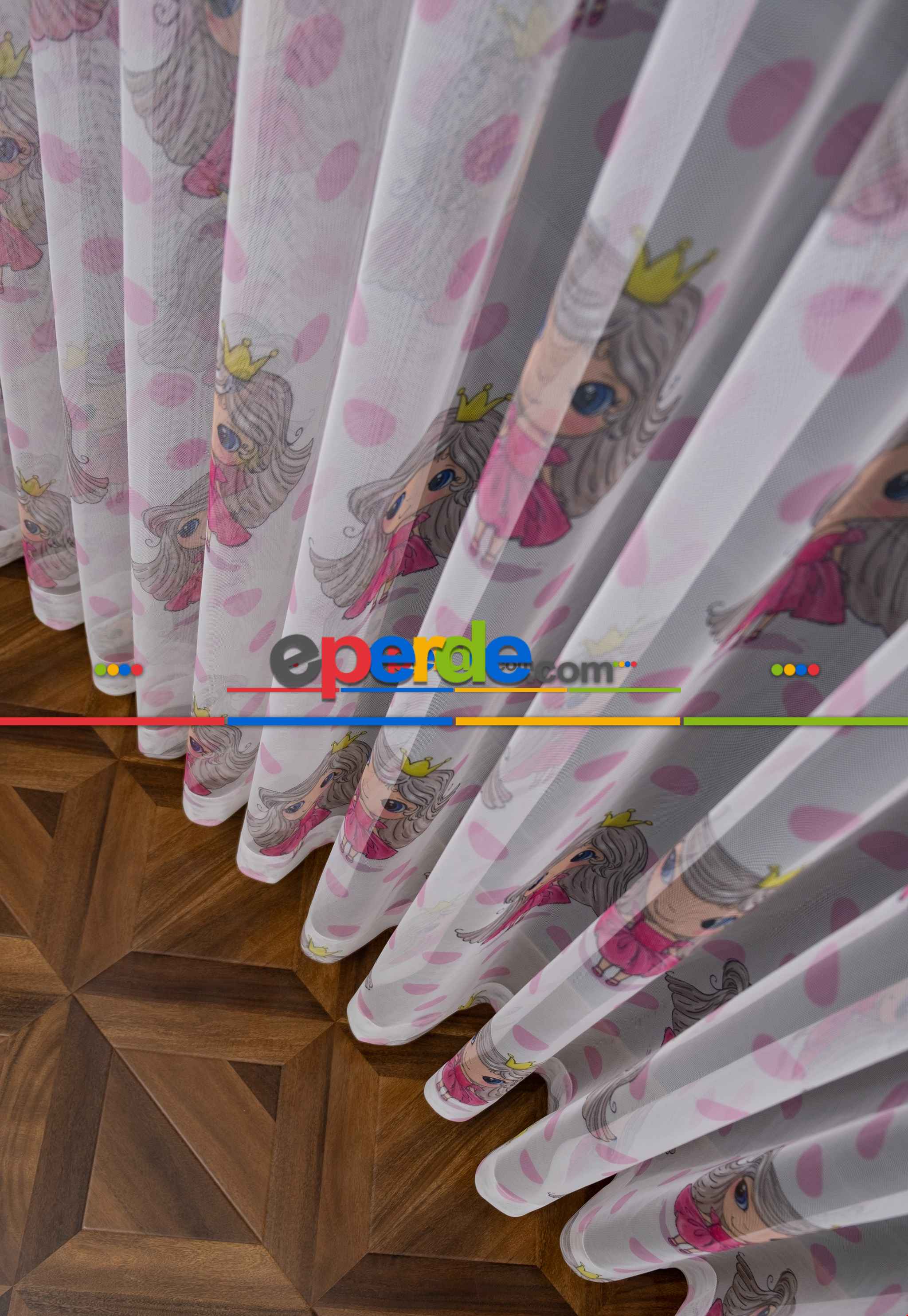 Hazır Ölçülü Petek Zemin Pembe Renkli Prenses Desenli Grek Baskılı Tül Perde Ödeme Seçenekleri