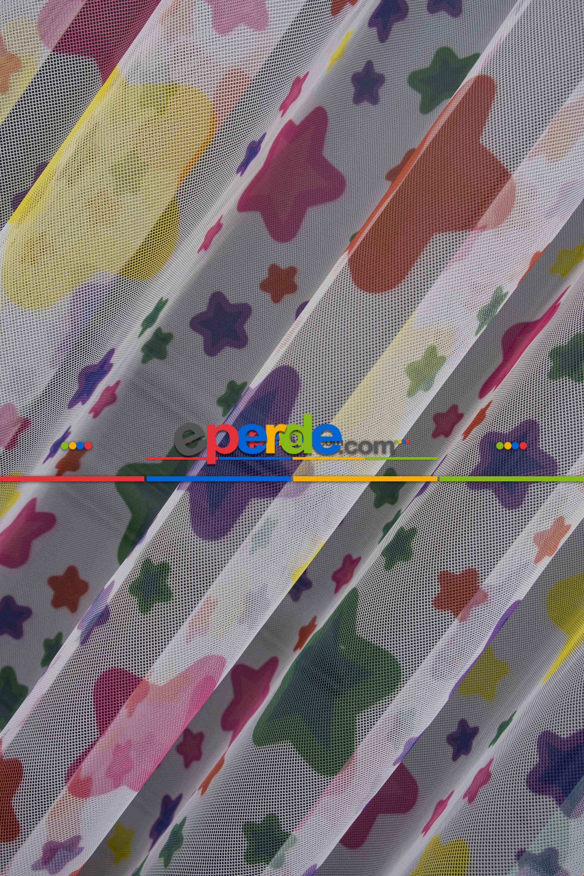 KKTC | Hazır Ölçülü Petek Zemin Renkli Yıldızlar Desenli Grek Baskılı Tül Perde » Eperde