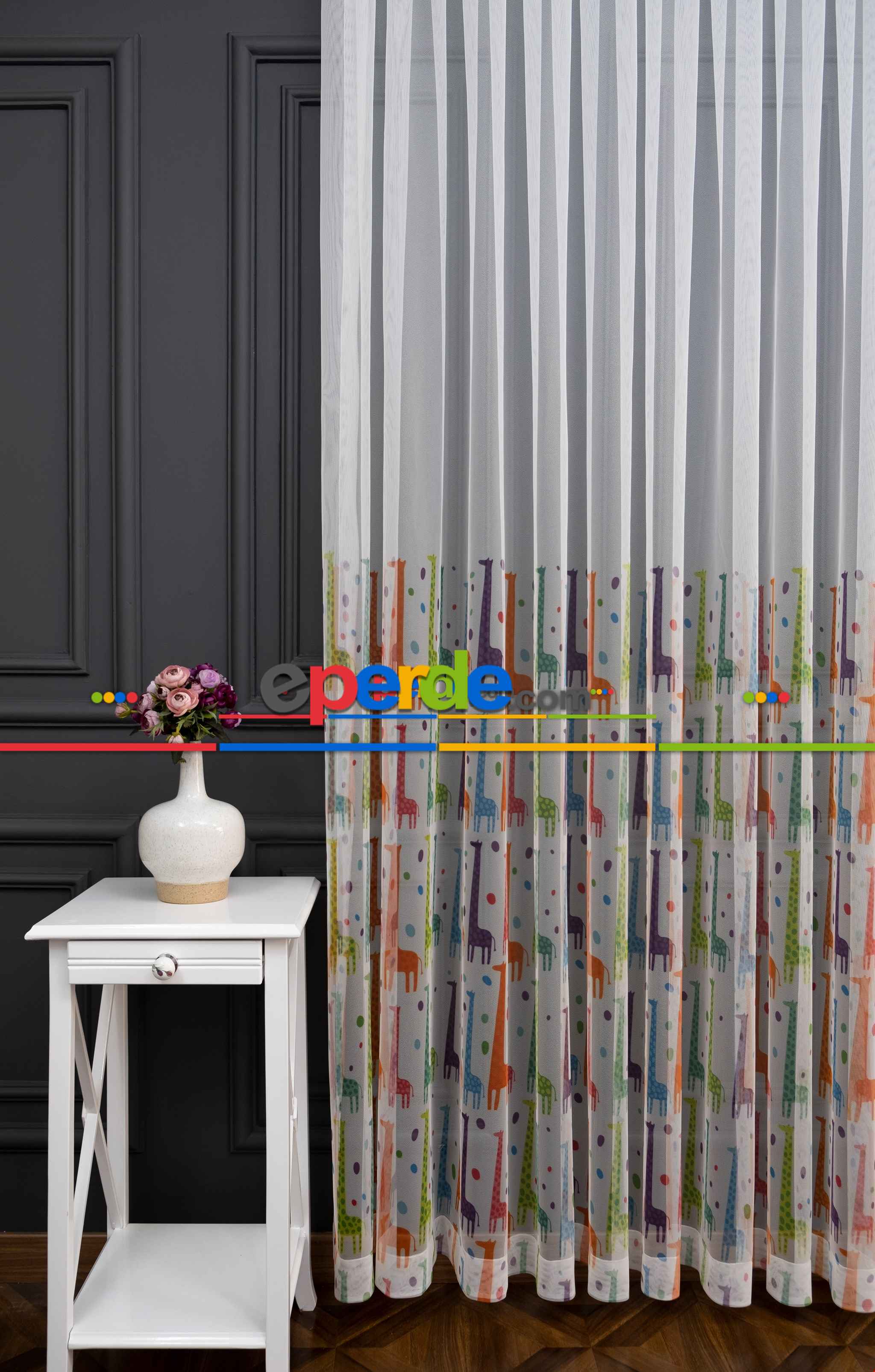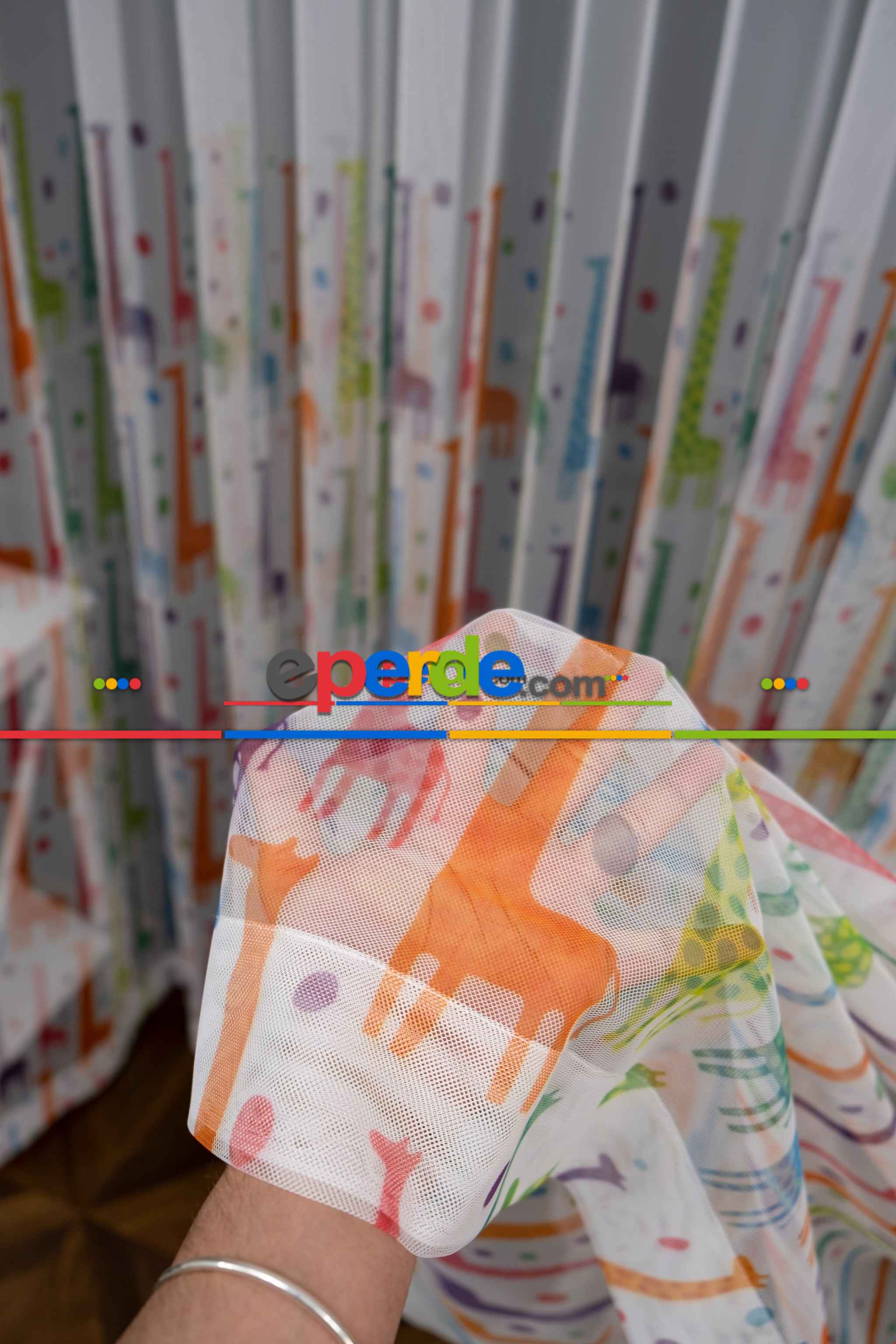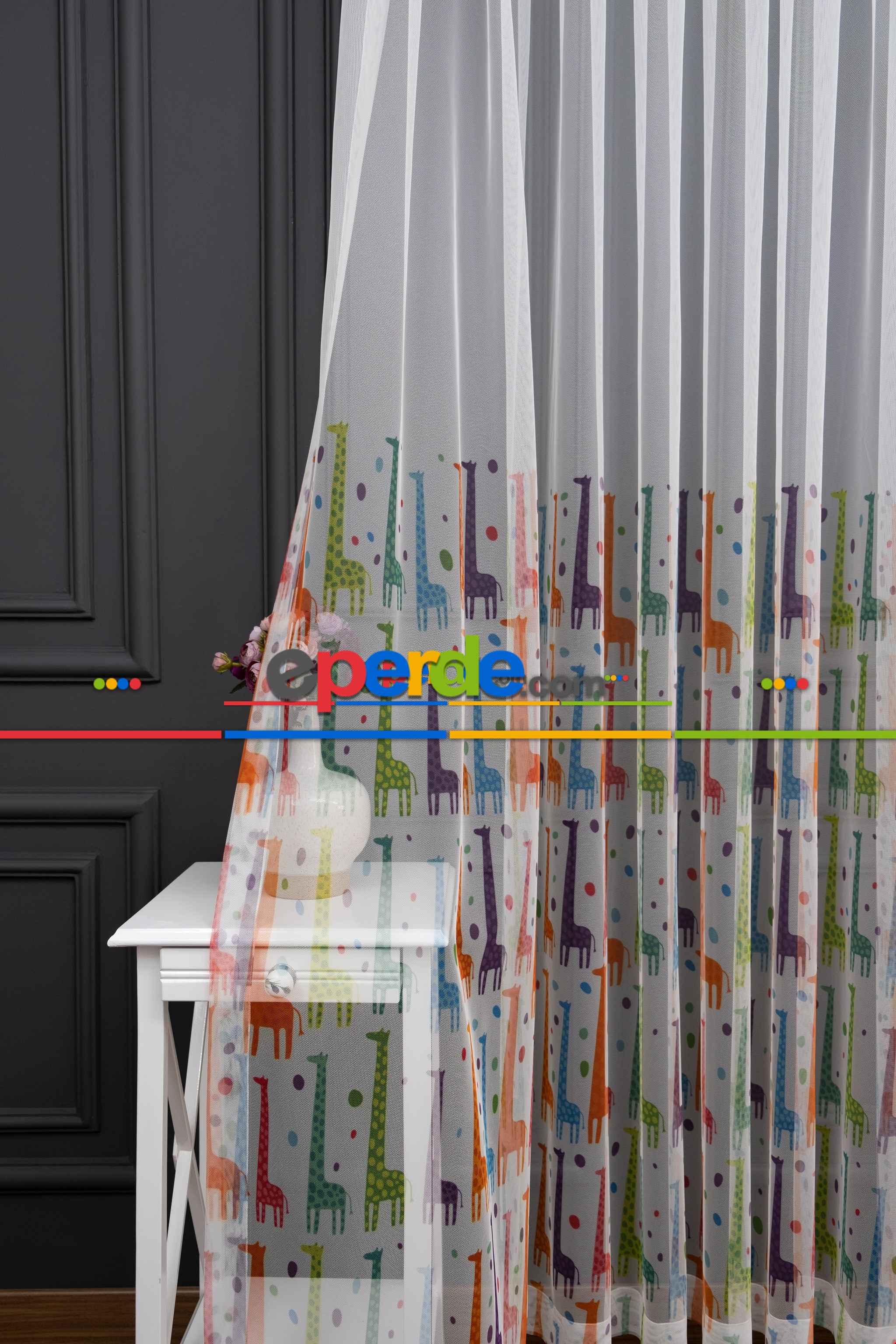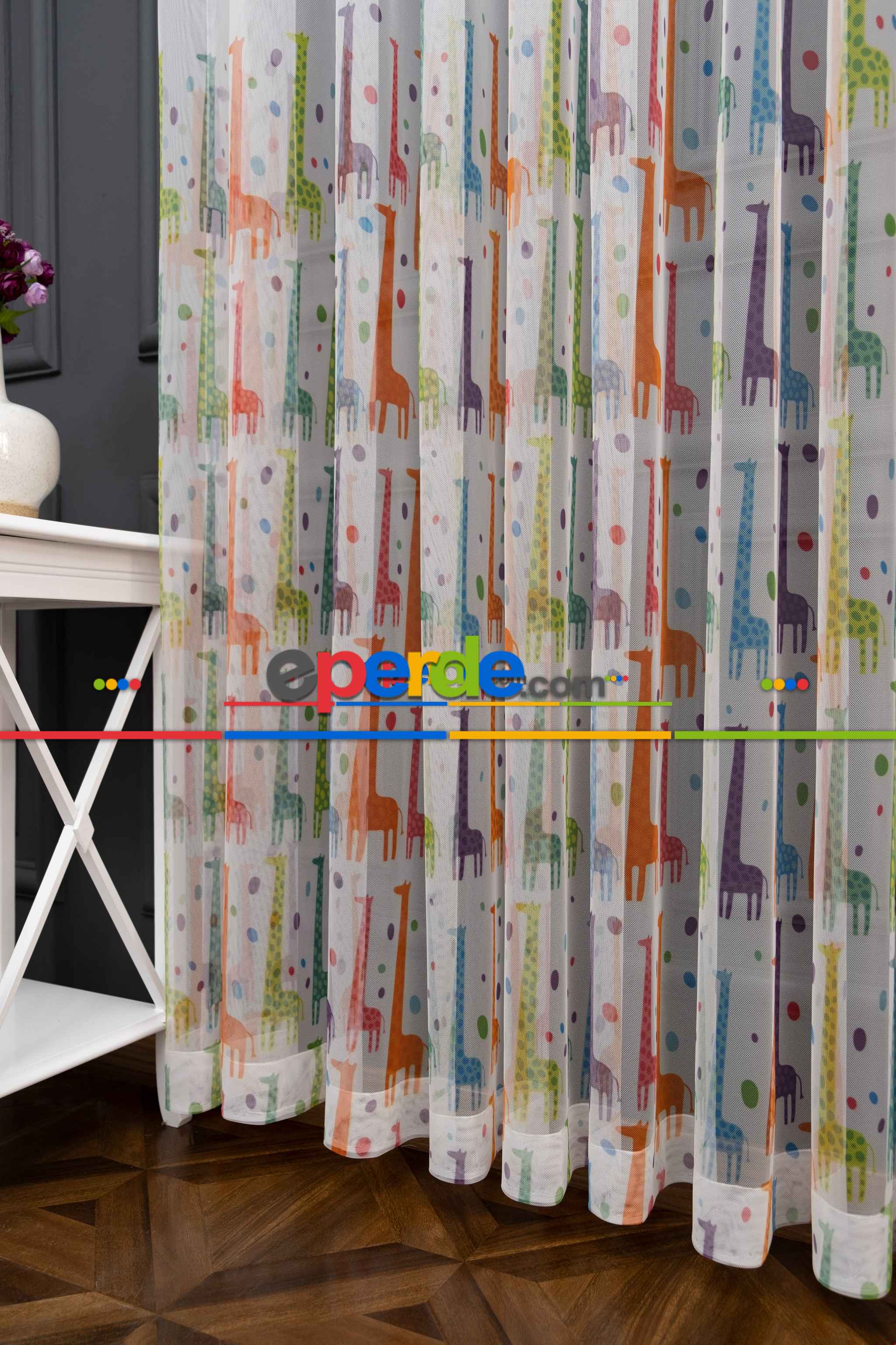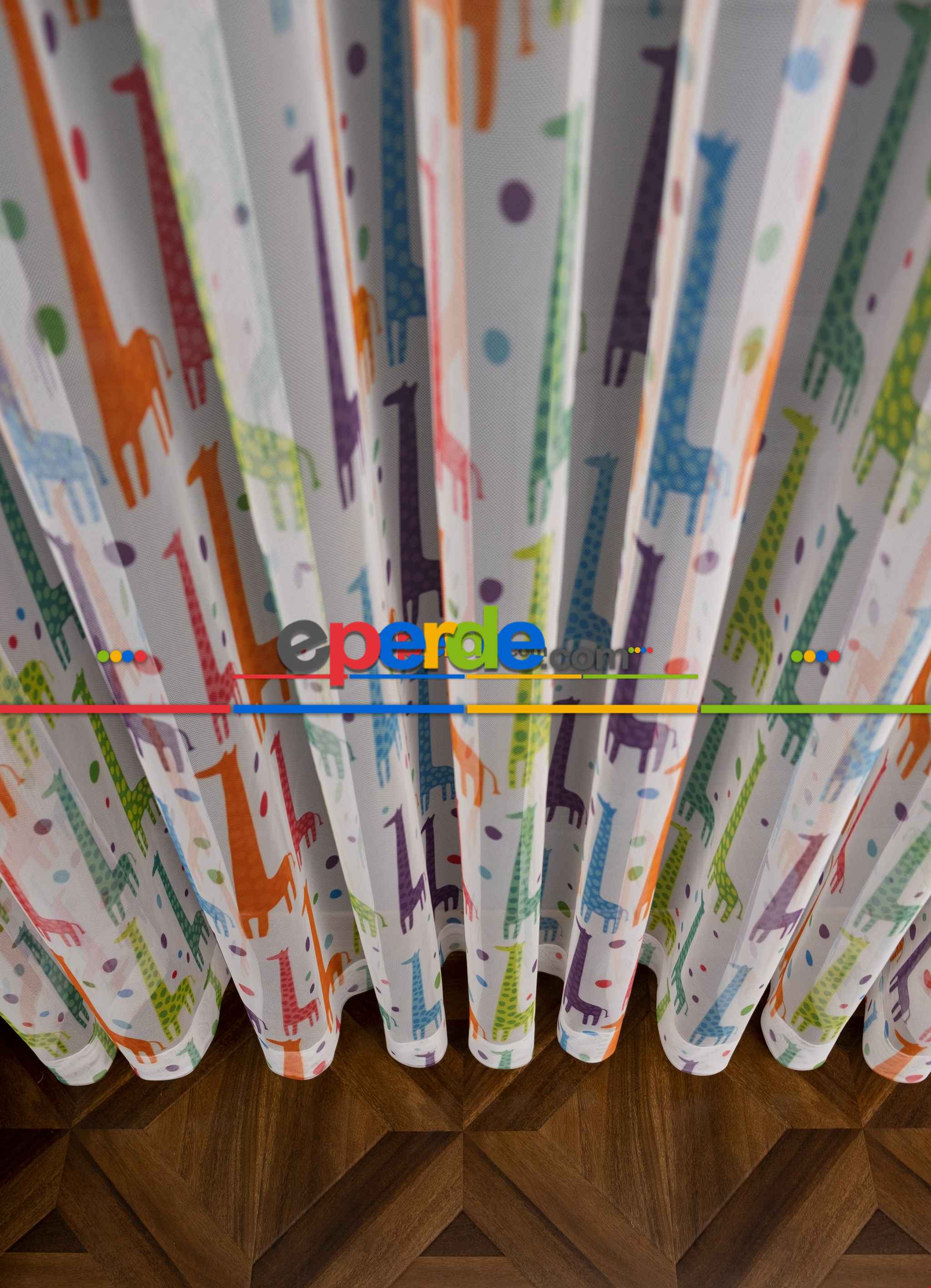 Hazır Ölçülü Petek Zemin Renkli Zürafa Desenli Sık Pileli Grek Baskılı Tül Perde » Eperde