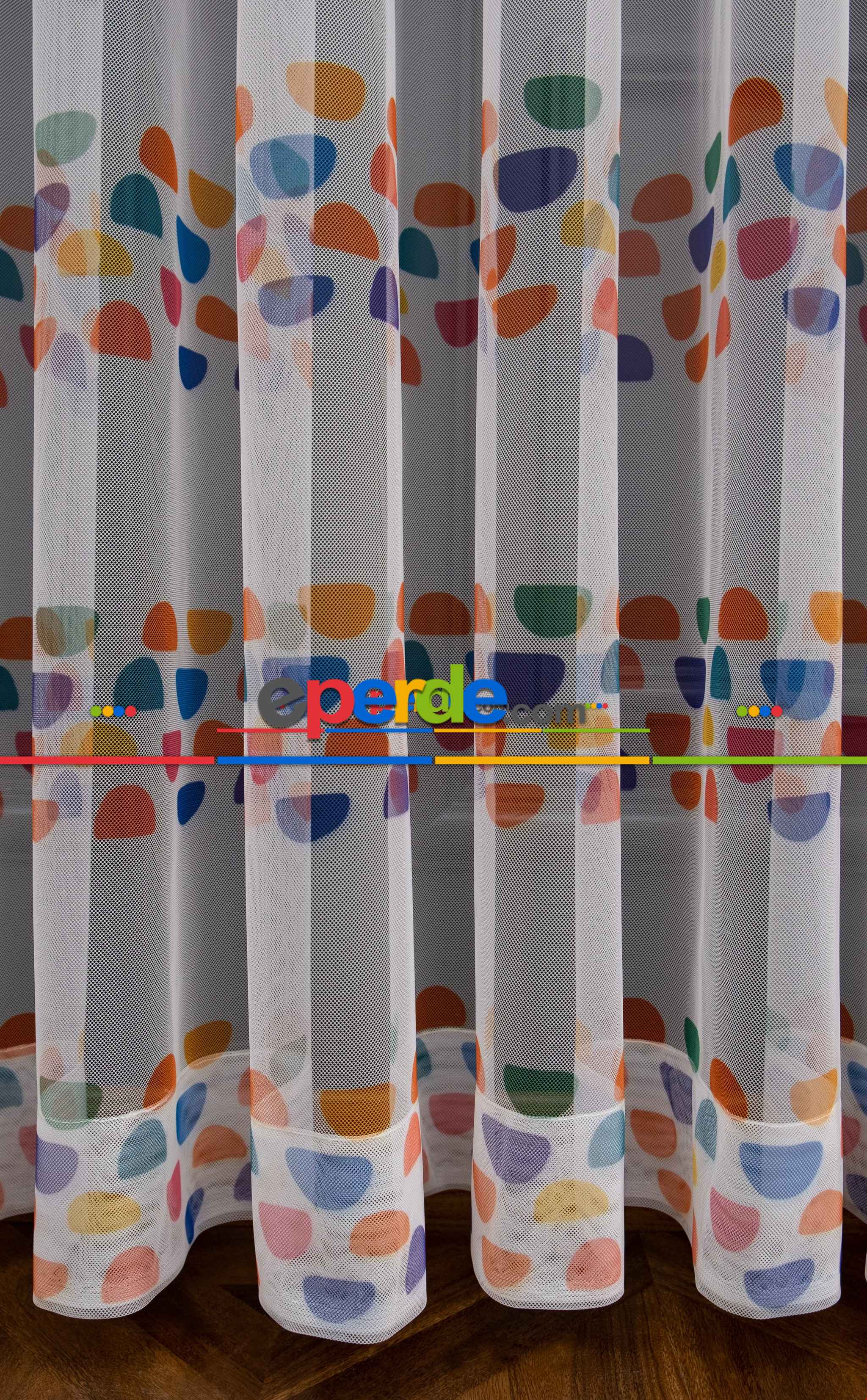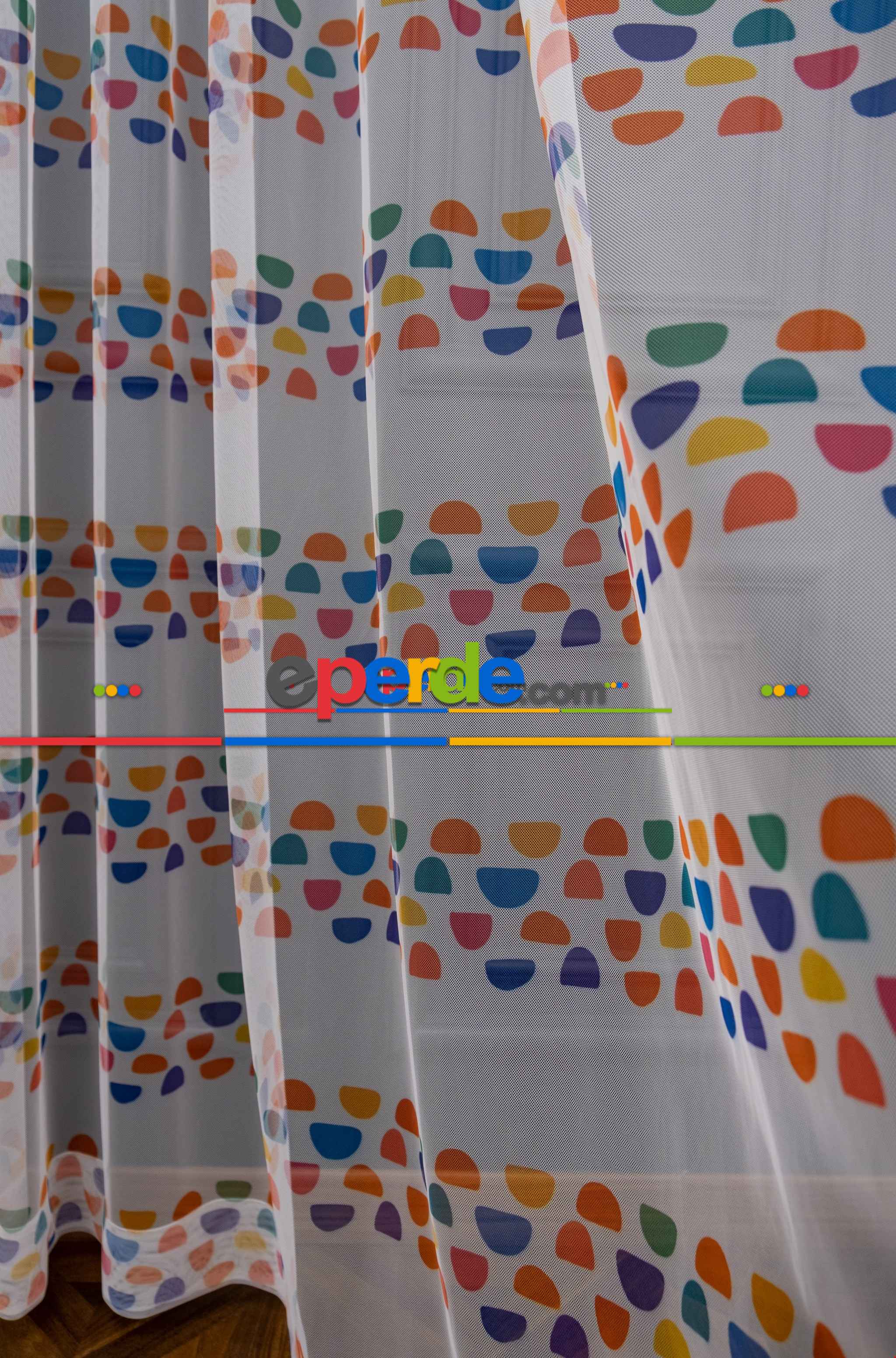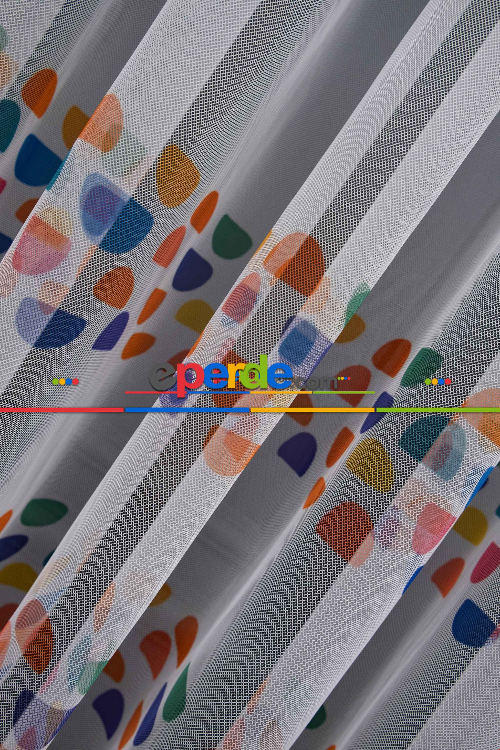 Petek Zemin Mavi Pembe Renkli Gökkuşağı Desenli Grek Baskılı Tül Perde Petek Zemin Mavi Pembe Renkli Gökkuşağı Desenli Grek Baskılı Tül Perde