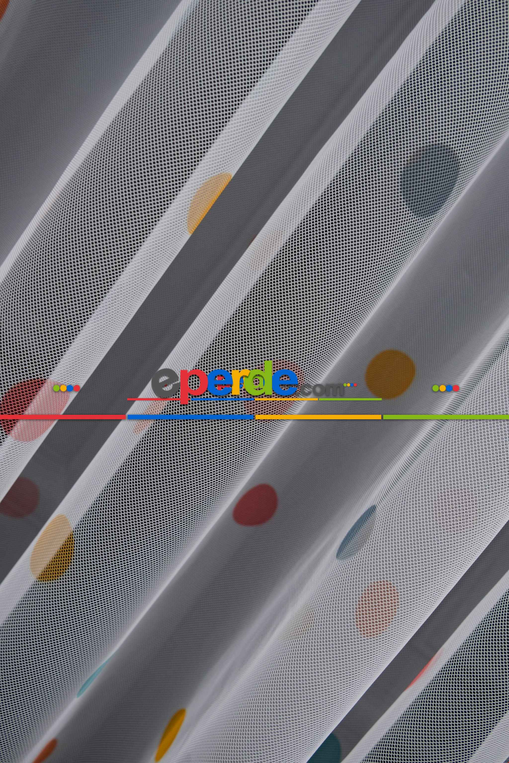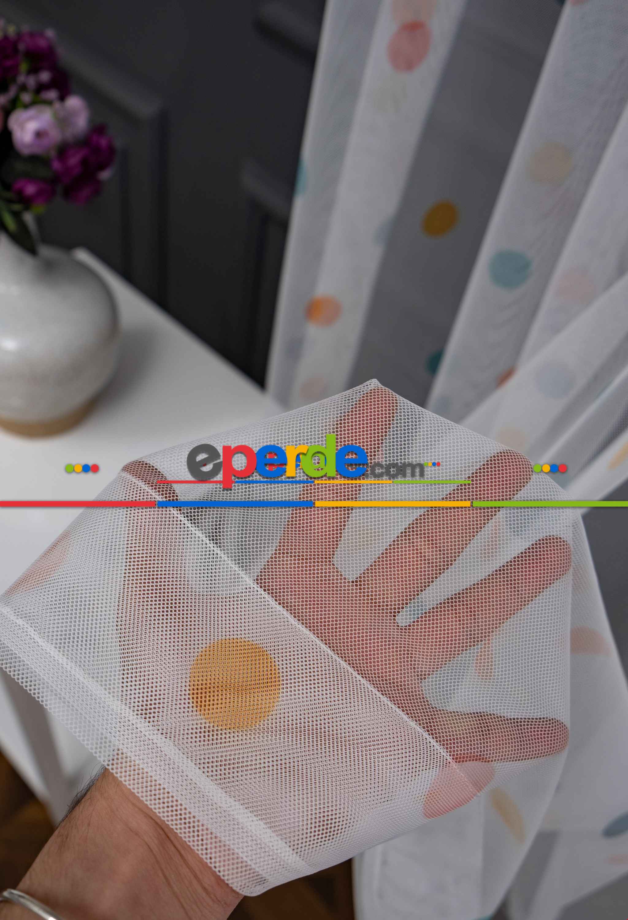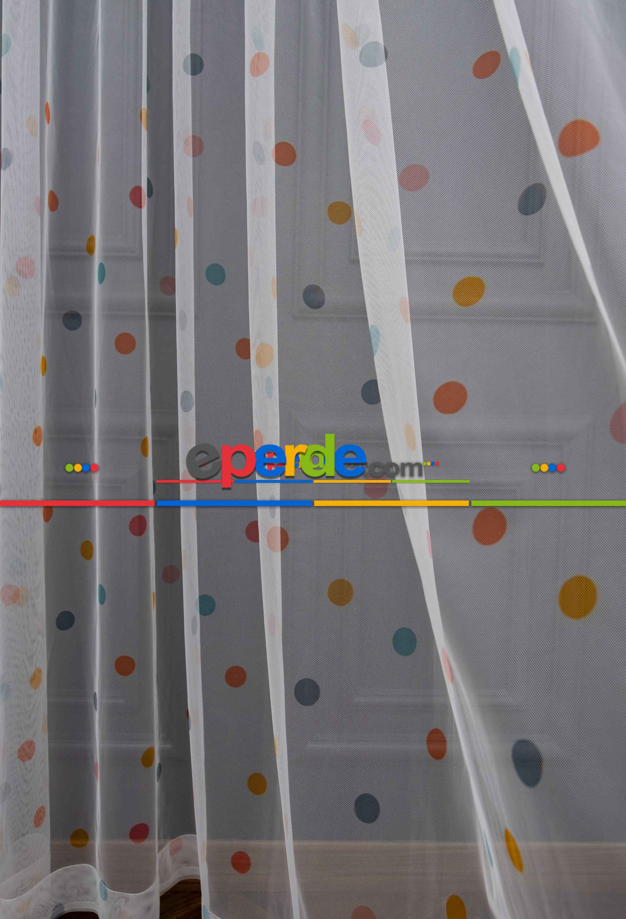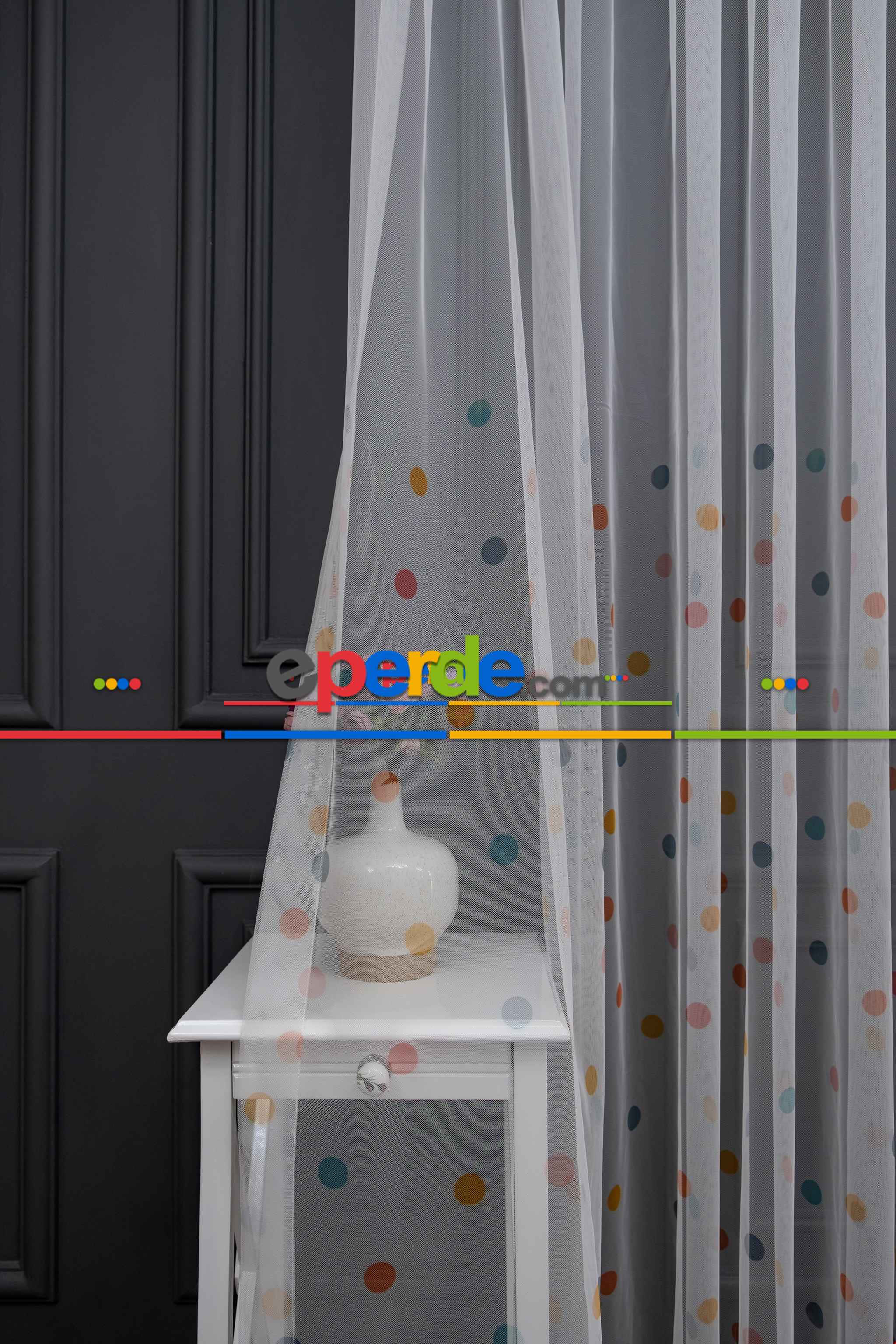 Hazır Ölçülü Petek Zemin Turuncu Ve Mavi Renkli Puantiye Desenli Grek Baskılı Tül Perde Ödeme Seçenekleri