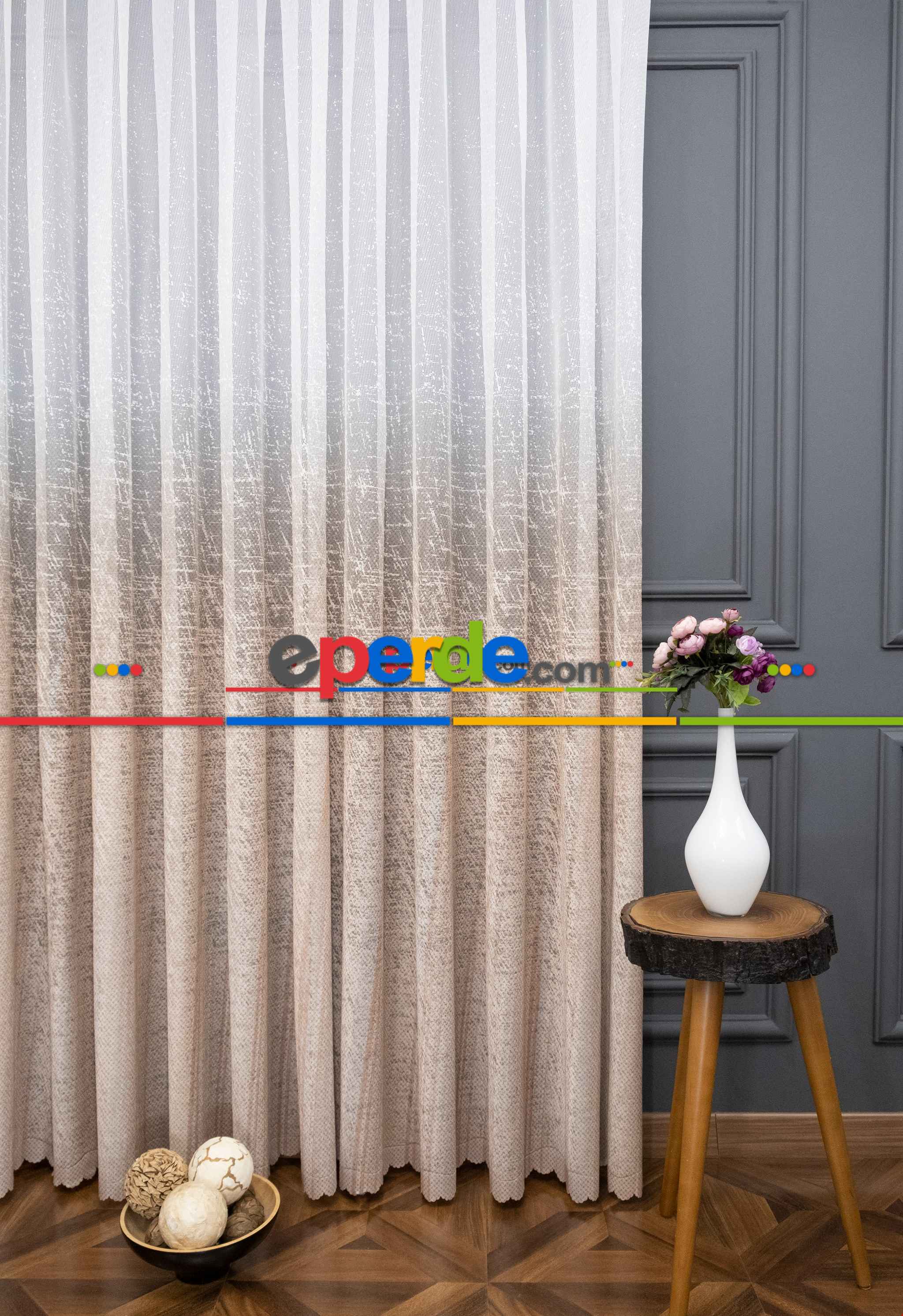 Hazır Ölçülü Seyrek Pileli Modern Bej Kahverengi Degrade Geçişli Tül - Örme Dantel Tül Perde Ürün Açıklaması