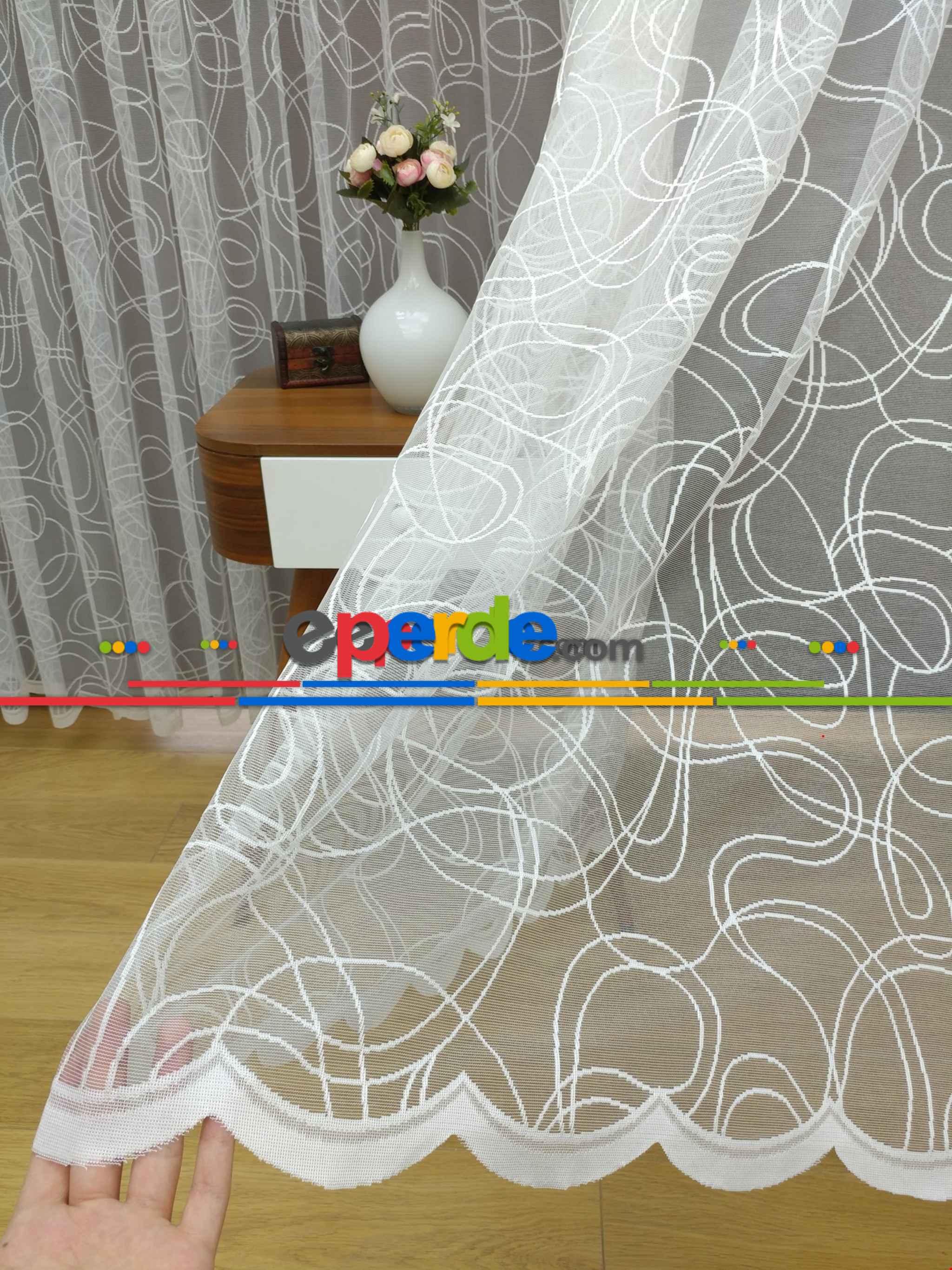Eperde tül - Harika tül. Yıllar önce de bu siteden aldım hiç kırışmadı. Yıkayıp taktım