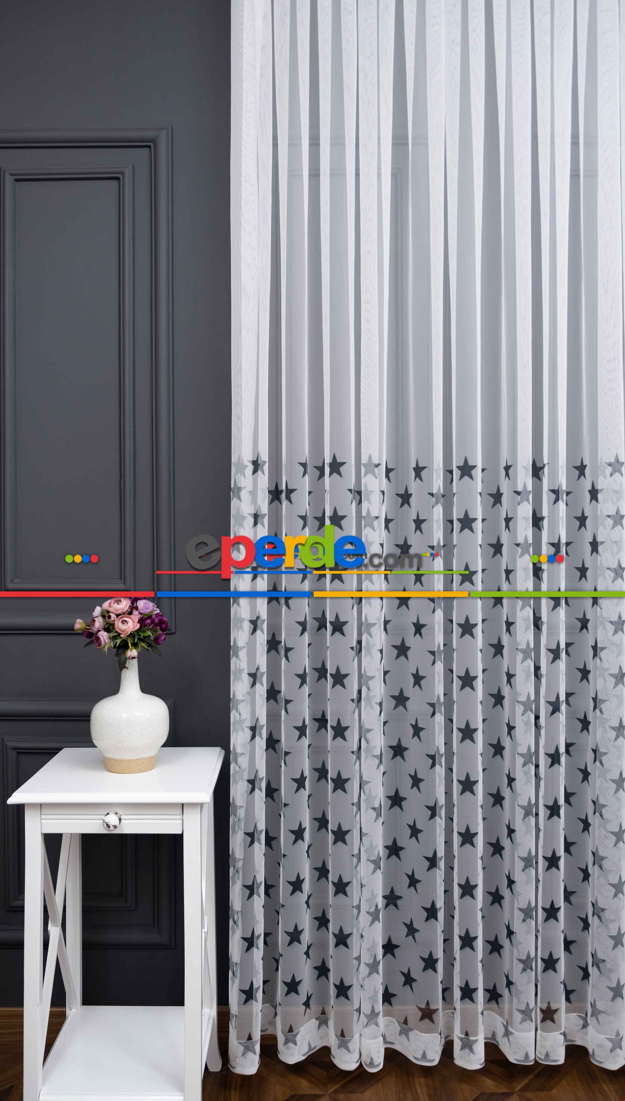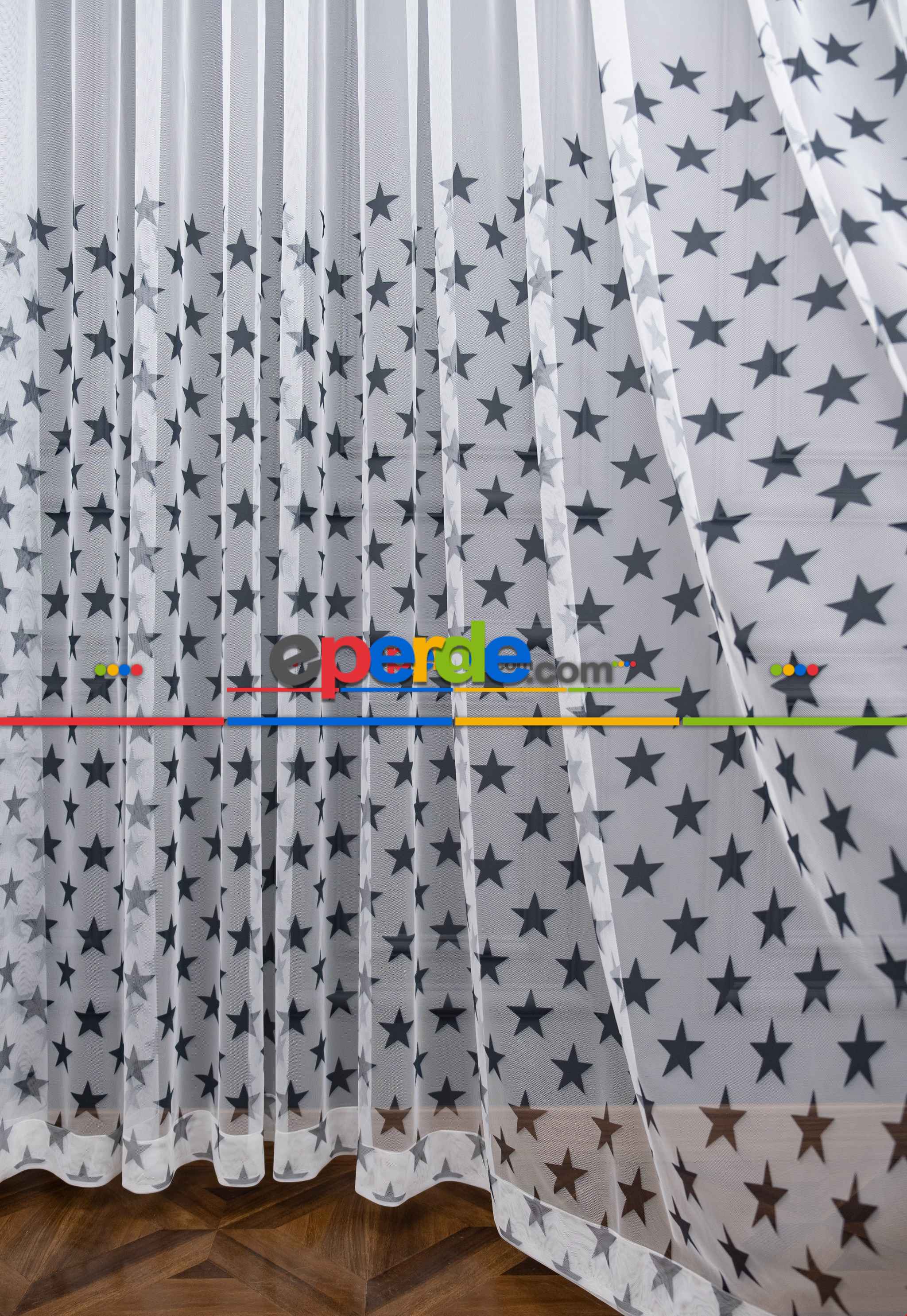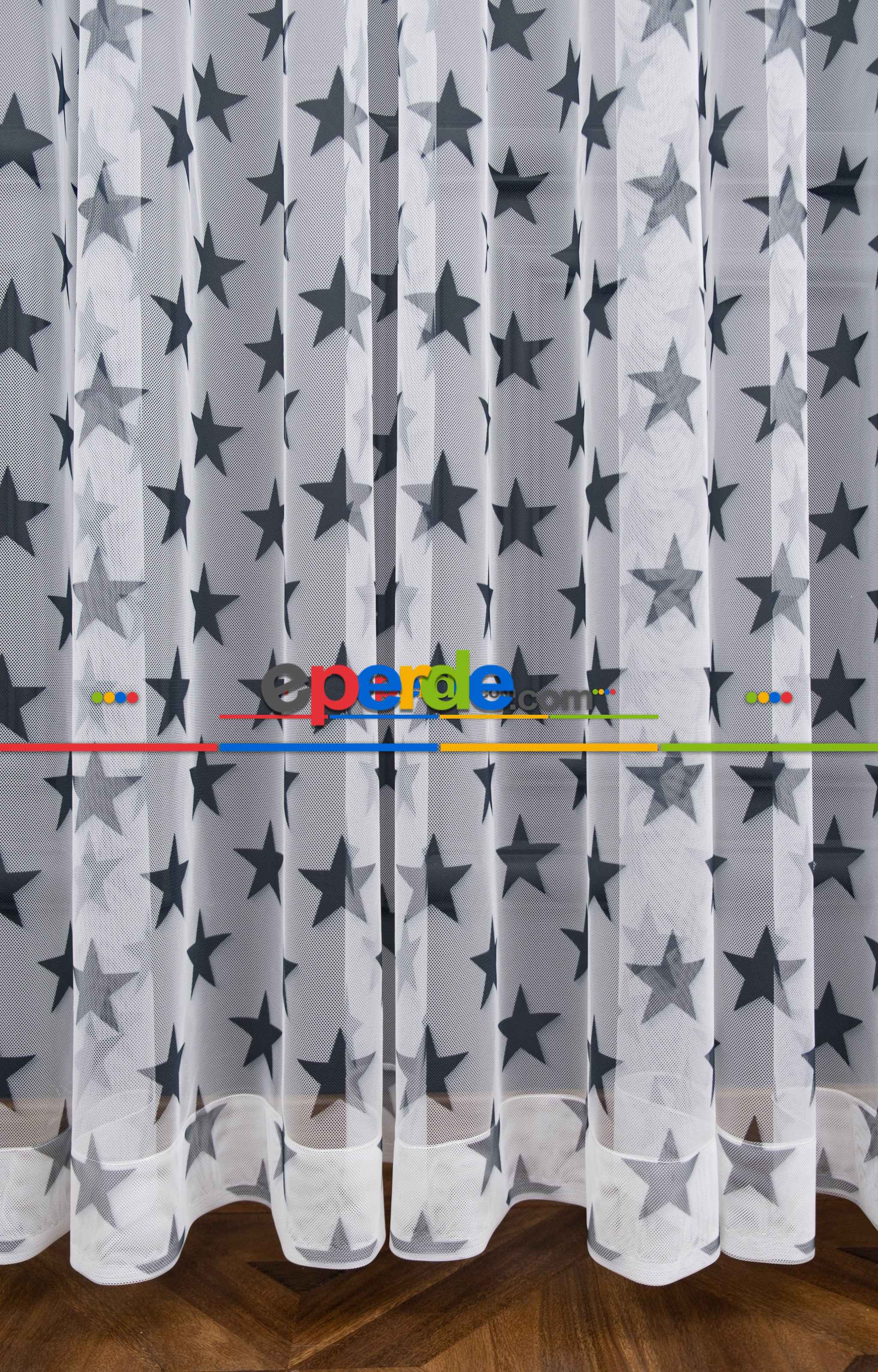 İndirimli Fiyat!! Petek Zemin Koyu Antrasit Renkli Sık Pileli Yıldız Desenli Grek Baskılı Tül Perde Ödeme Seçenekleri