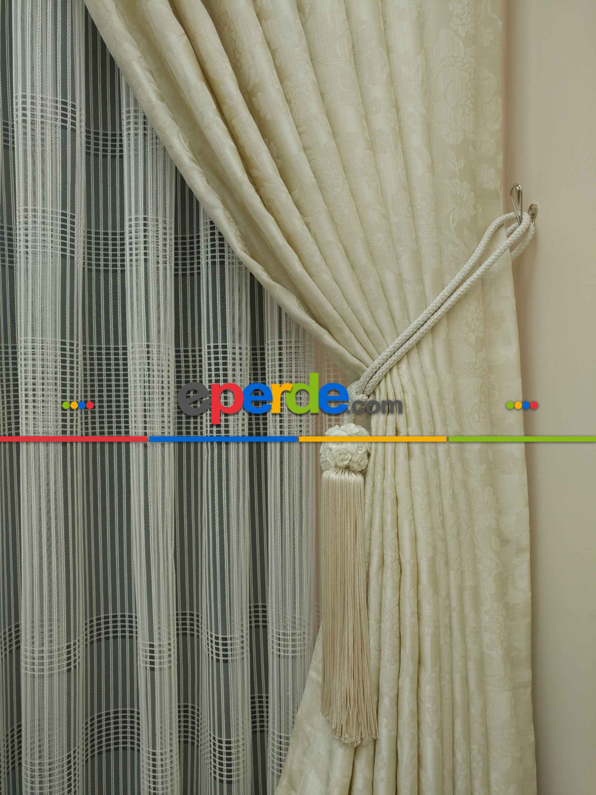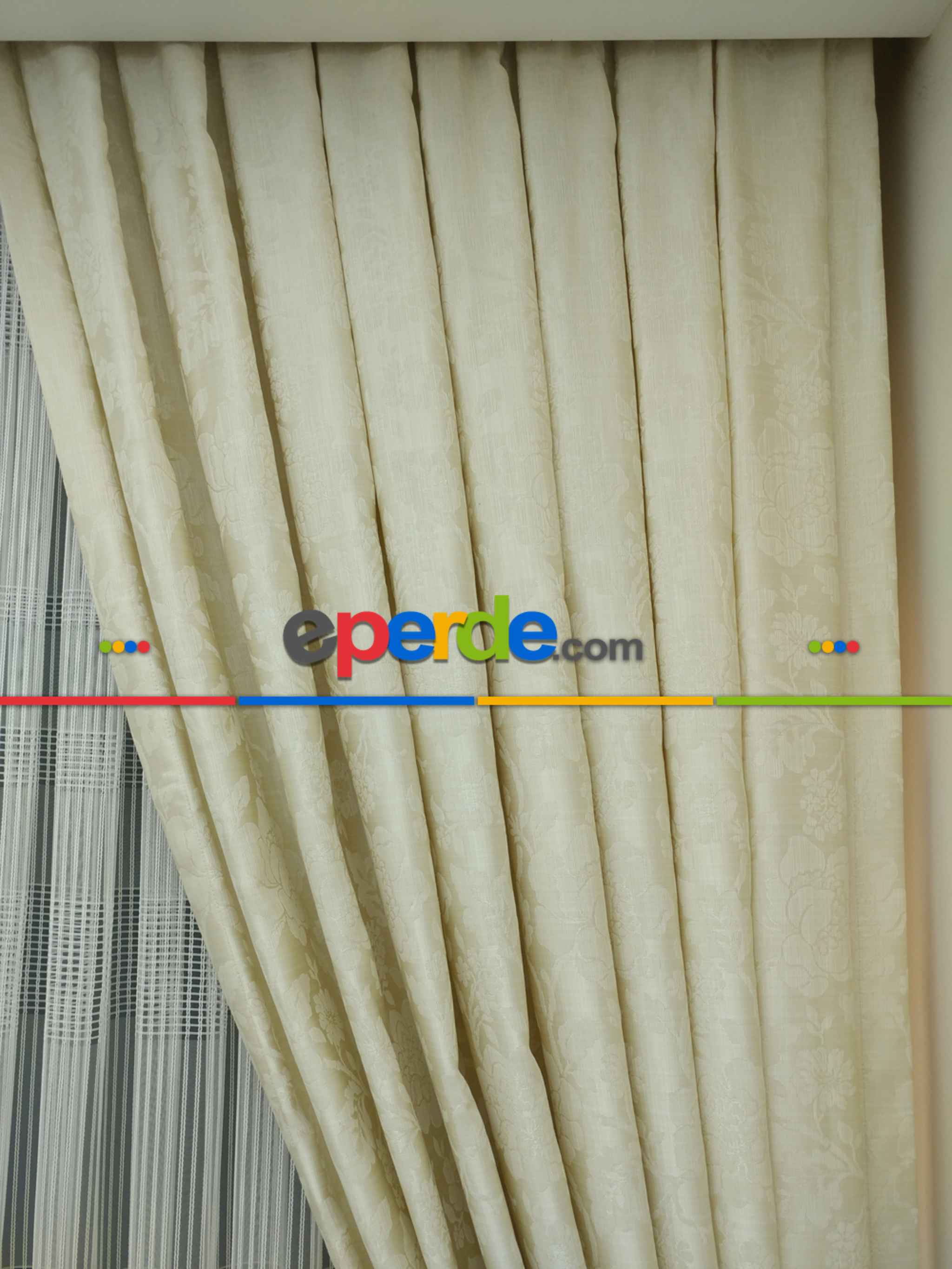 Jakar Fon Perde Dökümlü ( Dökümlü Jakar Fon )- Krem