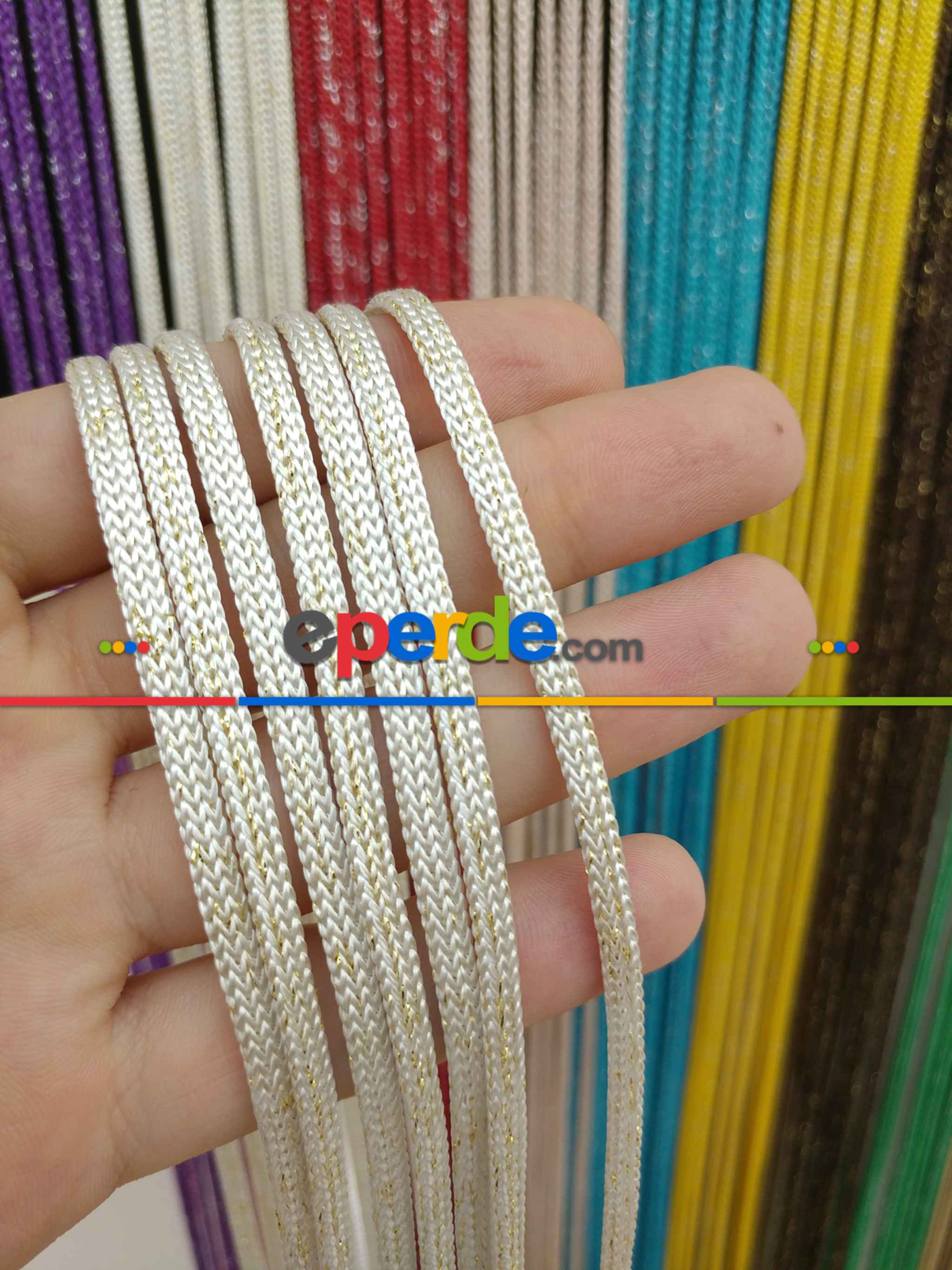 Jumbo Zincir Serisi Krem Altın Simli İp Perde- Beyaz-Altın Simli Ödeme Seçenekleri