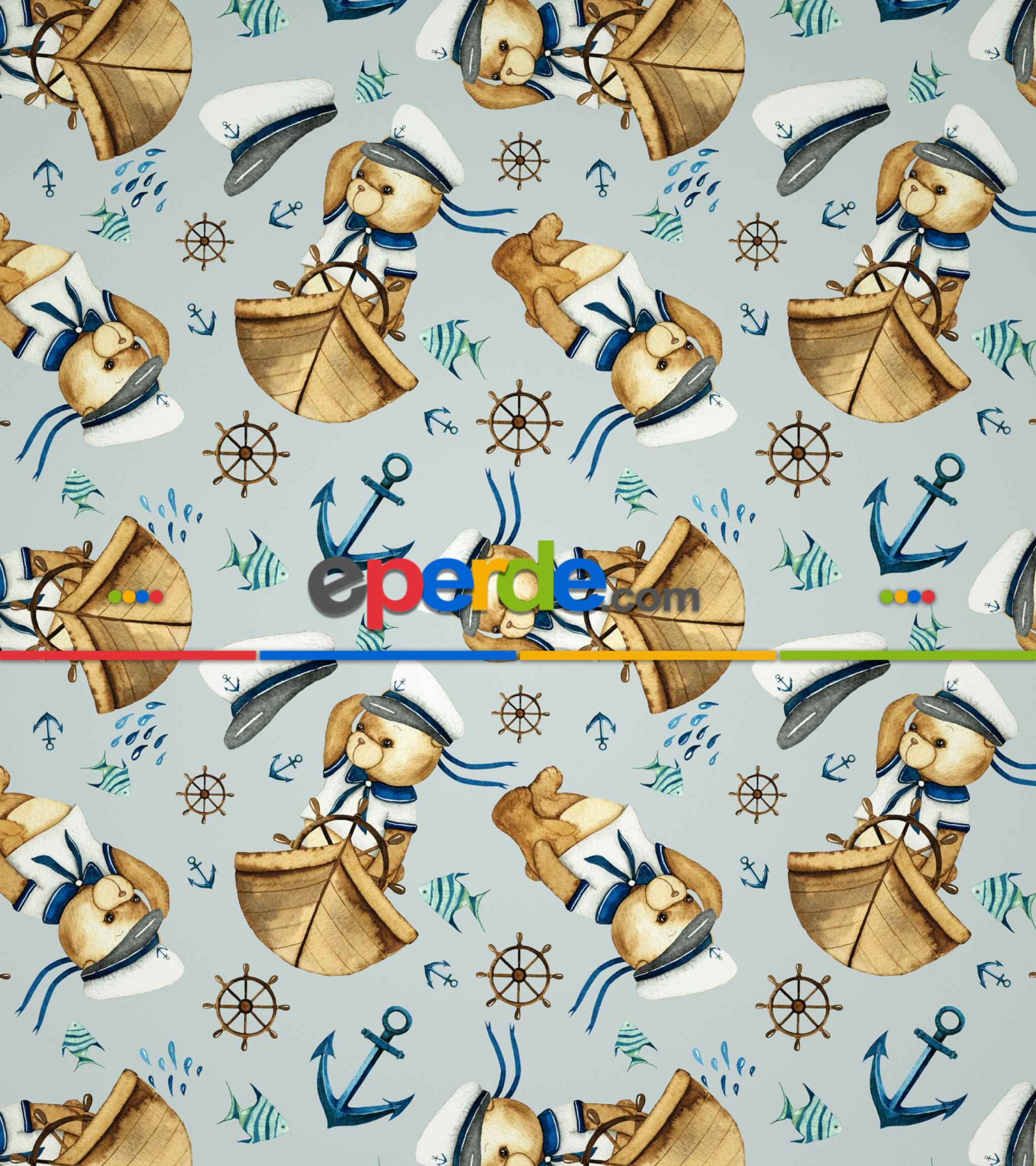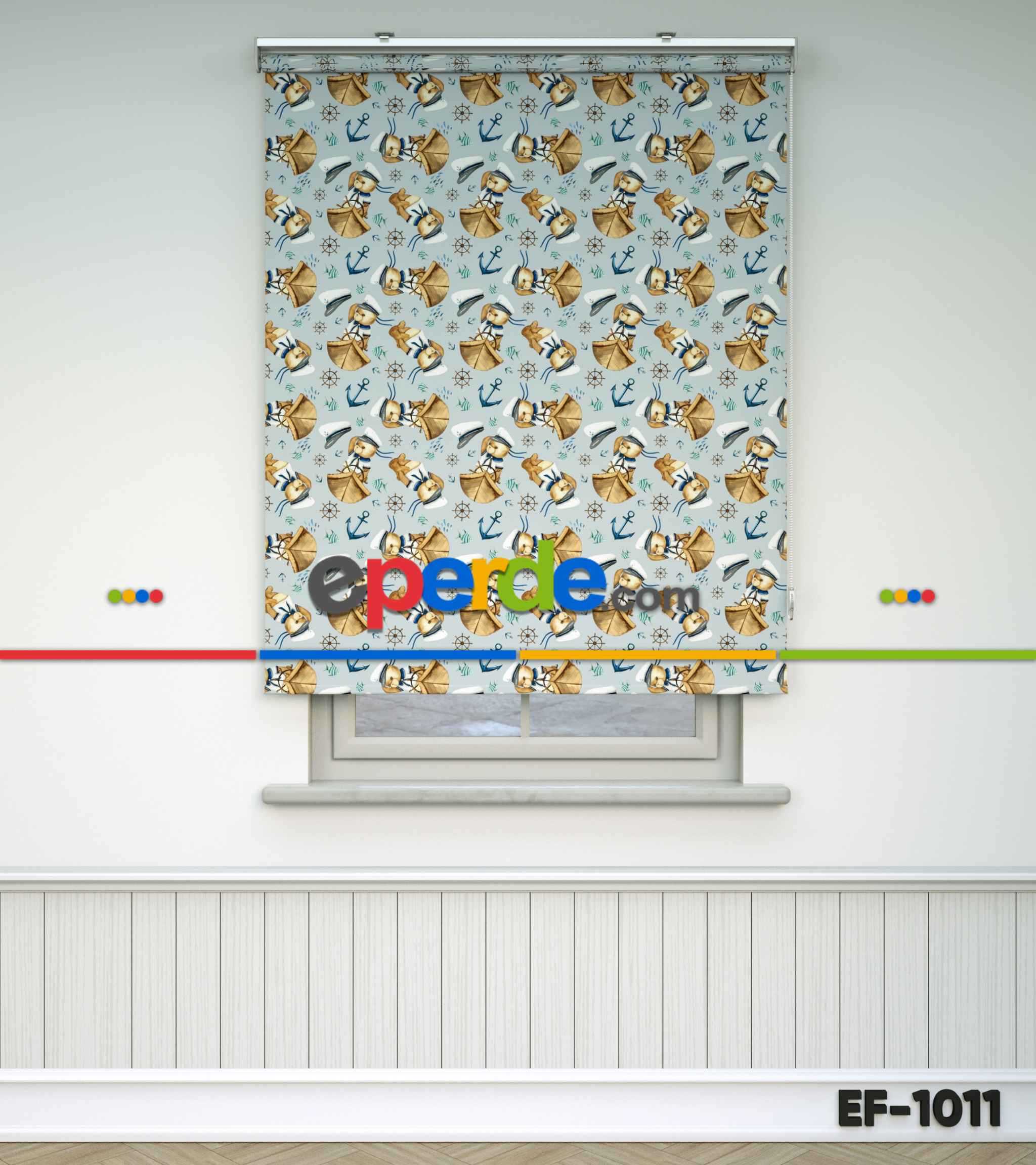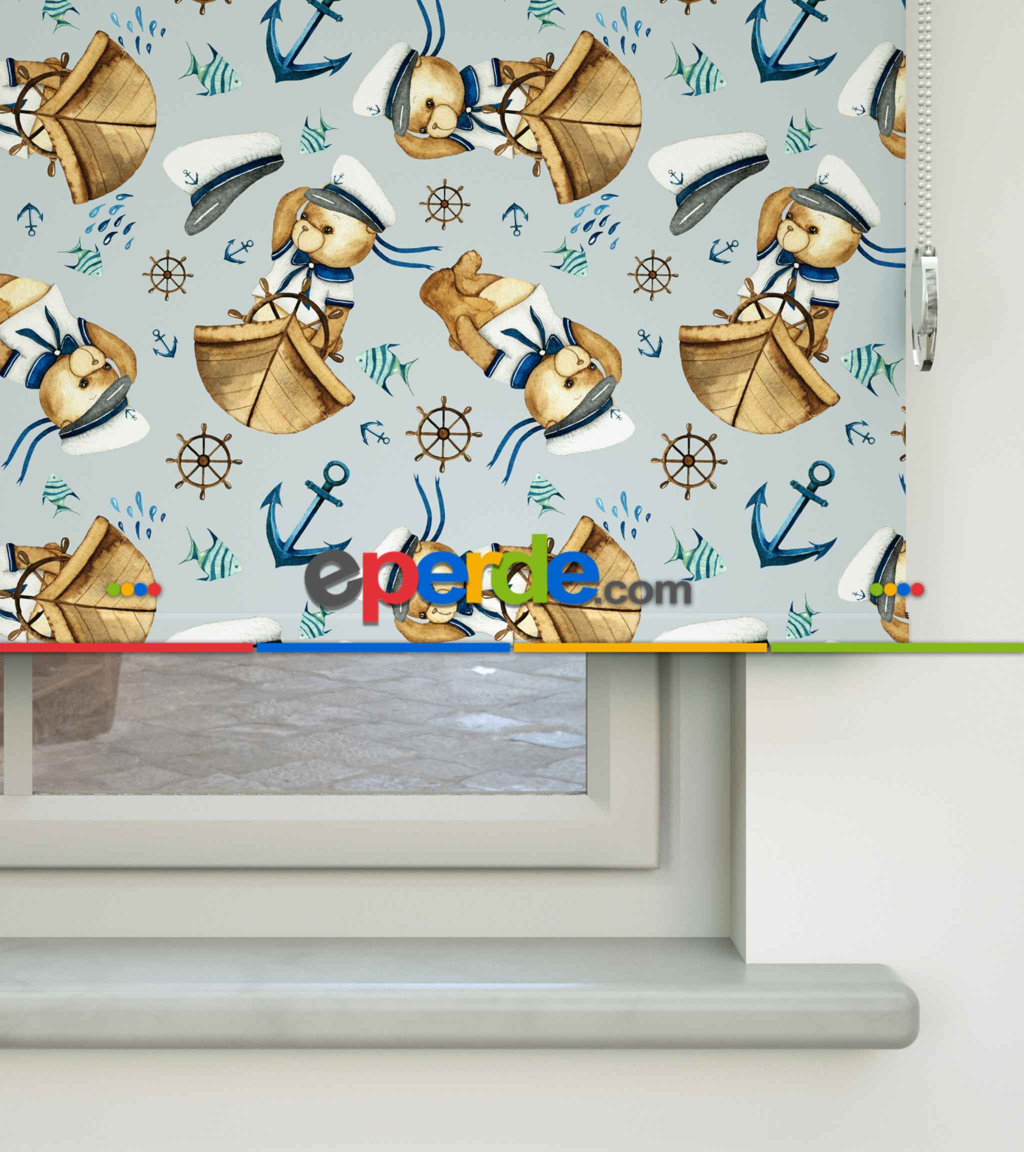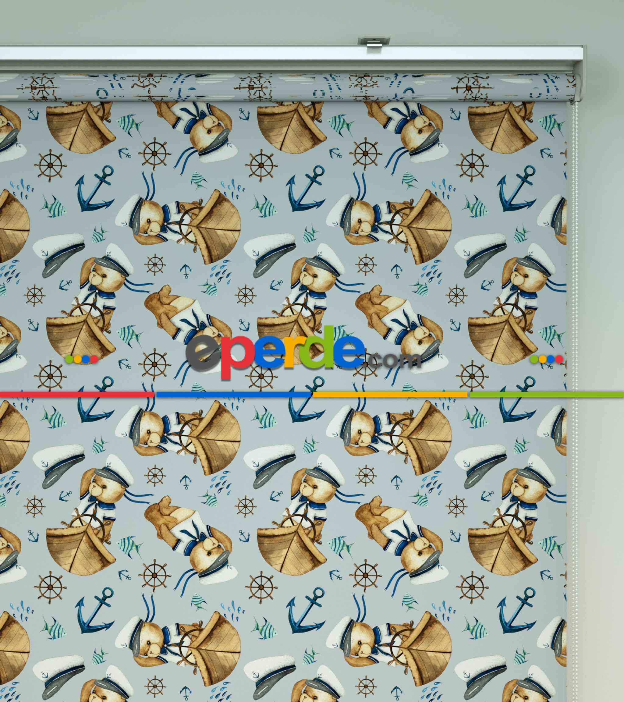 Kaptan Köpekçik Baskılı Stor Perde- Mavi-beyaz-kahve Ürün Açıklaması