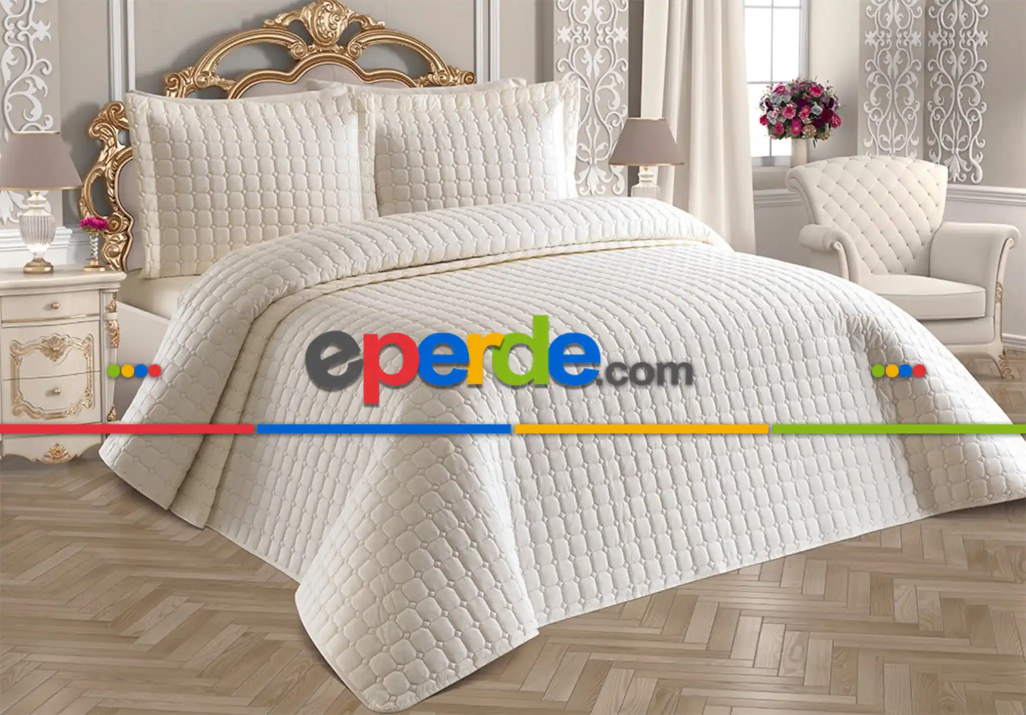 Karelim Açık Krem Çift Kişilik Kapitone Yatak Örtüsü- Krem Açık Ödeme Seçenekleri